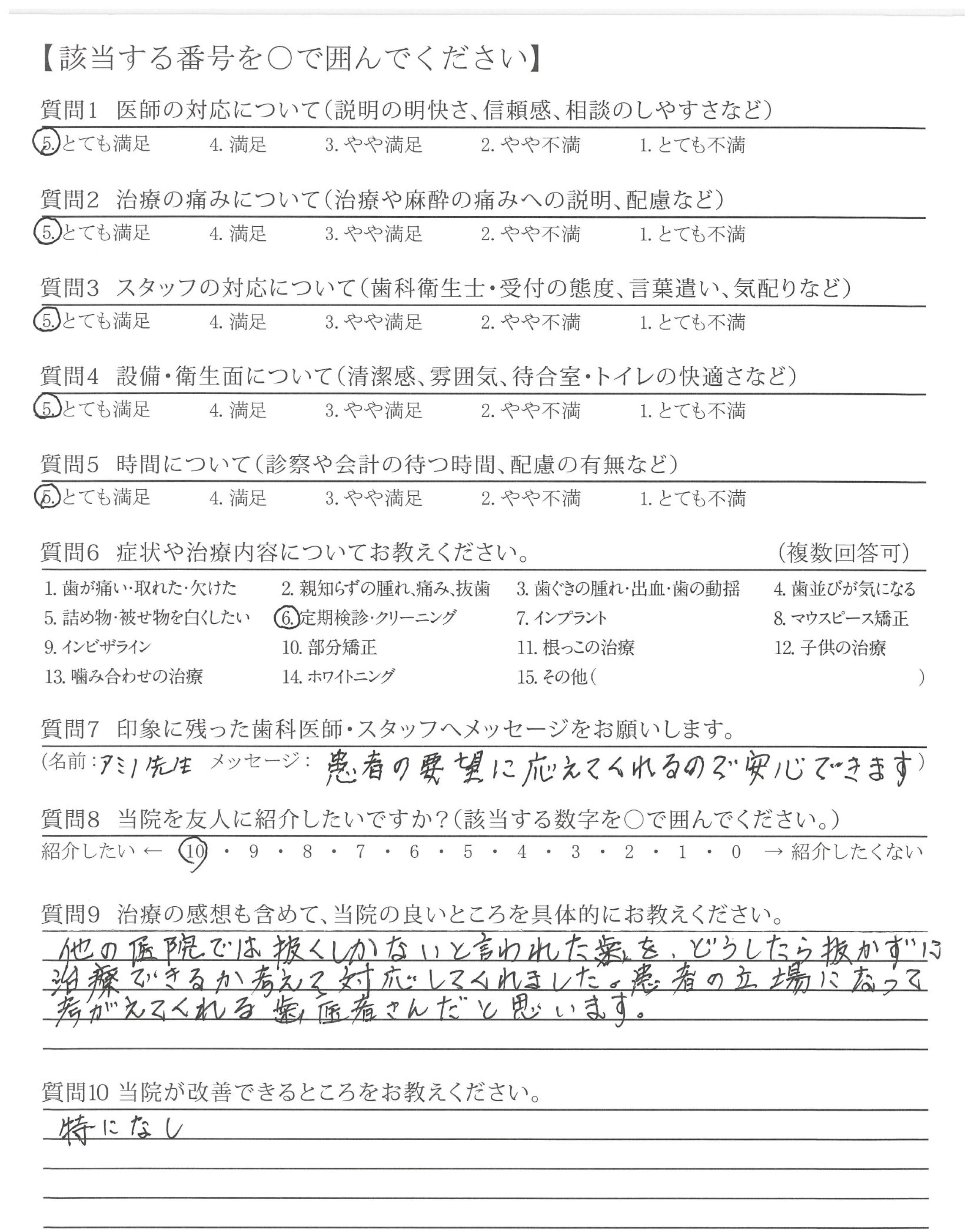 本当に気持ちよく心からのご対応に毎回大満足です他のDr.へは行きません!!