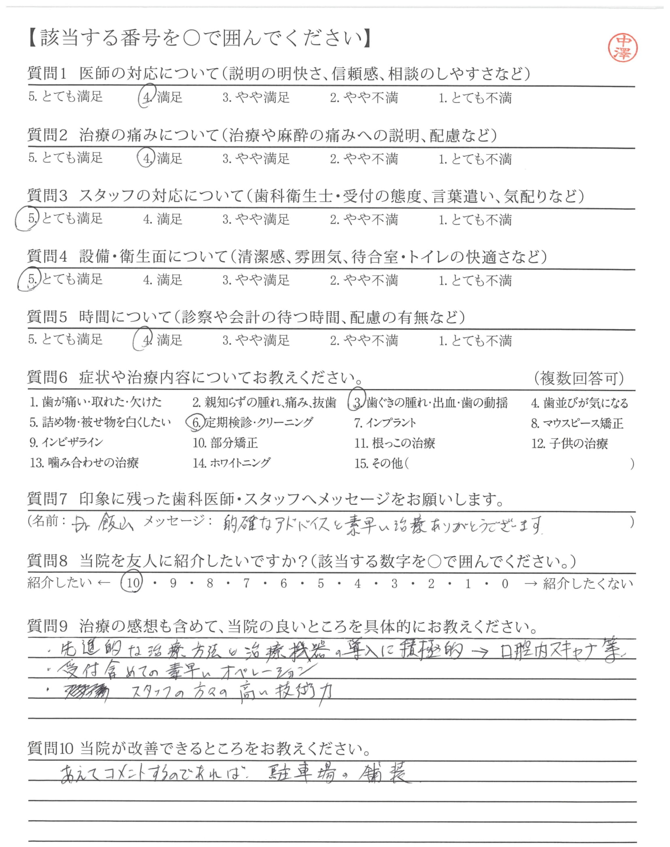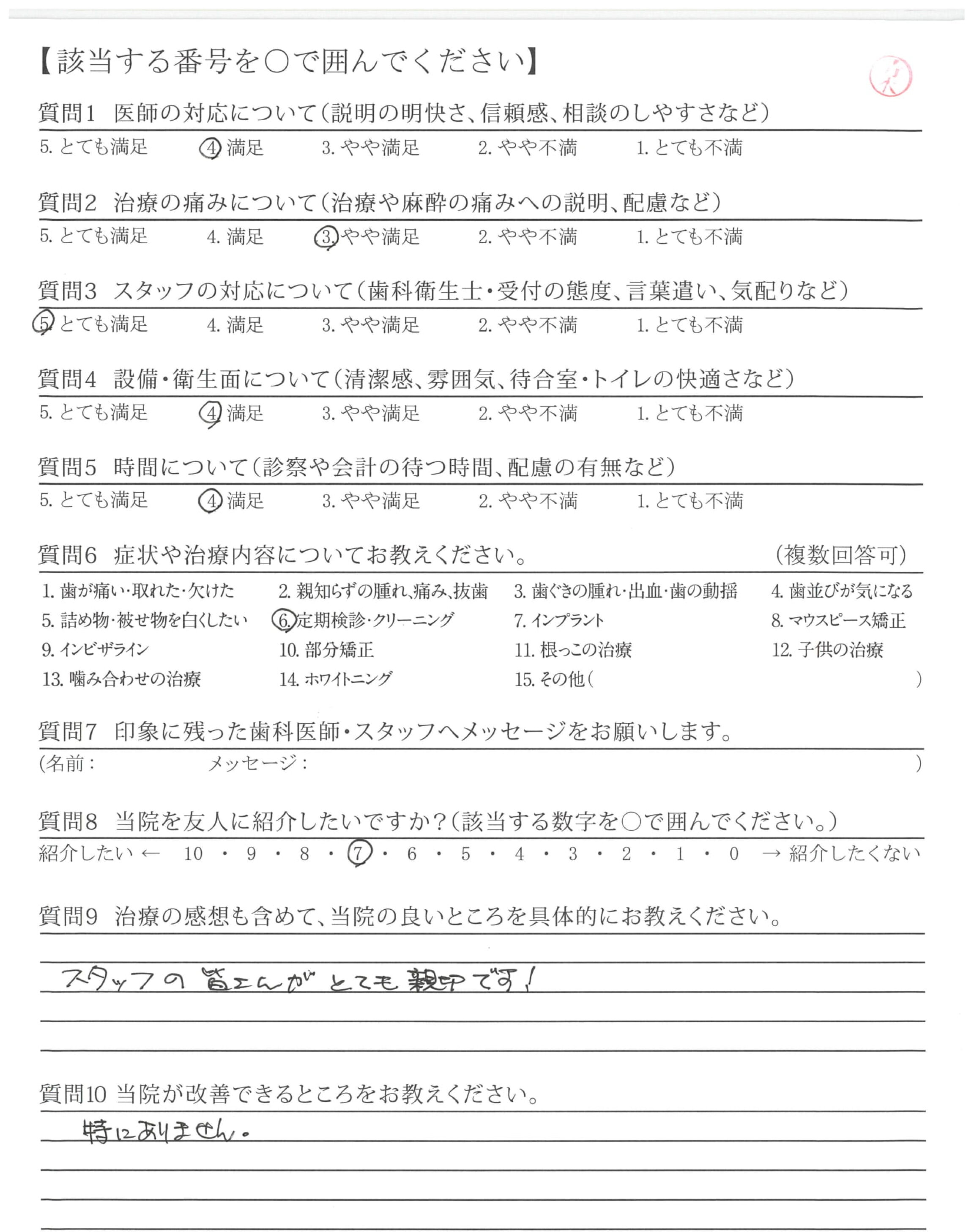 | 歯科医師の対応 | ![]() ![]() ![]() ![]() 4.51 |