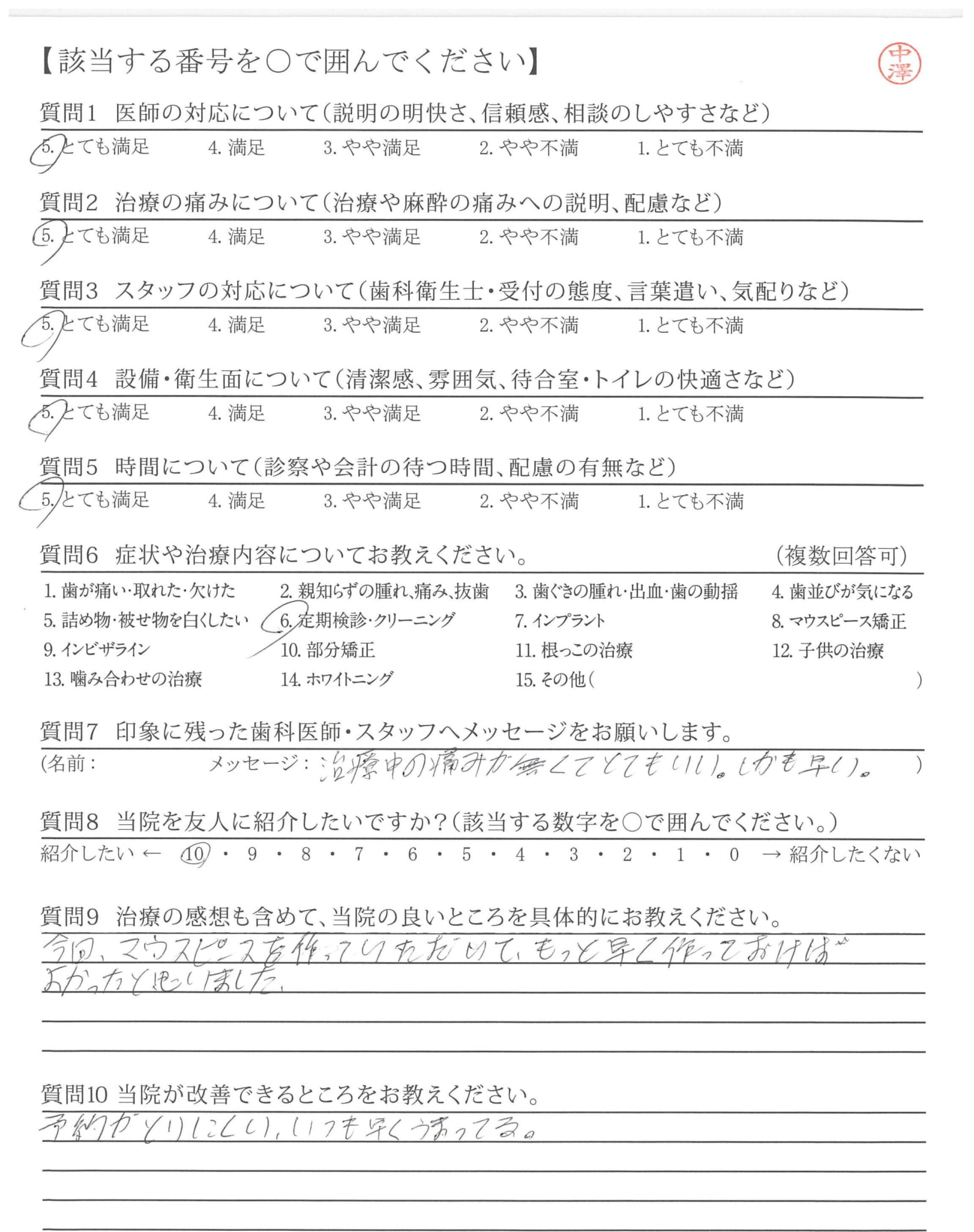 今まで通ってきた歯科医院の中で一番説明が分かりやすく、とても丁寧で行きやすいのでこれからも続けて来年も通いたいと思います。