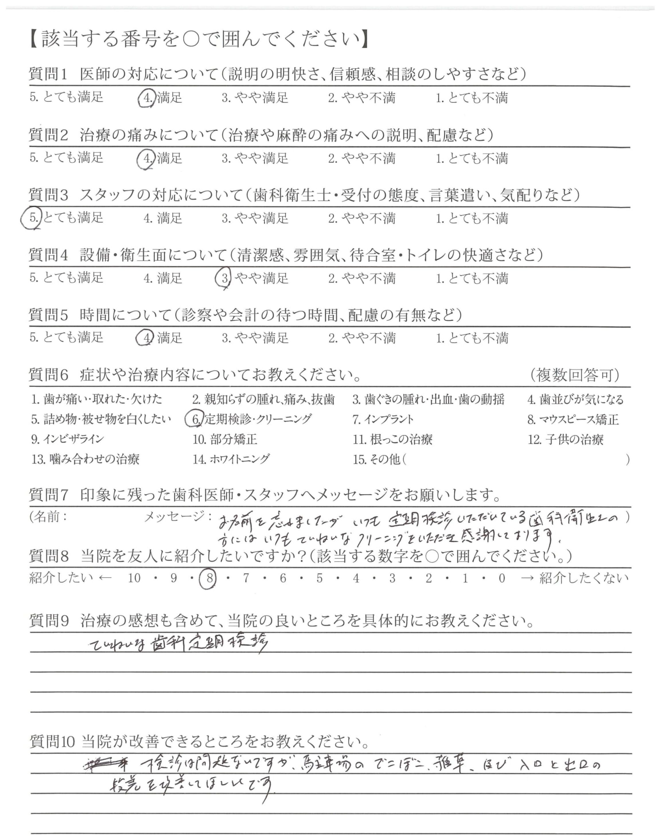 定期検診でお世話になっています。ていねいにクリーニングしてくださりありがとうございます。