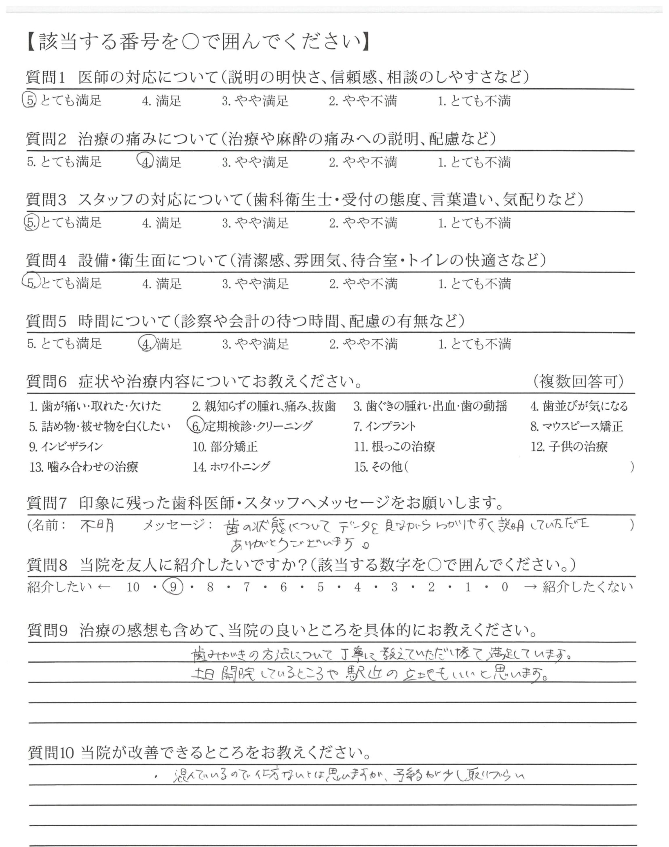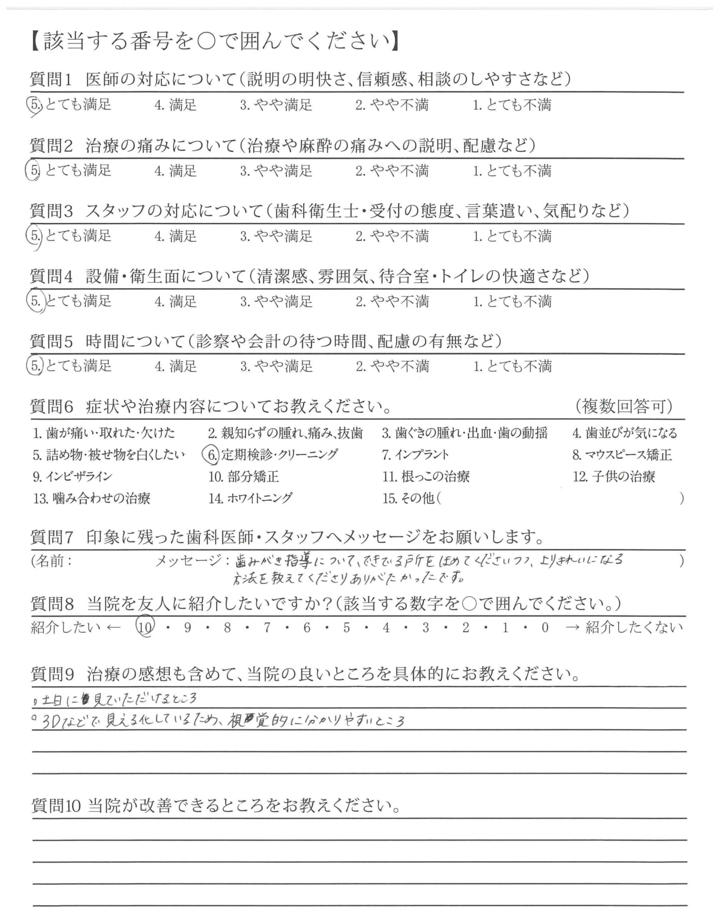 歯みがきの方法について丁寧に教えていただけて満足しています。