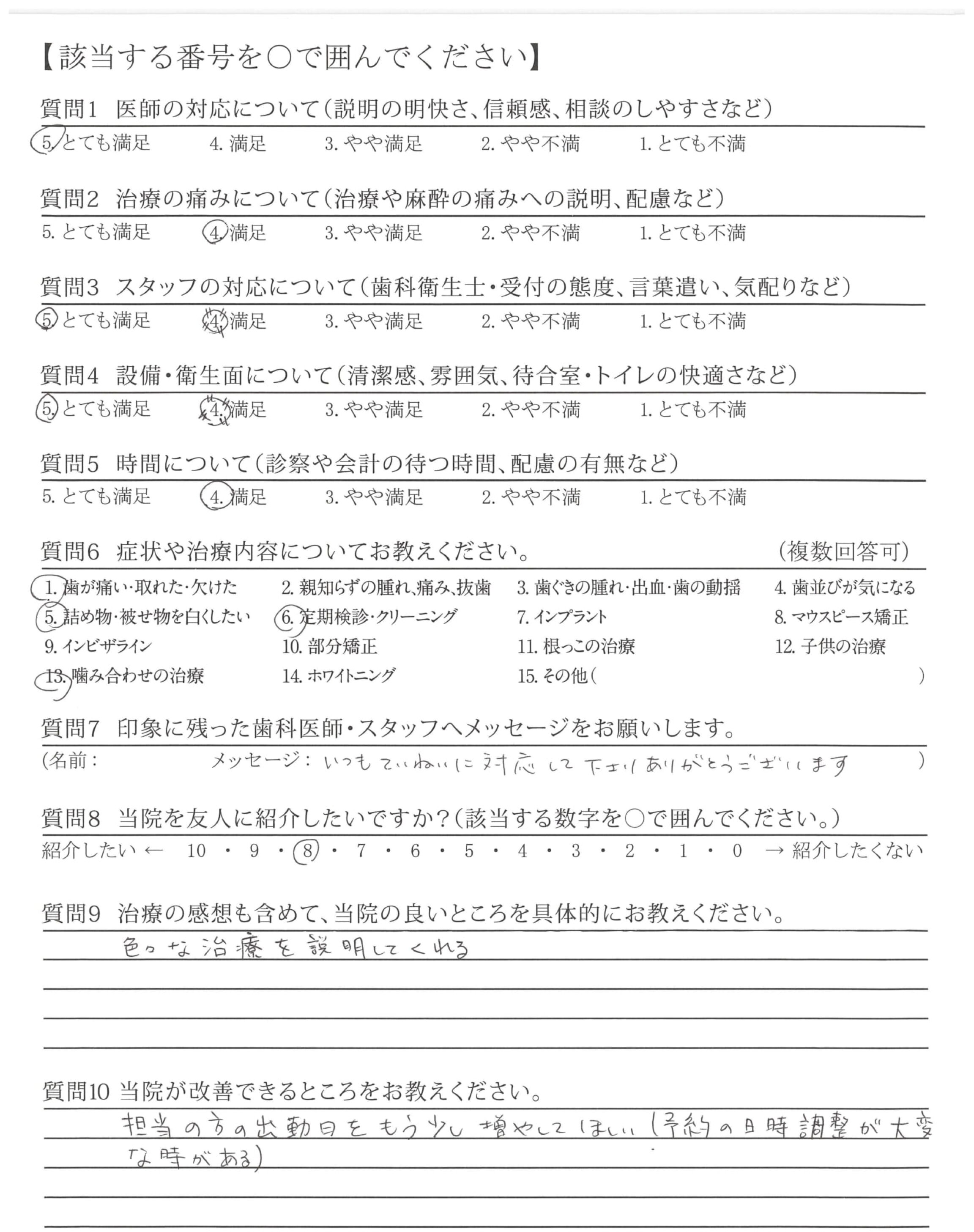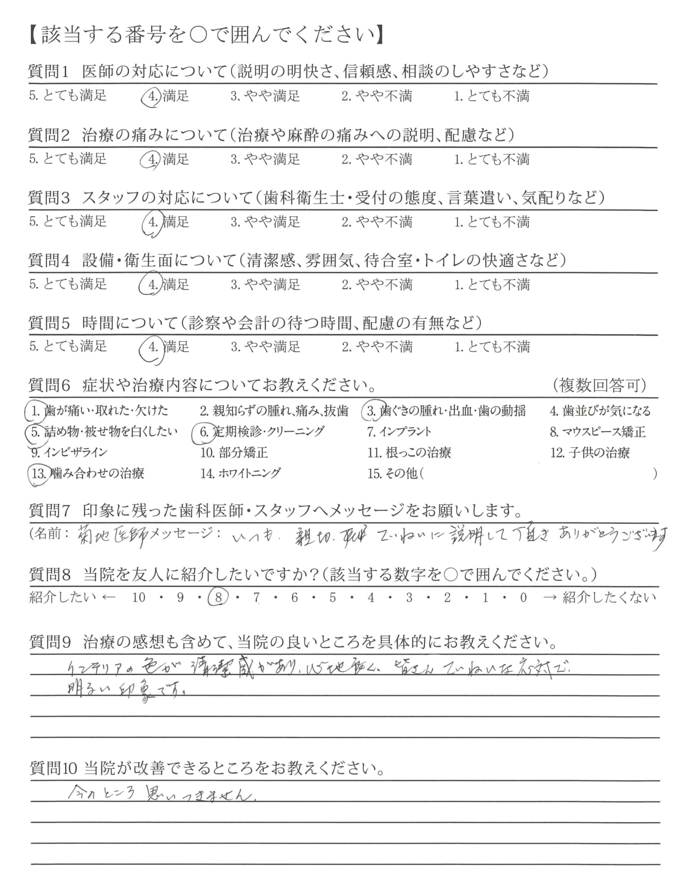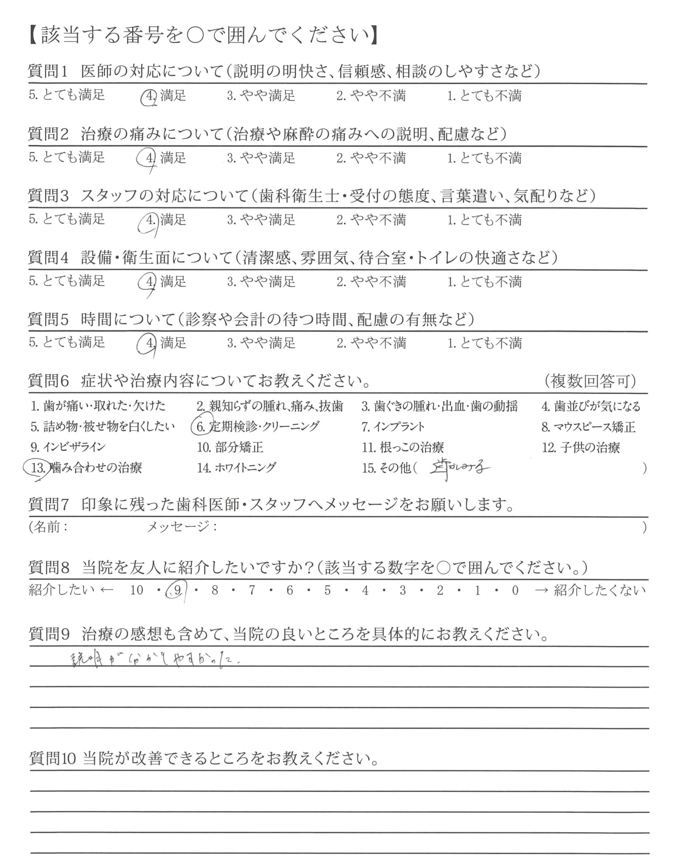 | 歯科医師の対応 | ![]() ![]() ![]() ![]() 4.61 |