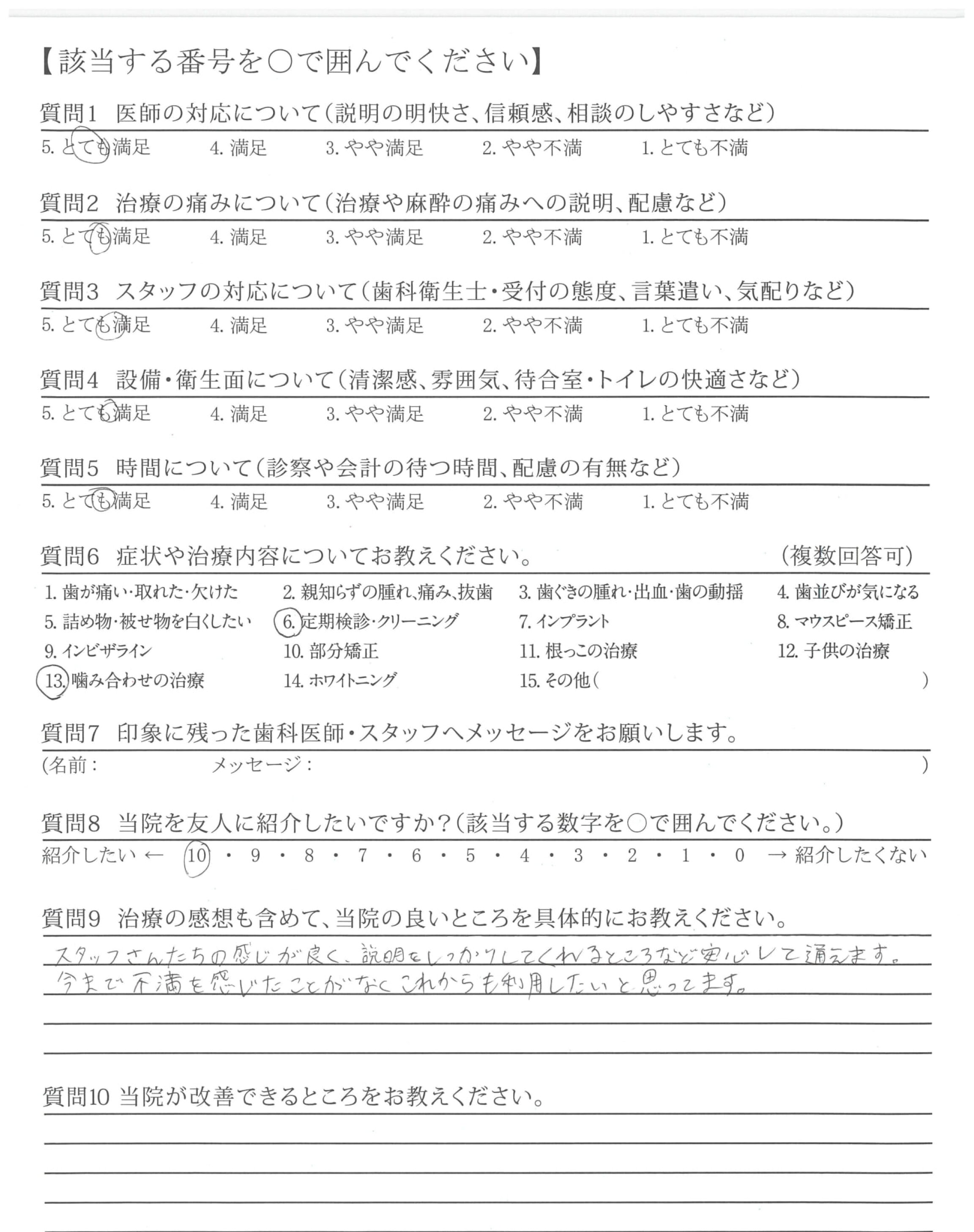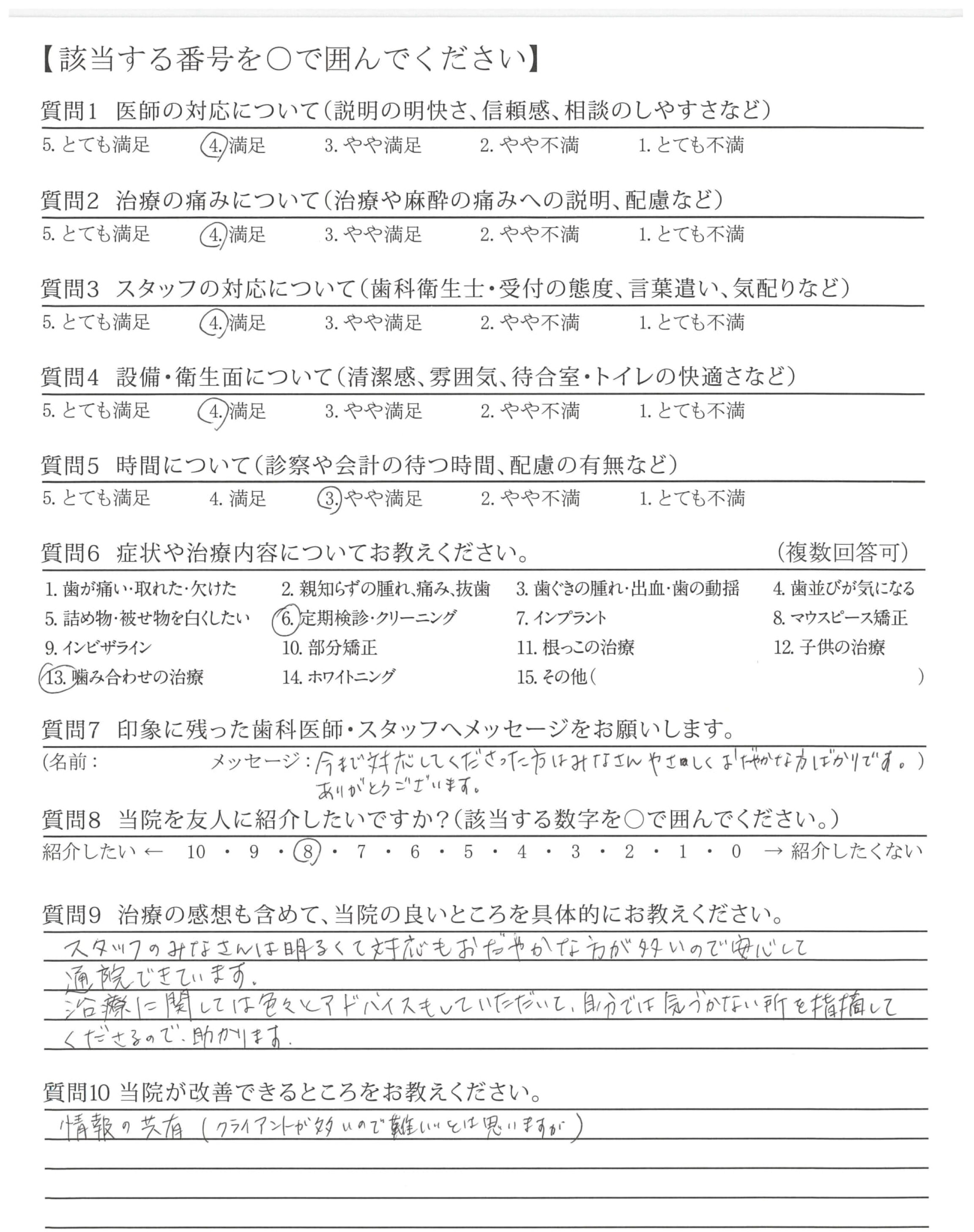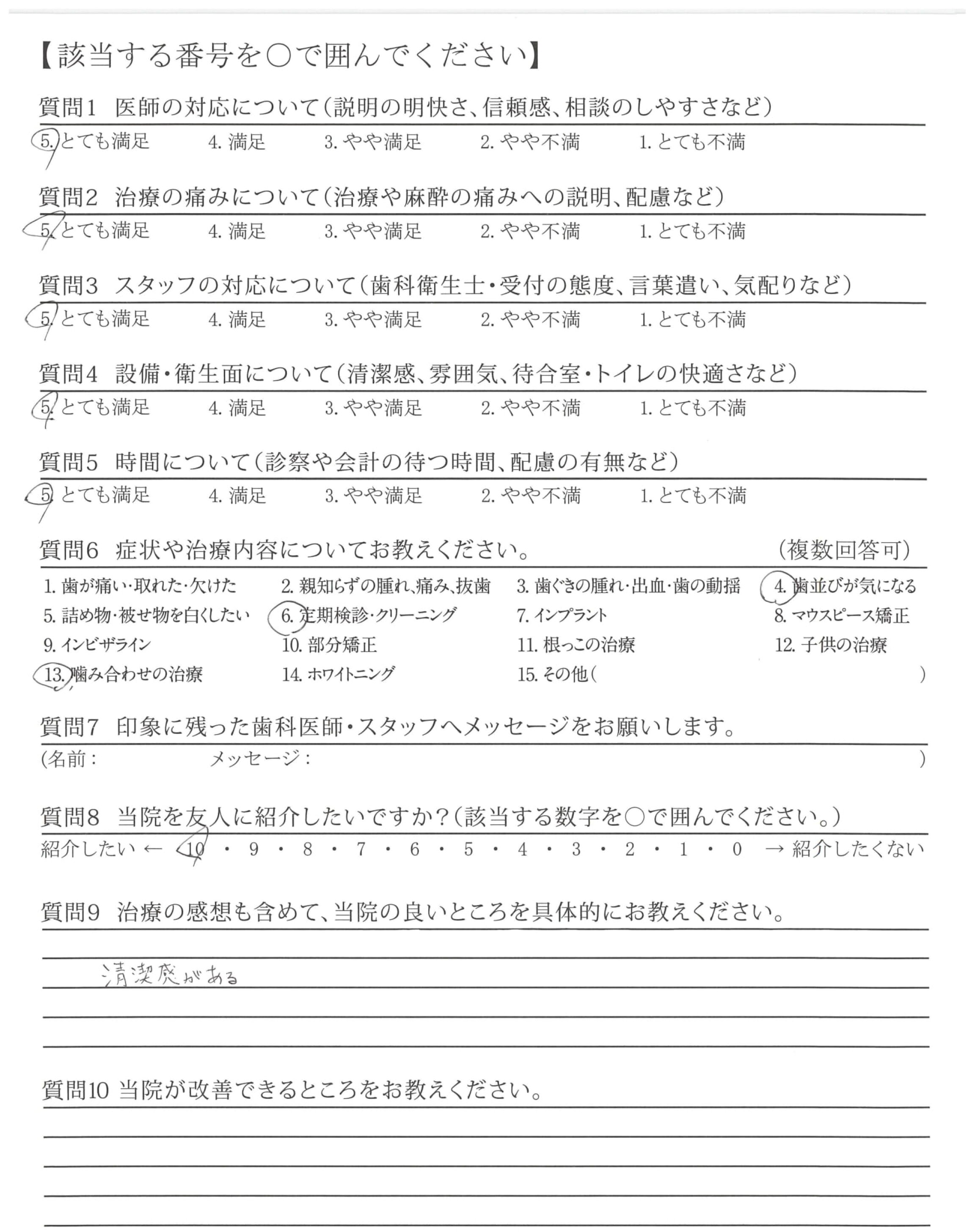 | 歯科医師の対応 | ![]() ![]() ![]() ![]() 4.61 |