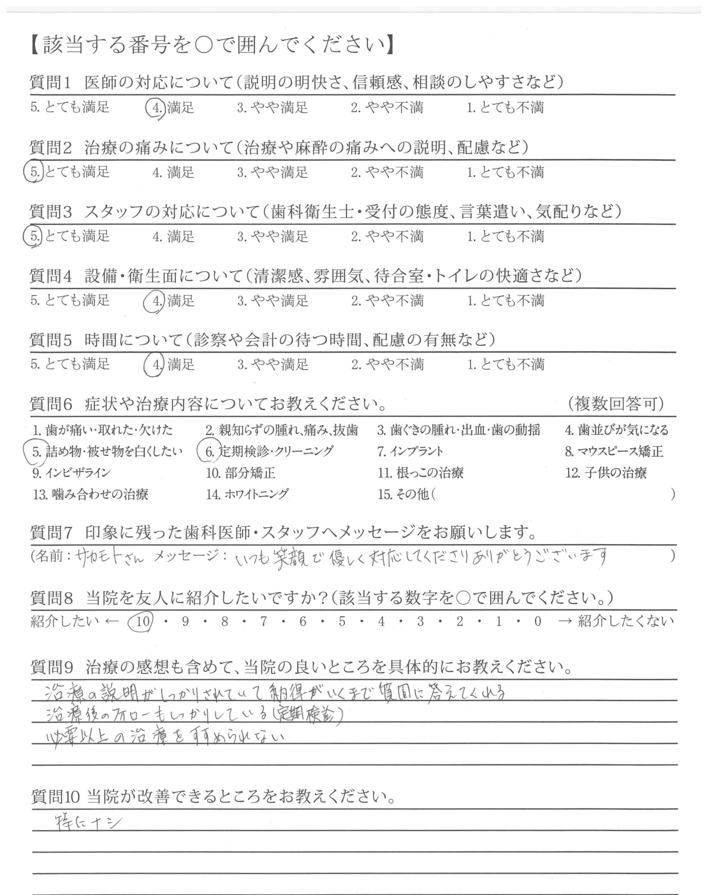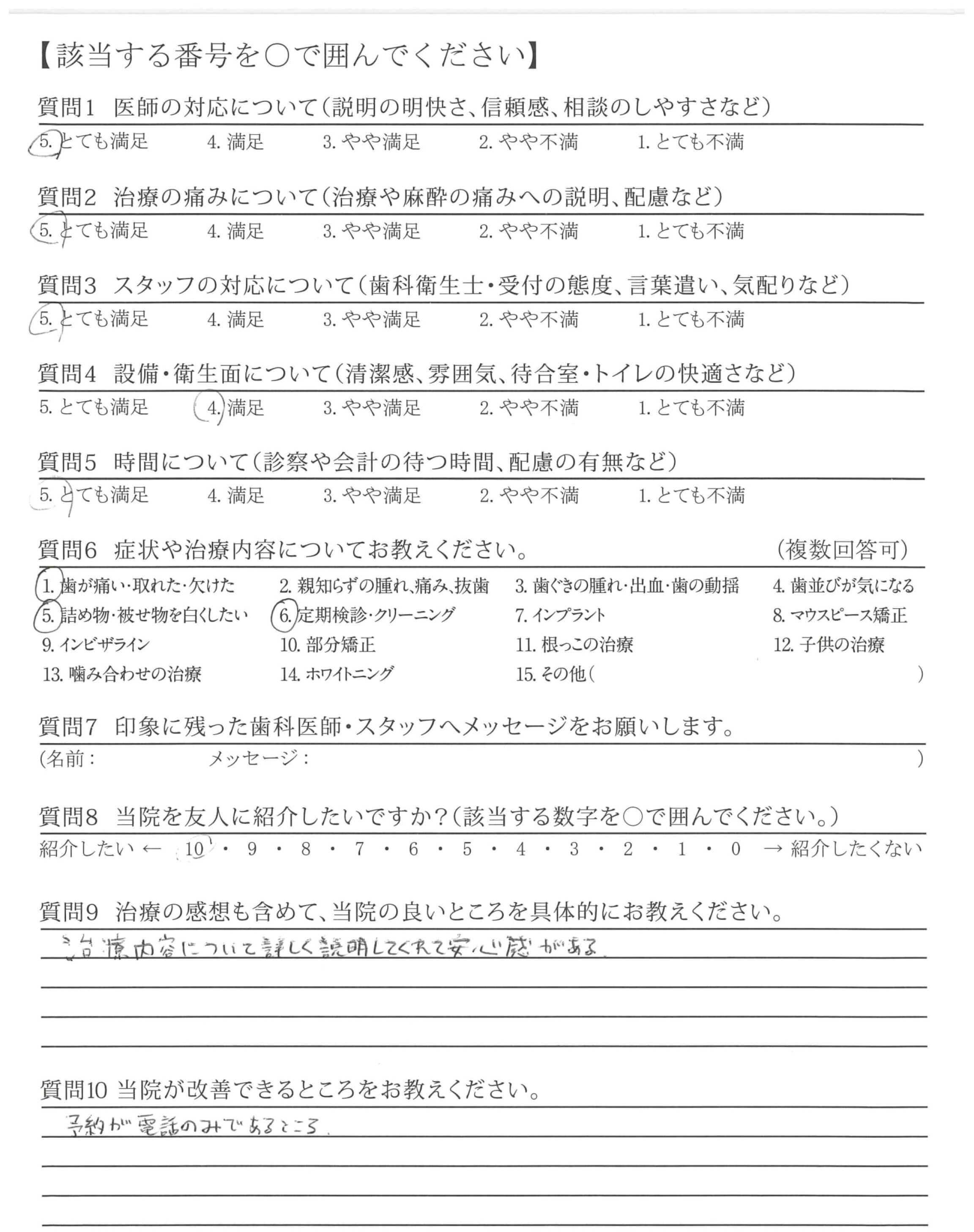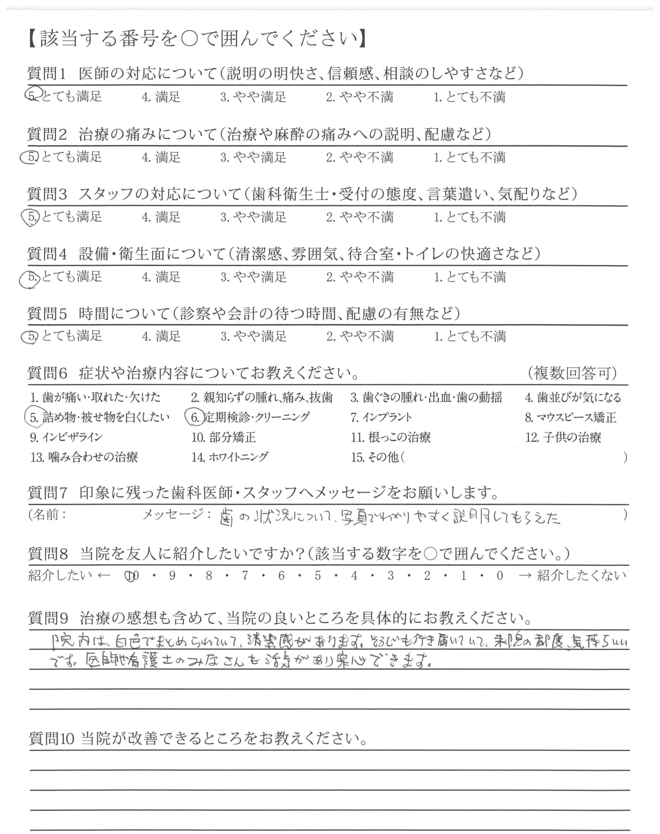 痛みがある時にも親身に寄りそって頂き、説明も分かりやすく安心しておまかせできました。