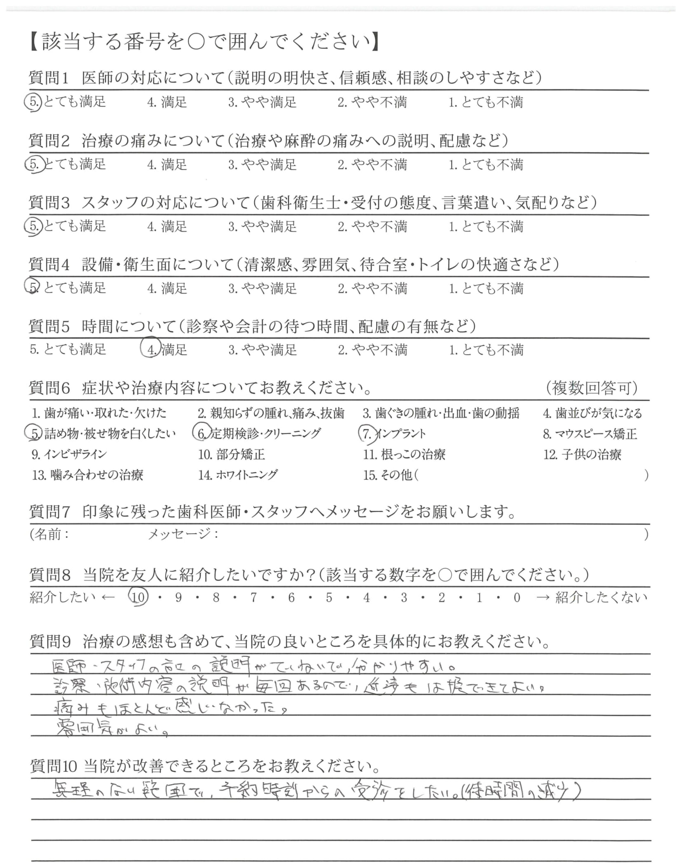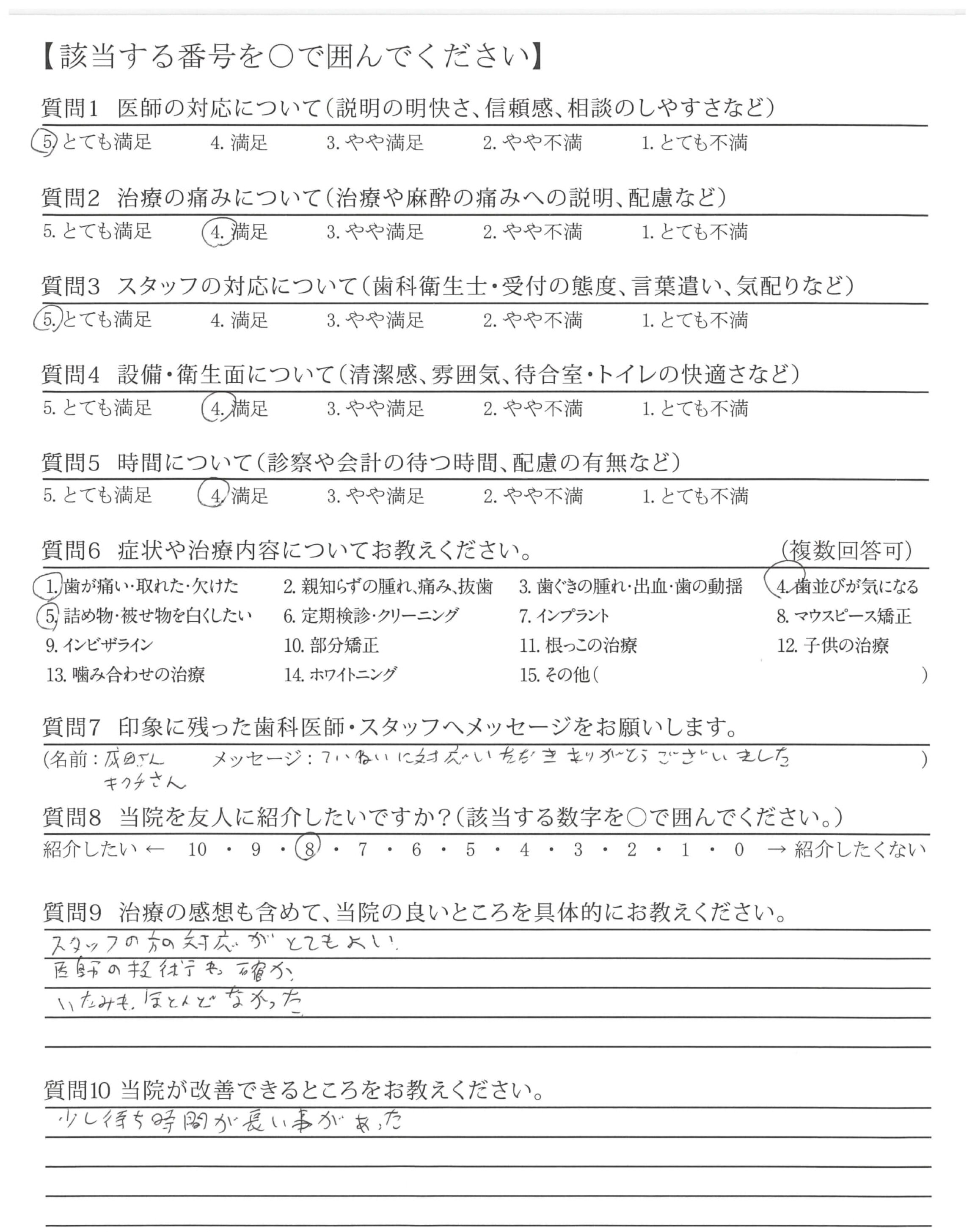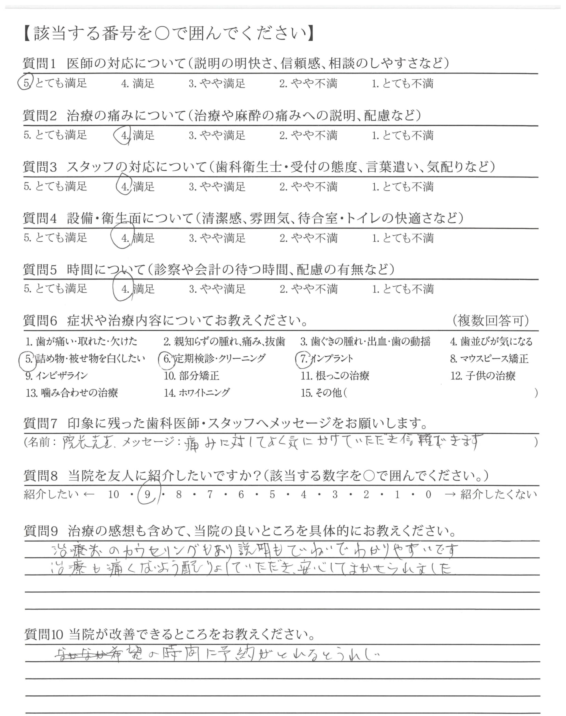 治療も痛くないように配りょしていただき、安心してまかせられました