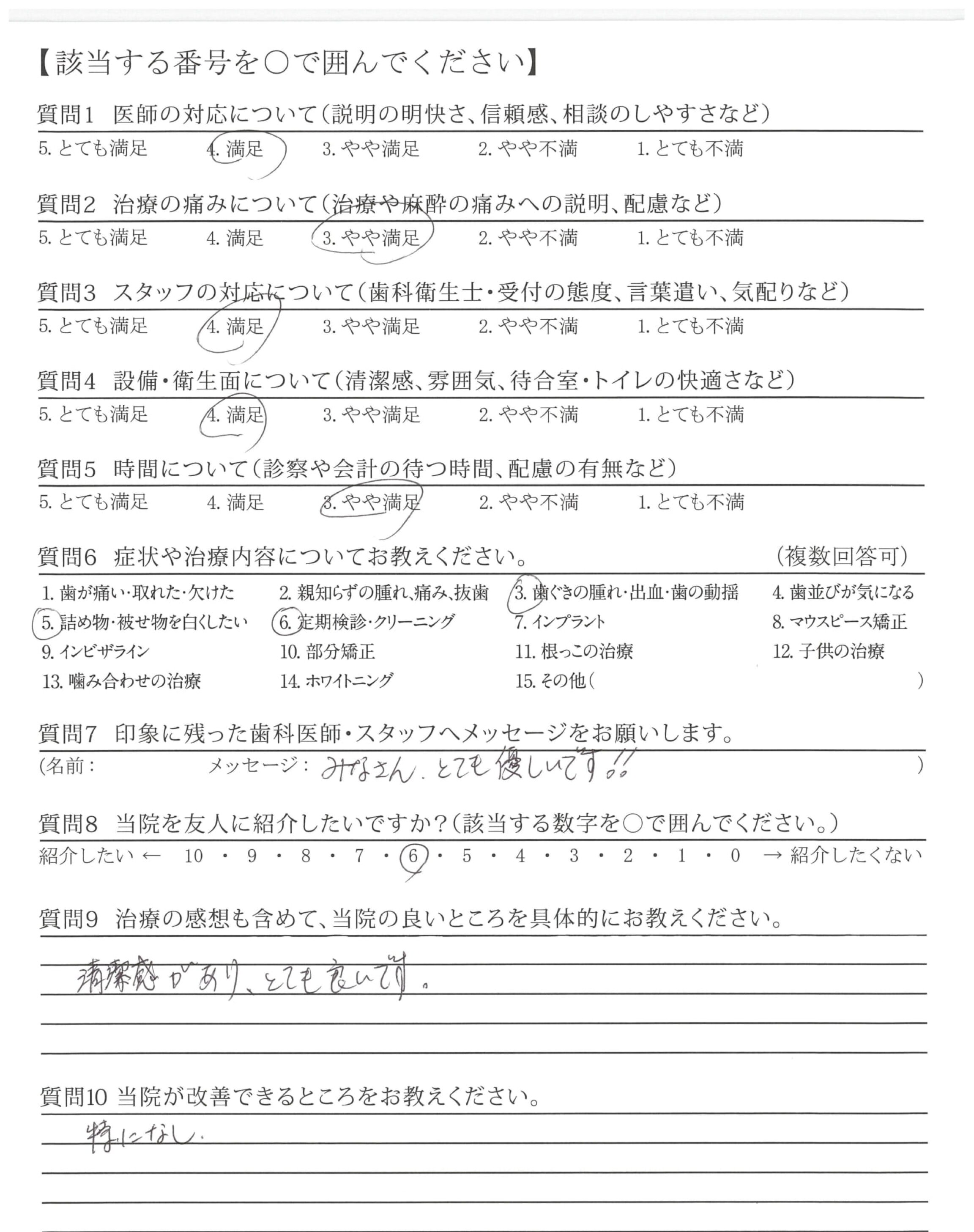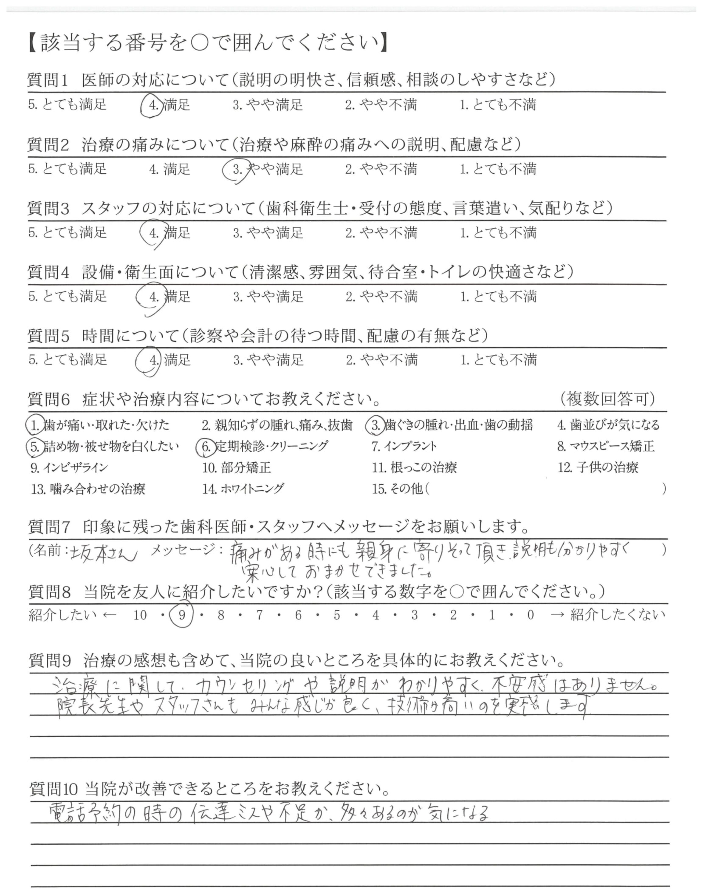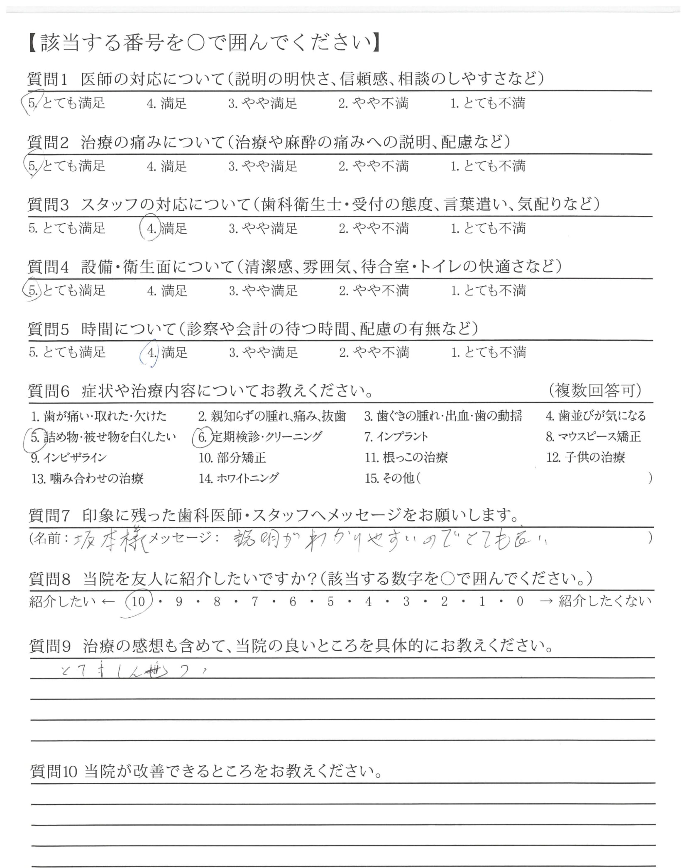 治療も痛くないように配りょしていただき、安心してまかせられました