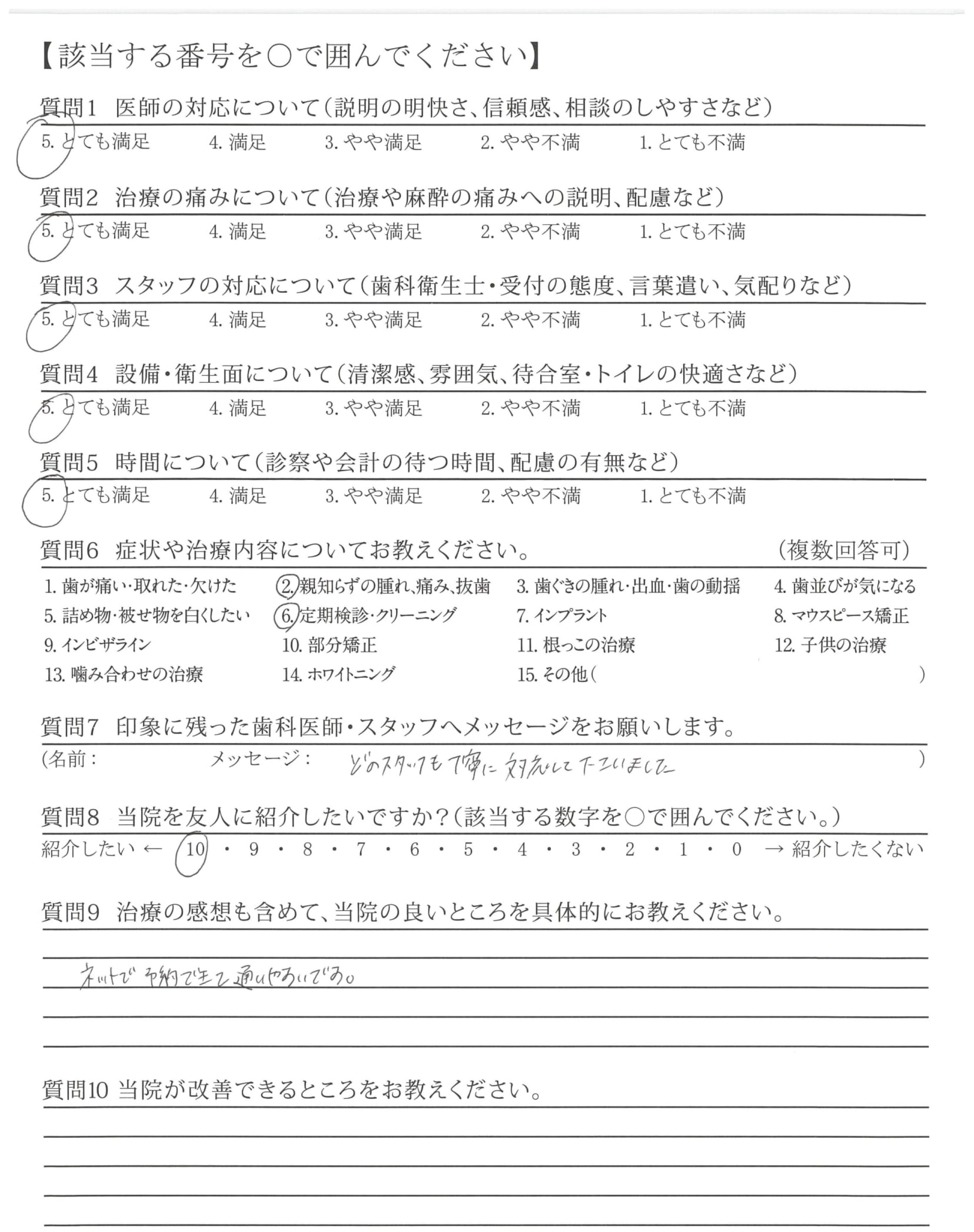 説明を丁寧にしていただき、不安がないまま治療に挑めました。ありがとうございました。