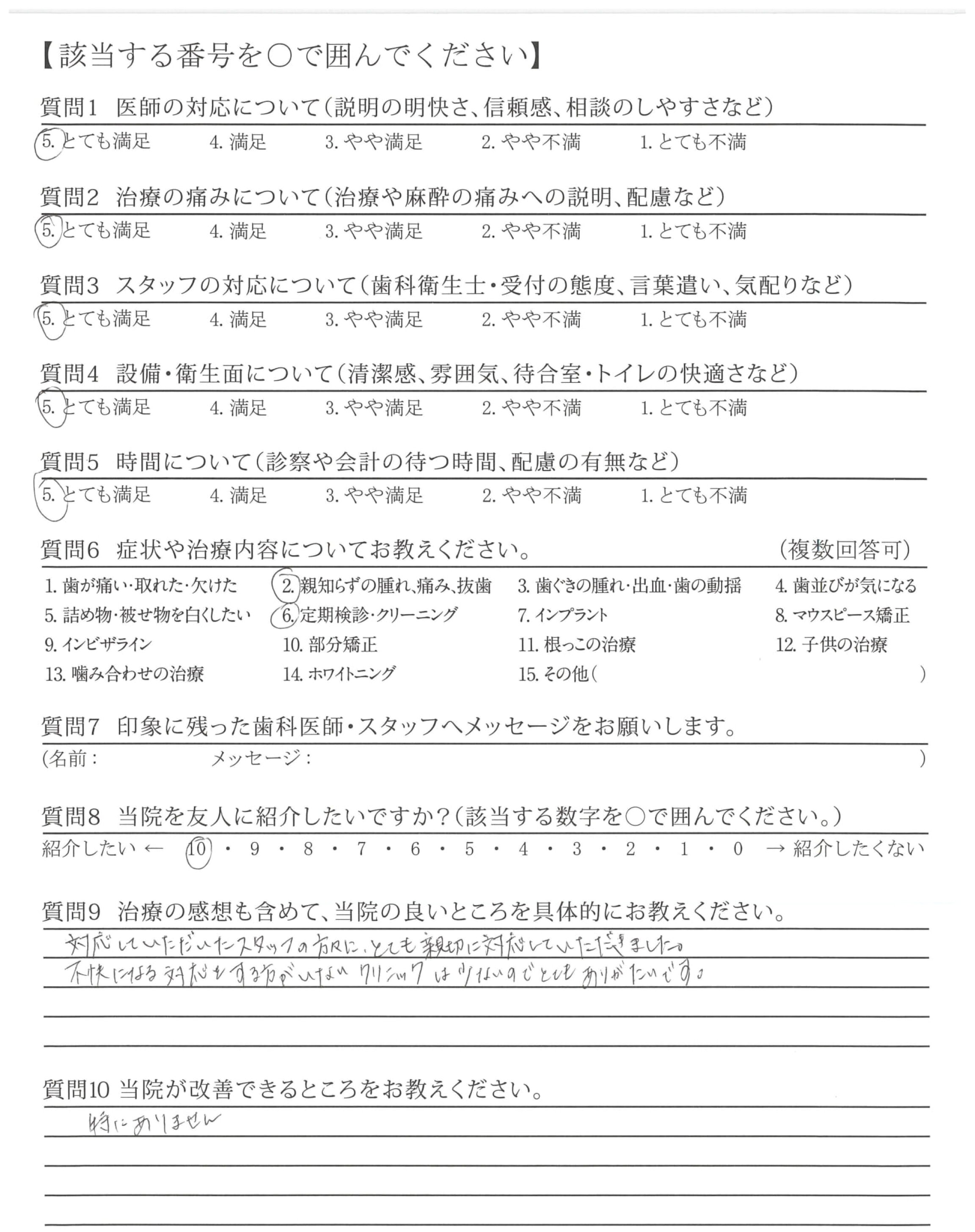 親知らずを抜歯することに対して不安がありましたが、一本ずつ丁寧に抜歯していただき、よかったです。