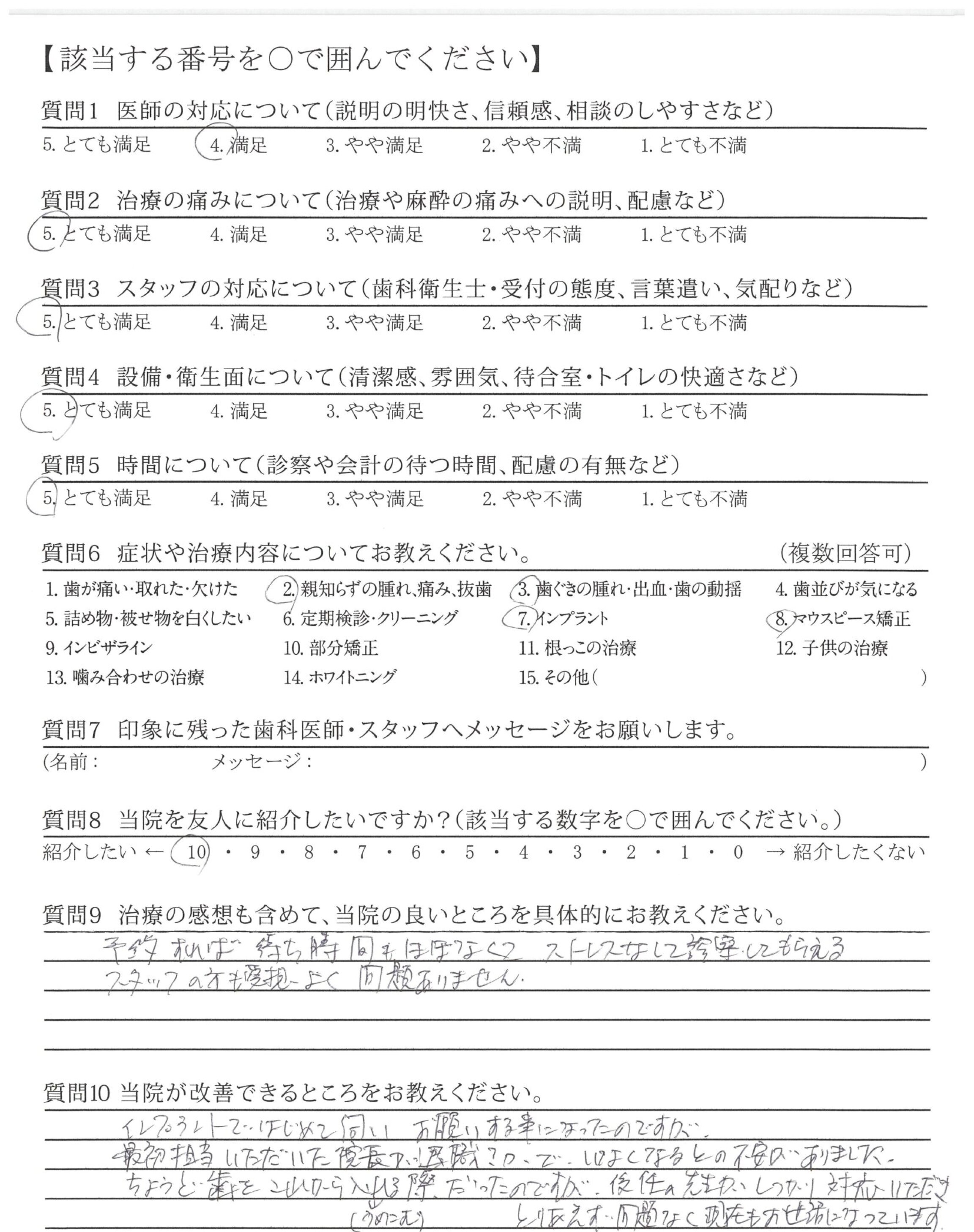 治療についても痛みに気をくばってくださり、痛みは全く感じず、不安はありませんでした。