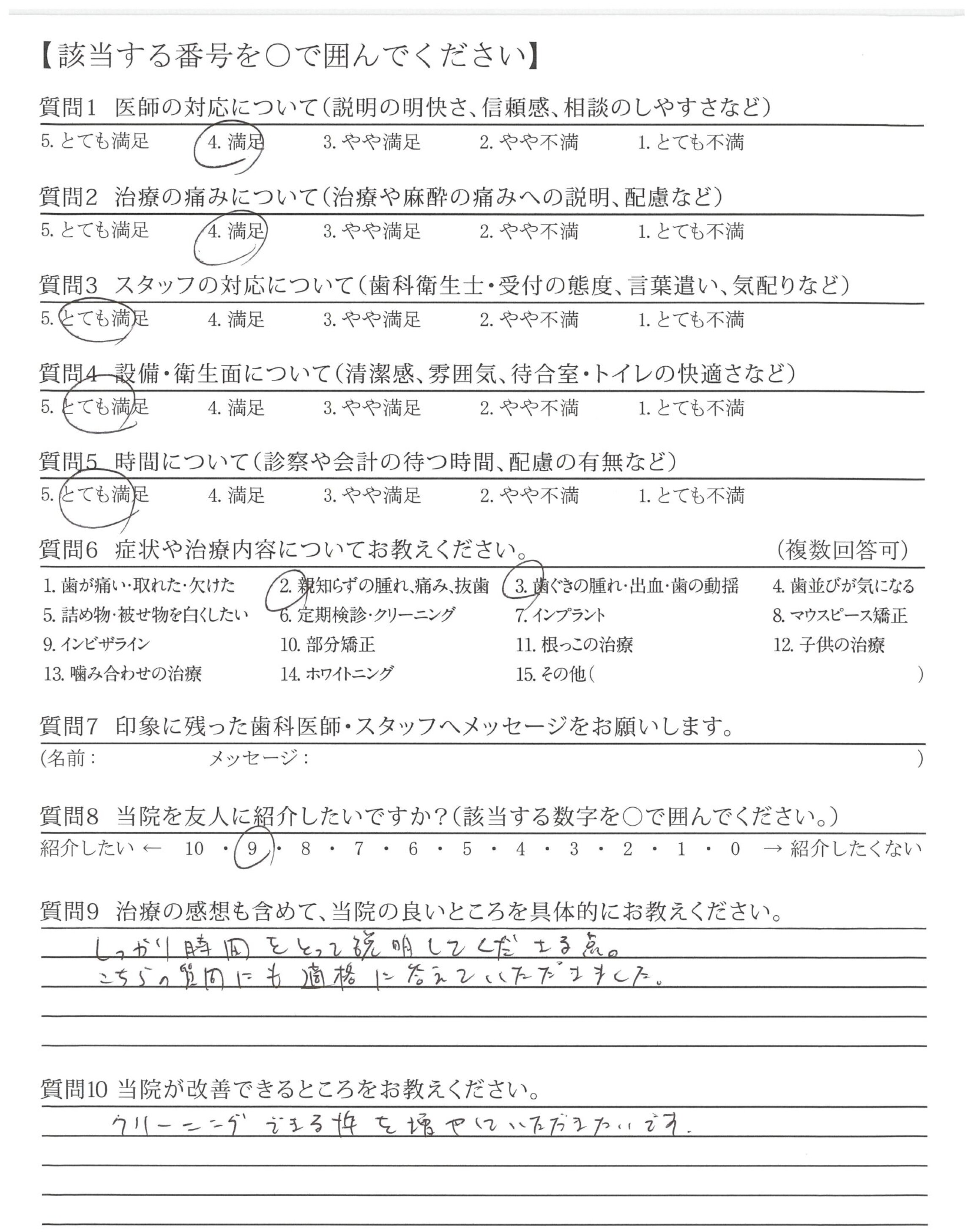 治療においては全く痛みが無く安心して治療を受けることができた。
