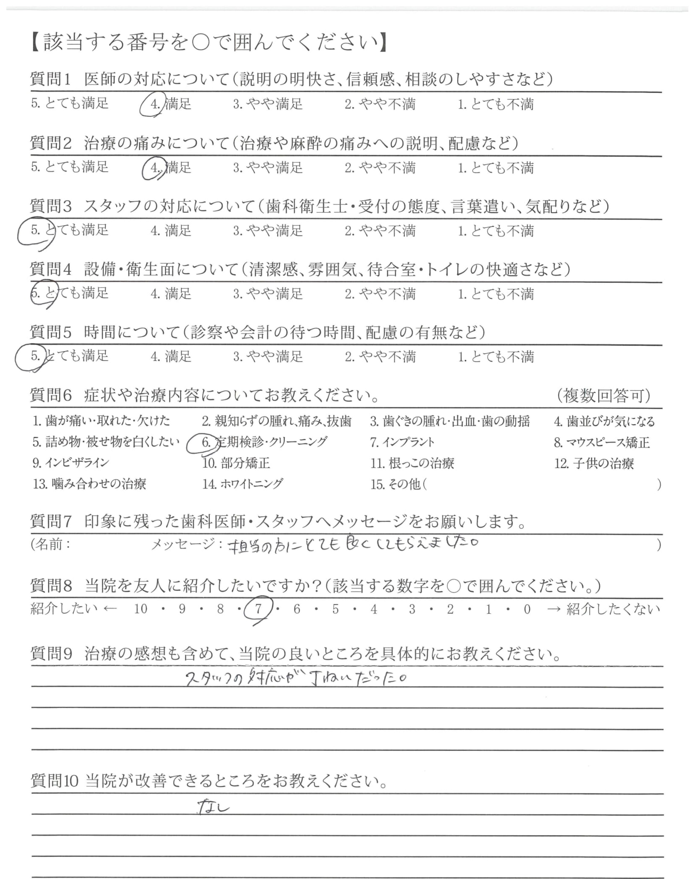 スタッフの対応 *****5.00