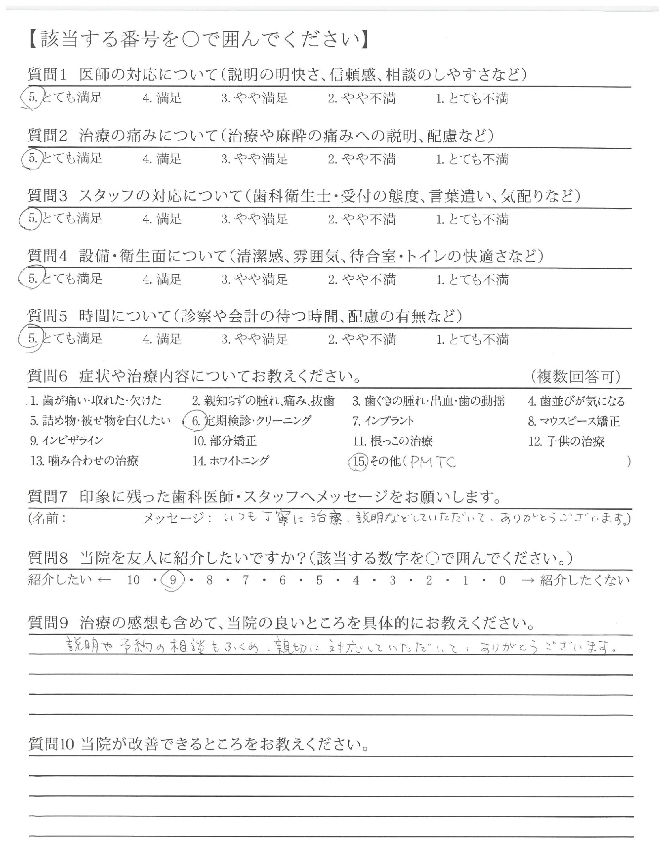 今回はじめてPMTCを受けましたが、痛みもなく汚れを除去していただき歯がツルツルになりました。