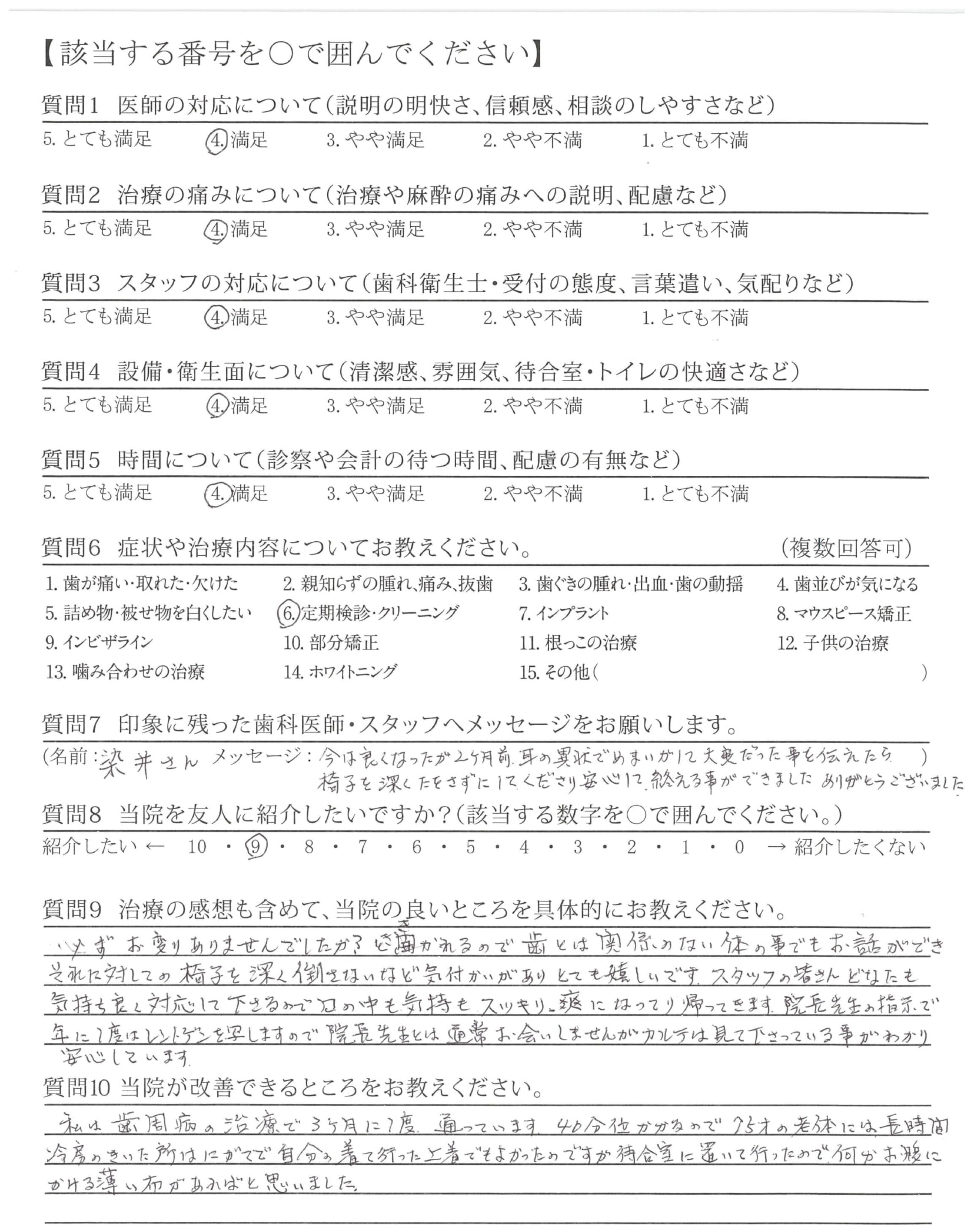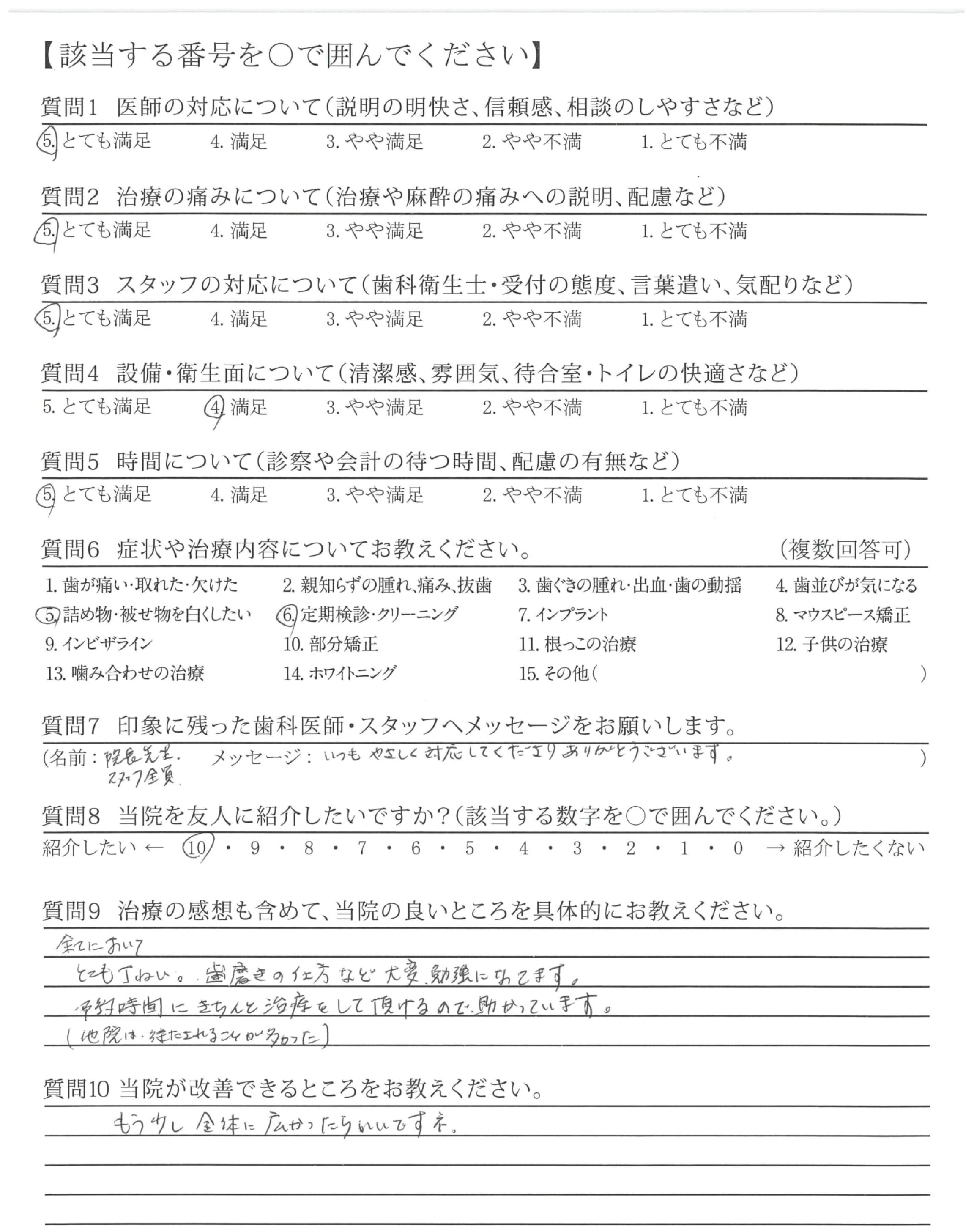 何時もクリーニングをして戴く衛生士さんの丁寧な対応に感謝しております。