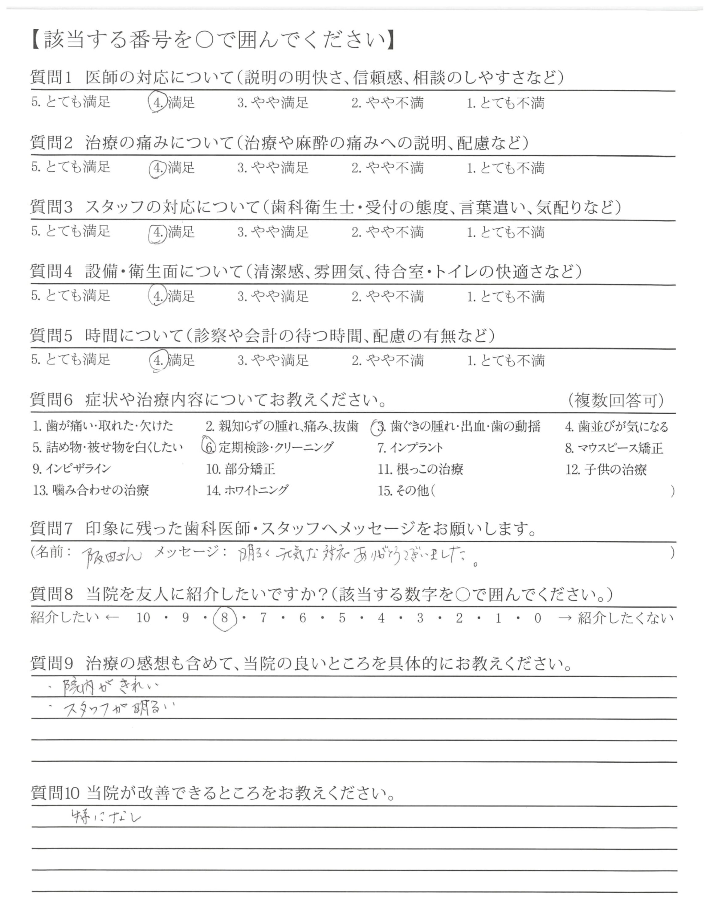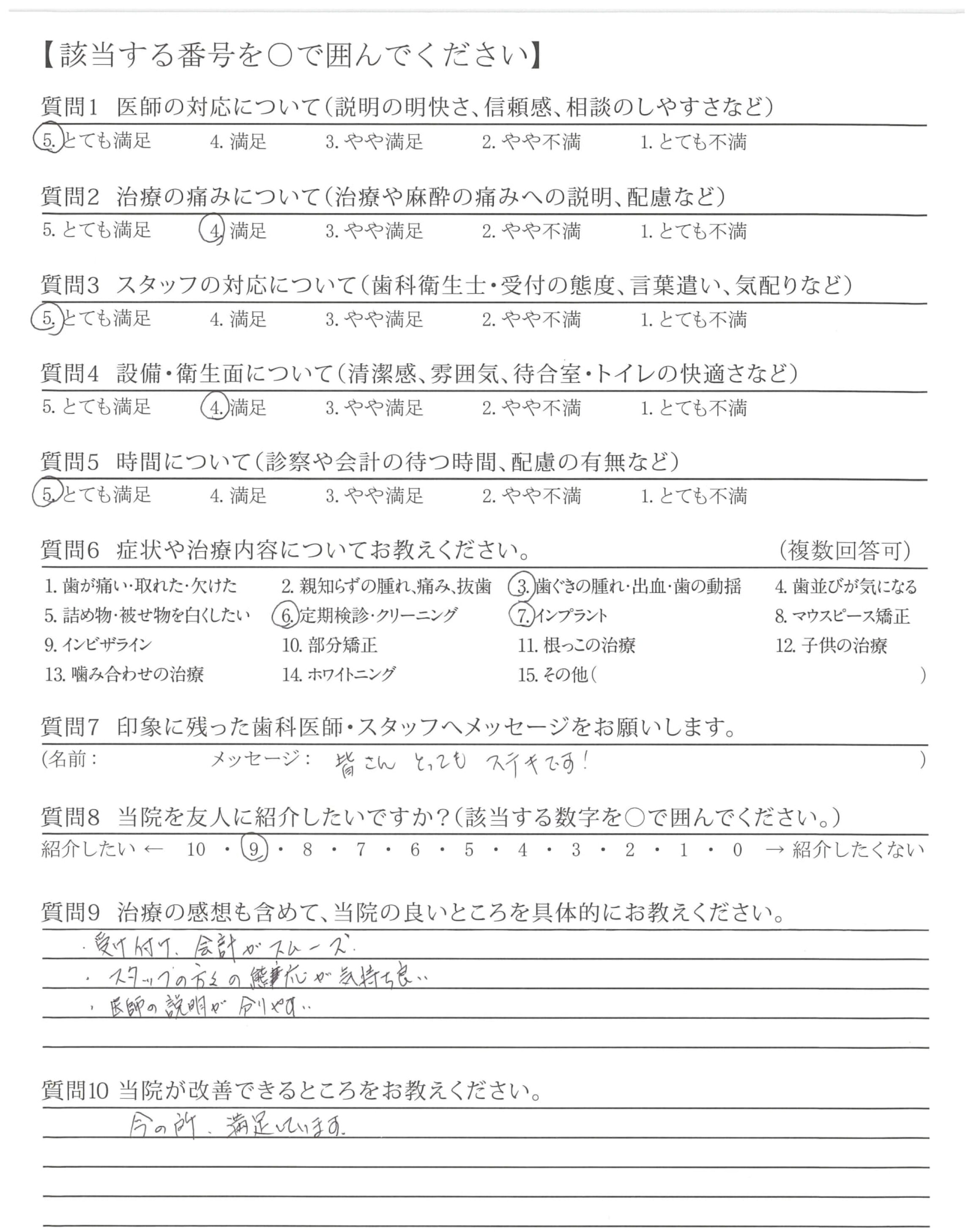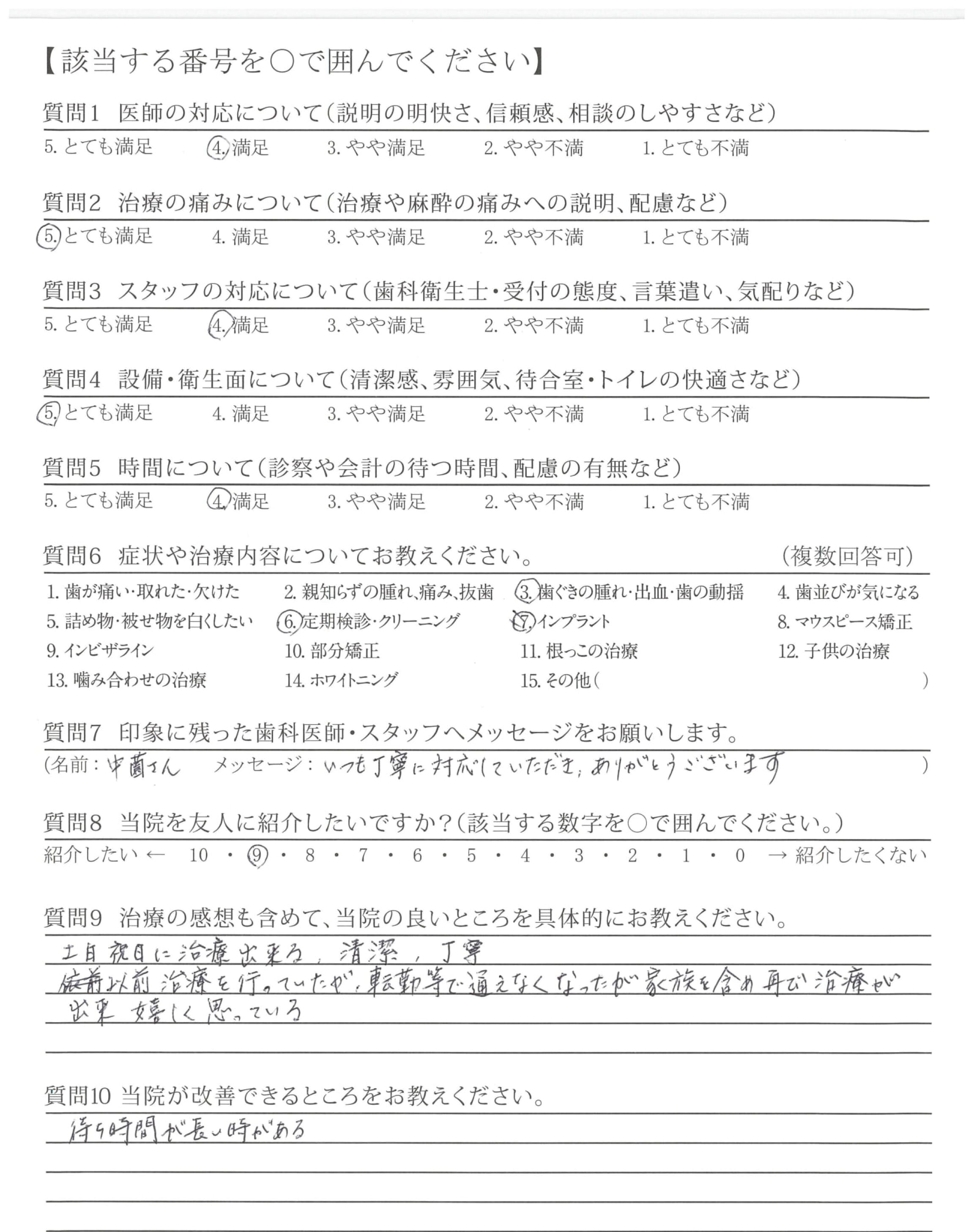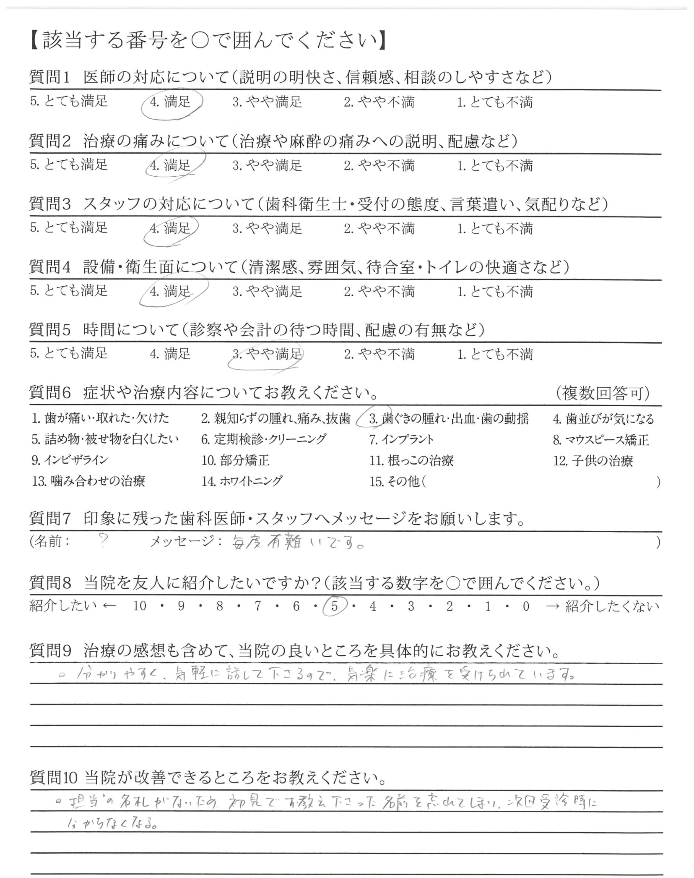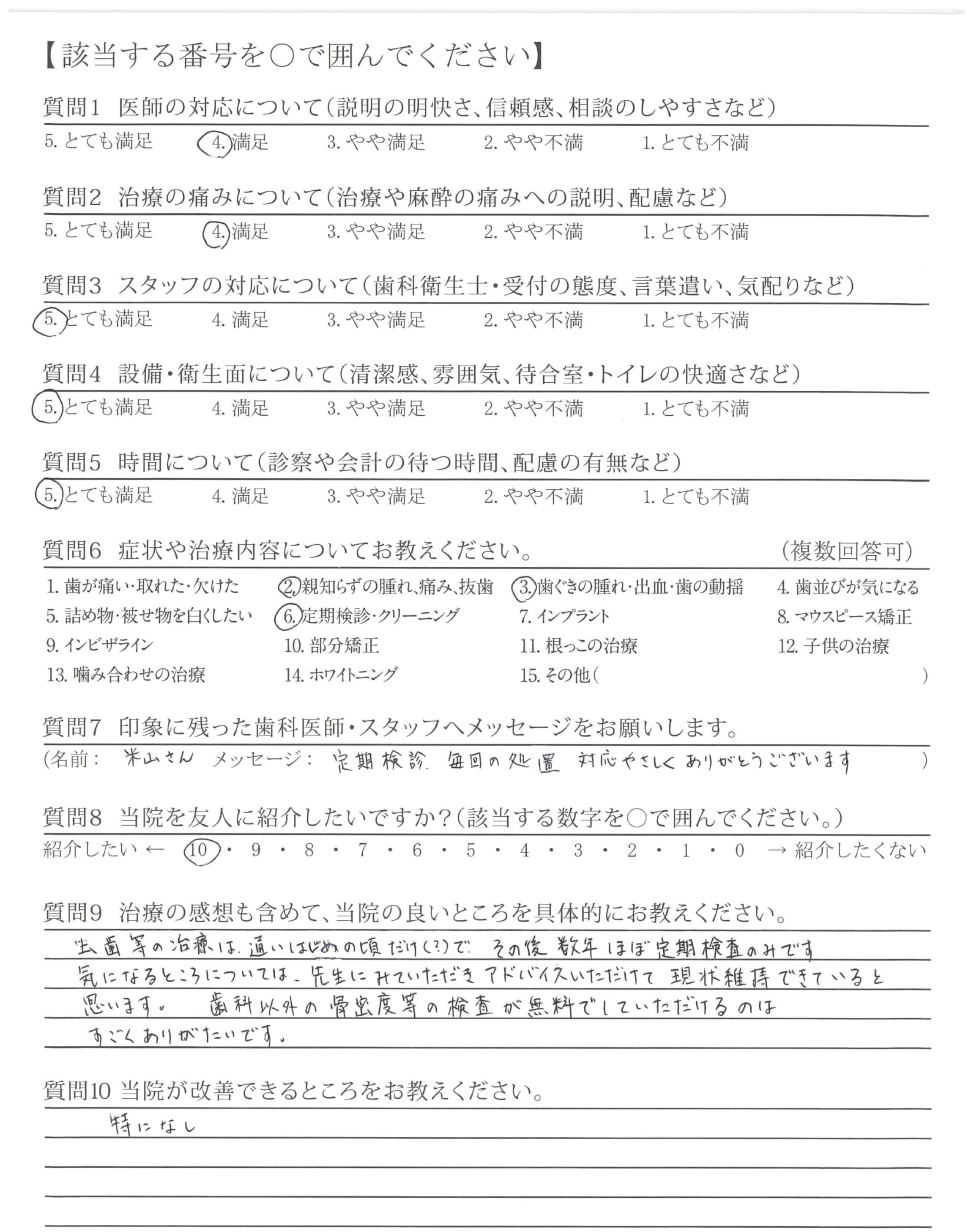 いつも治療して頂きありがとうございます。おかげ様で歯の状態だいぶよくなりました。