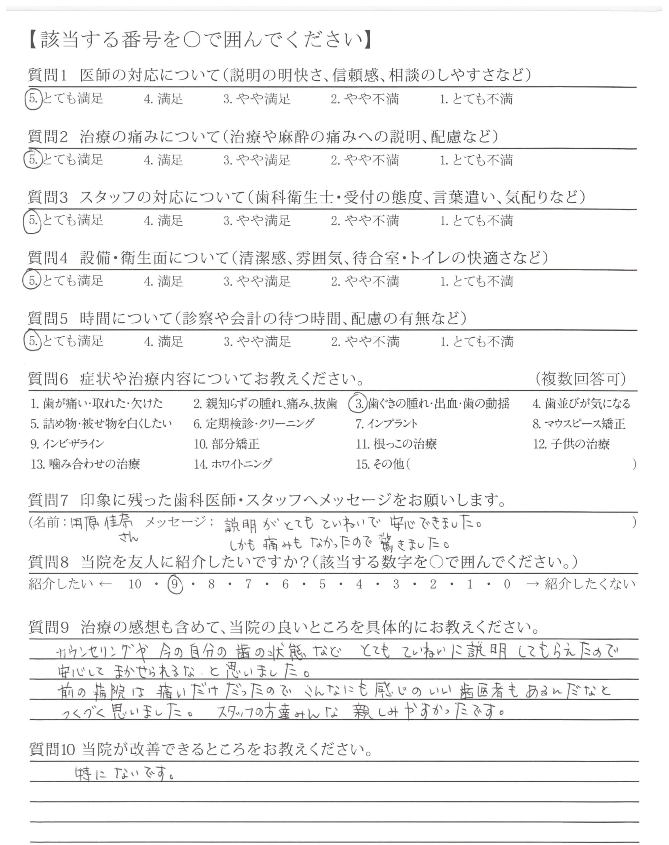 説明がとてもていねいで安心できました。しかも痛みもなかったので驚きました。