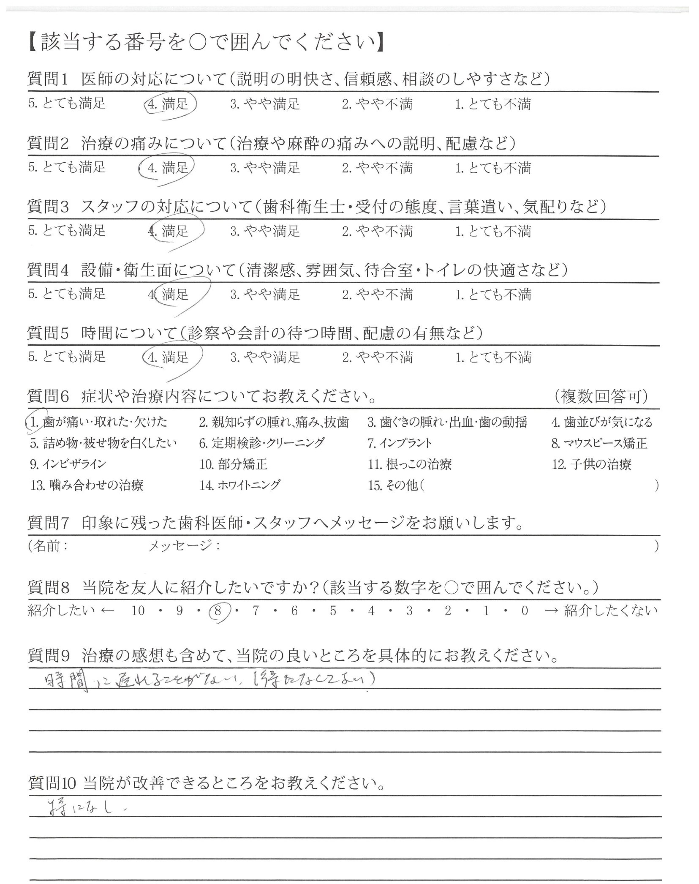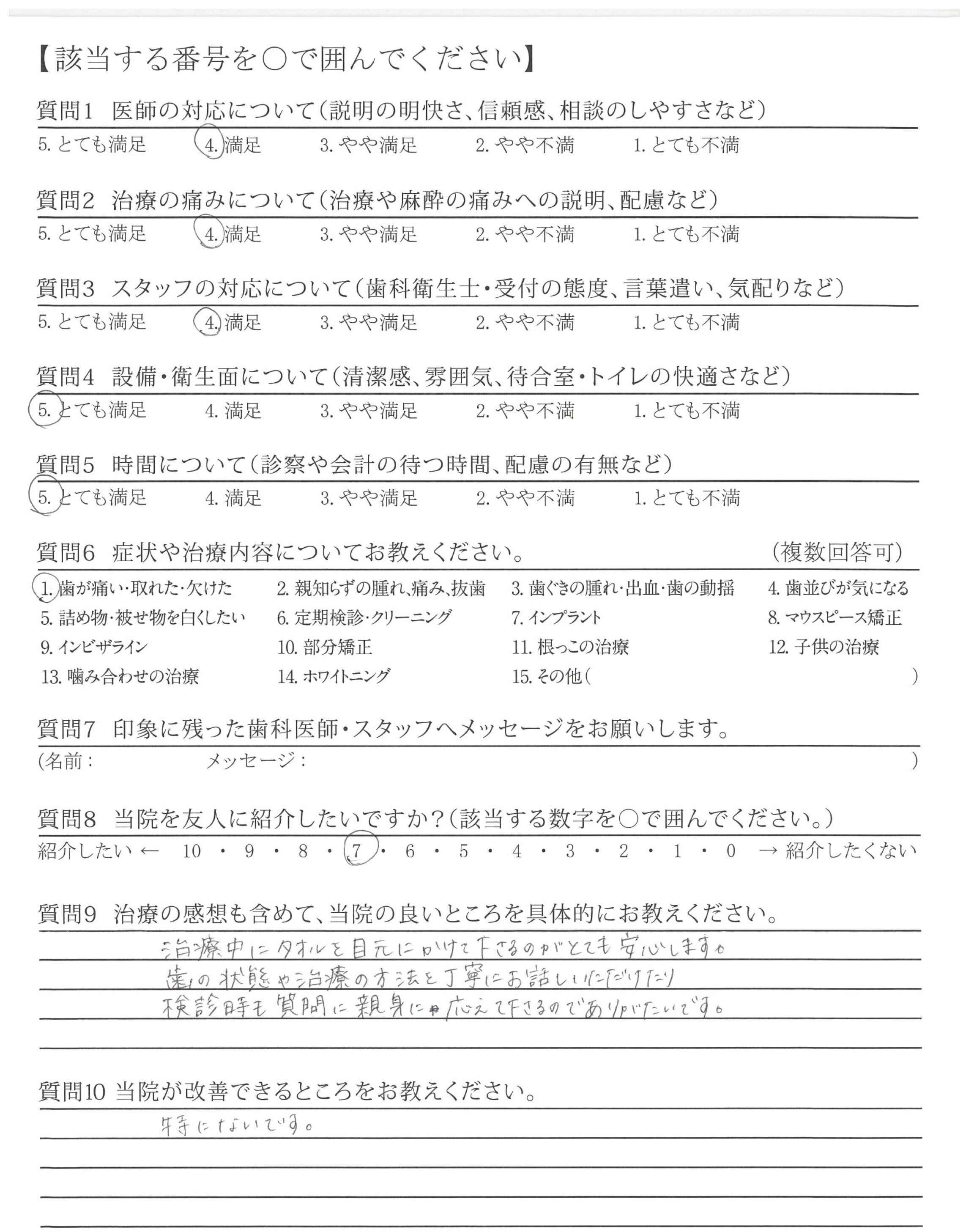 歯の色のことで、あとから電話させていただいた際ていねいに説明して下さってとても安心できました