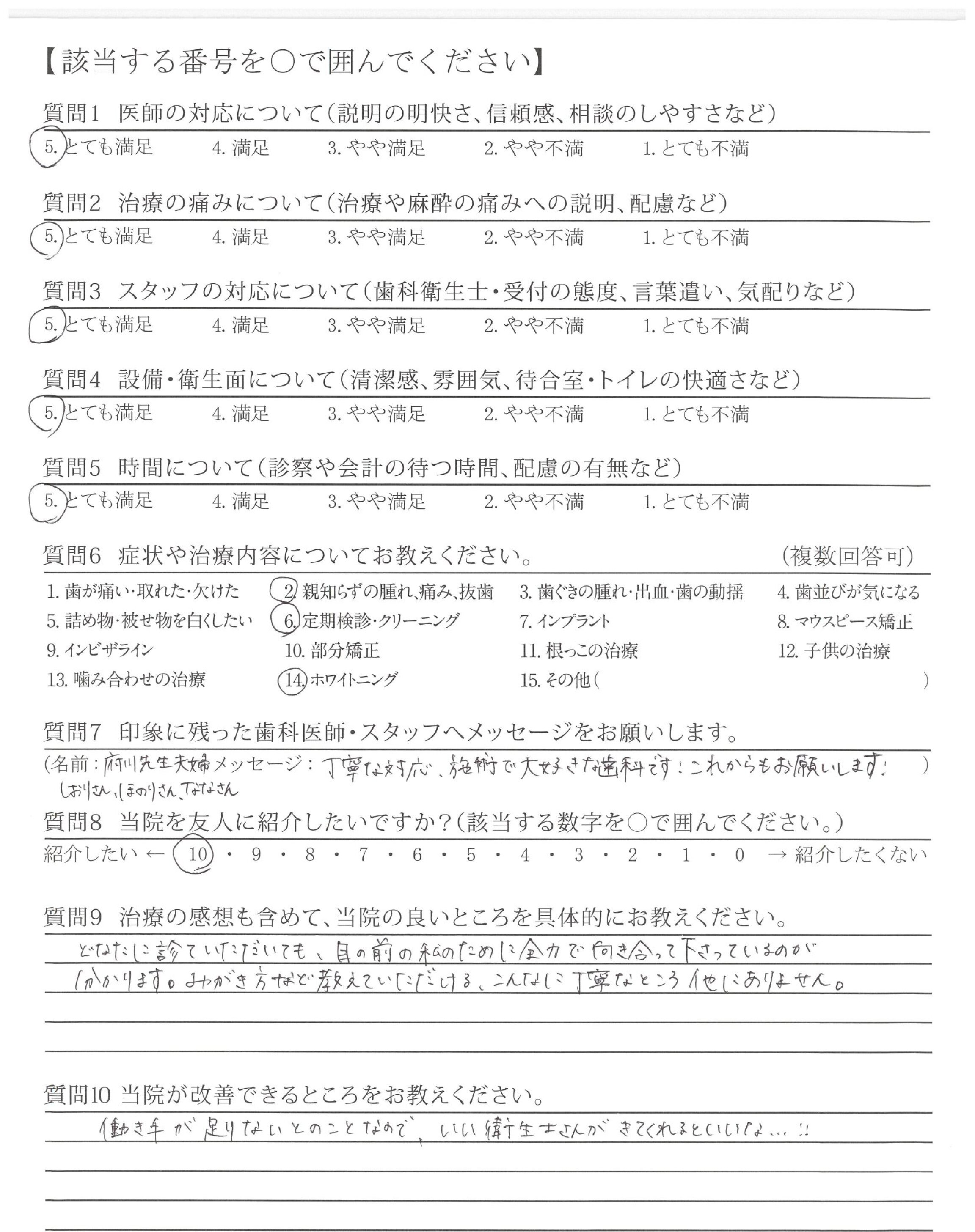 親知らずの時はリスク説明、費用、私の不安な気持ちを汲んでくださって納得のいく治療をして頂けてとても感謝しています。