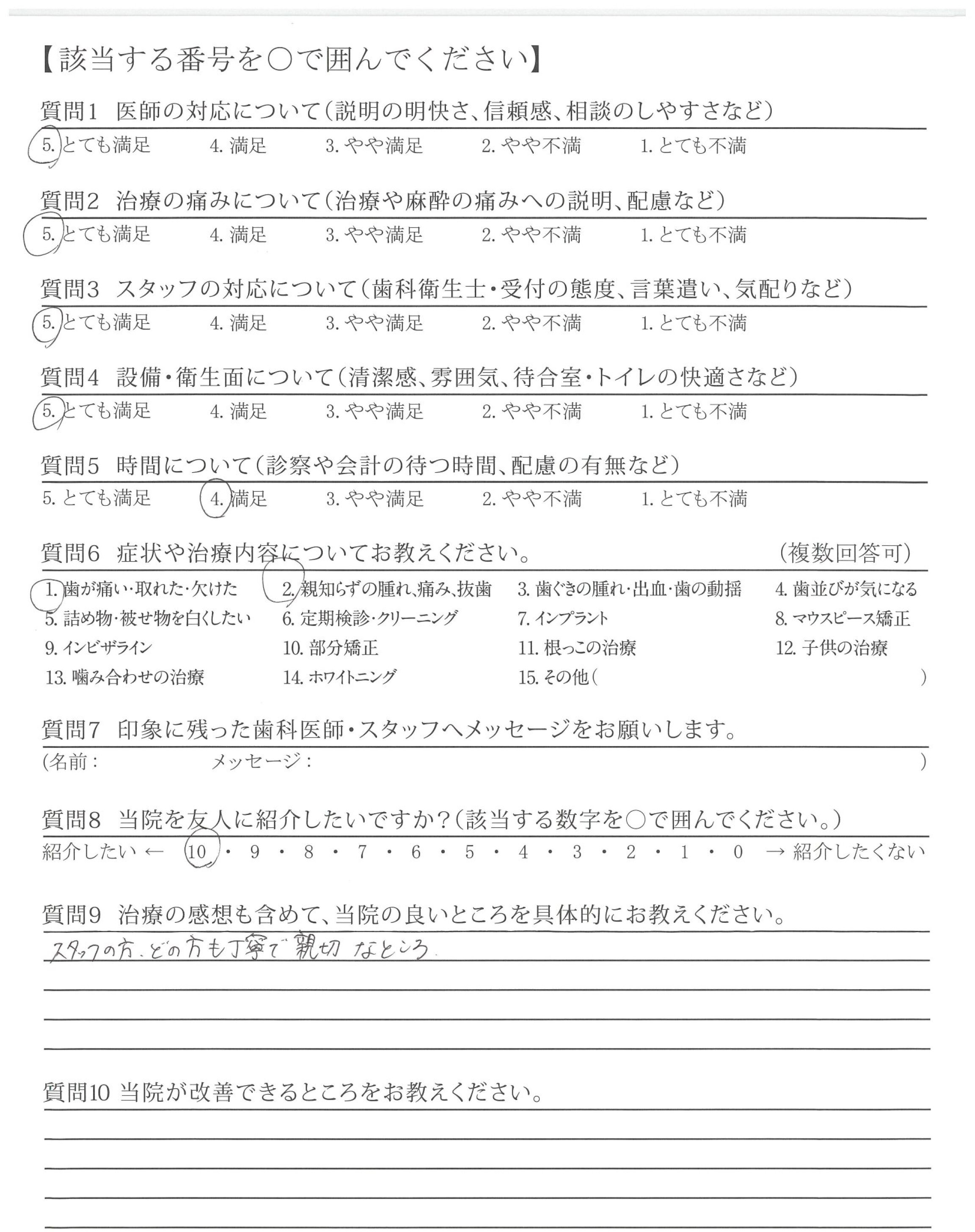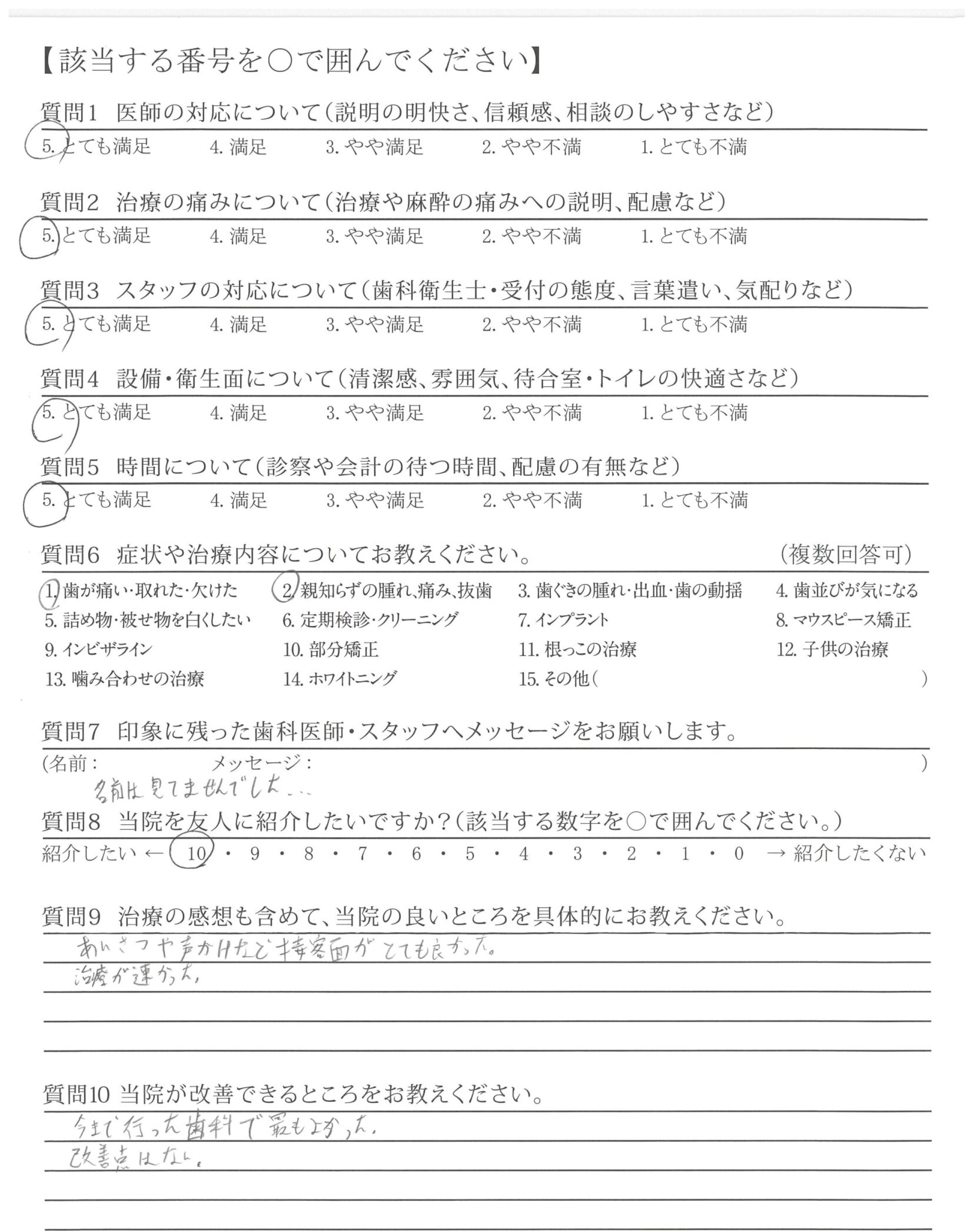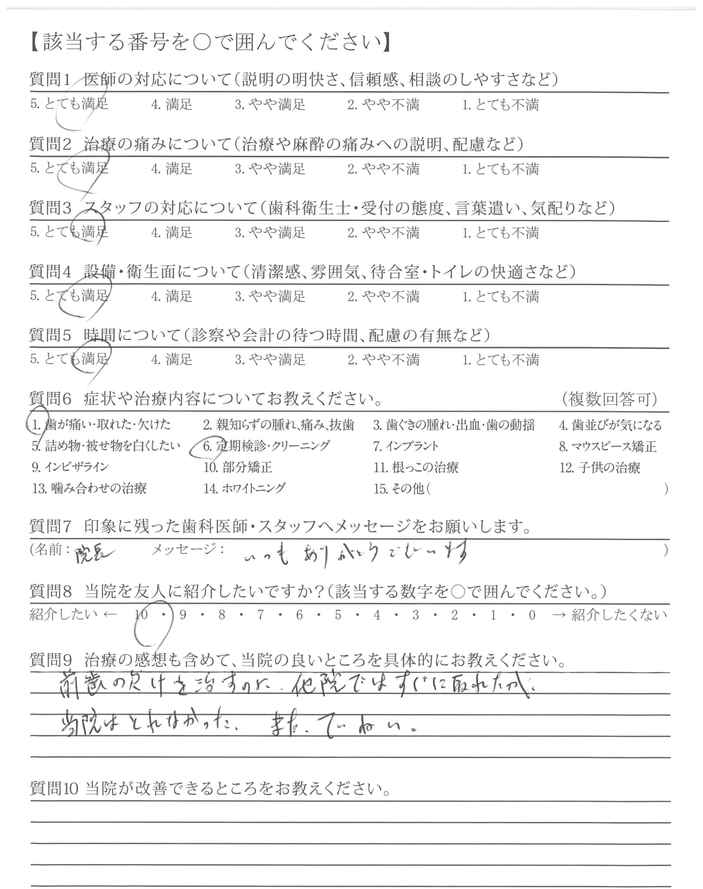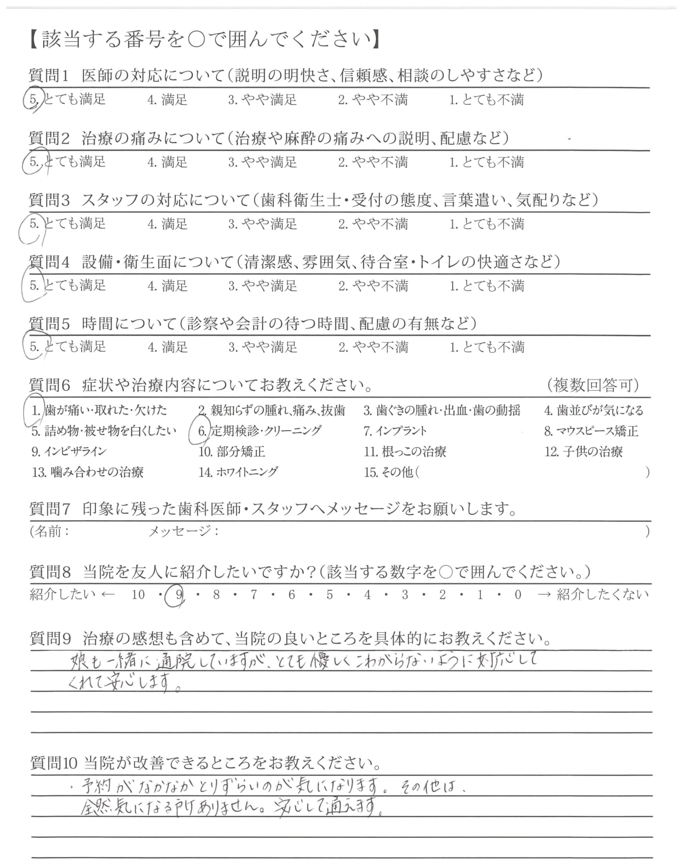 親切、丁寧な対応、信頼できる治療をありがとうございます。