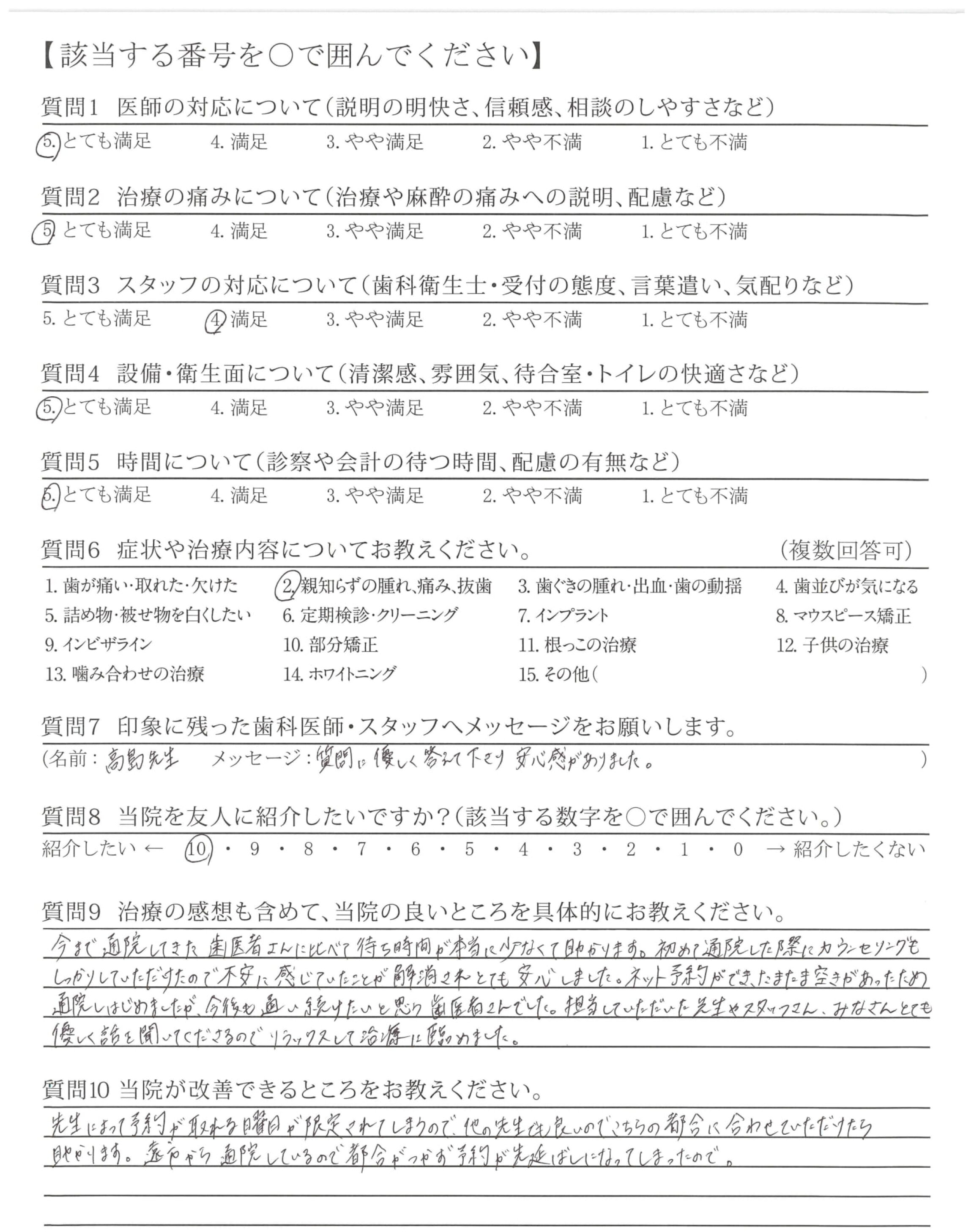 親知らずの抜歯が続き、不安だらけでしたが、その都度、しっかり対応して下さったので、よかったなぁと思いました。