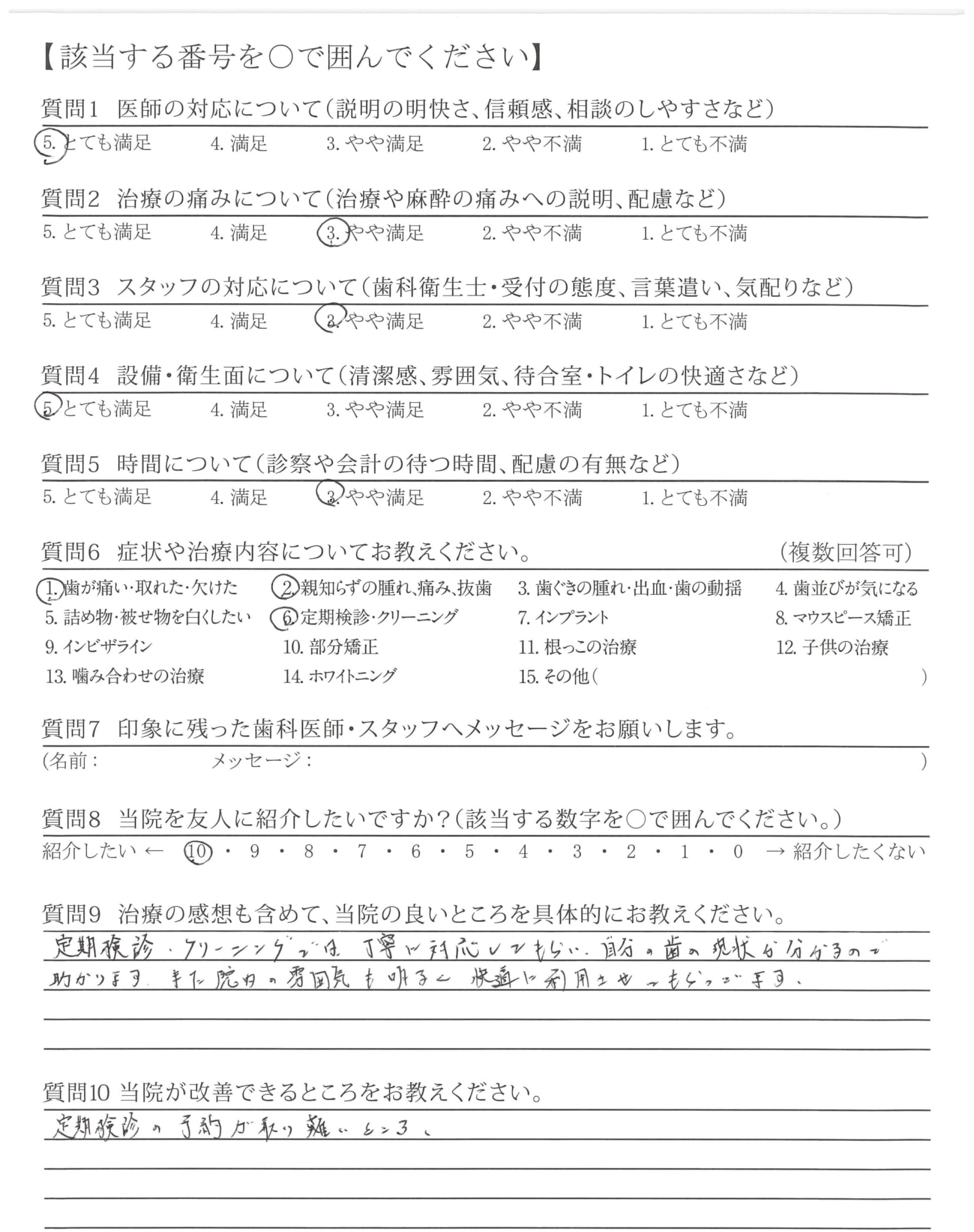 メンテナンスの期間が多く空いてしまうようなので、もう少し治療とメンテナンスのバランスがうまくとれていると良いと思いました。