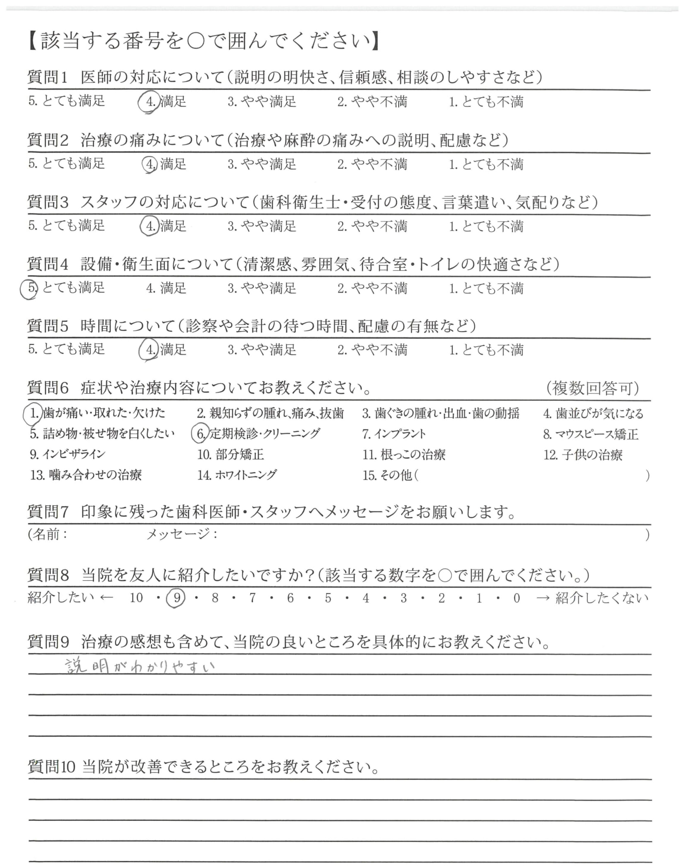 丁寧な治療でありがたかったです。また、説明もしっかりしてくださり、不安でしたが、安心感がありました。