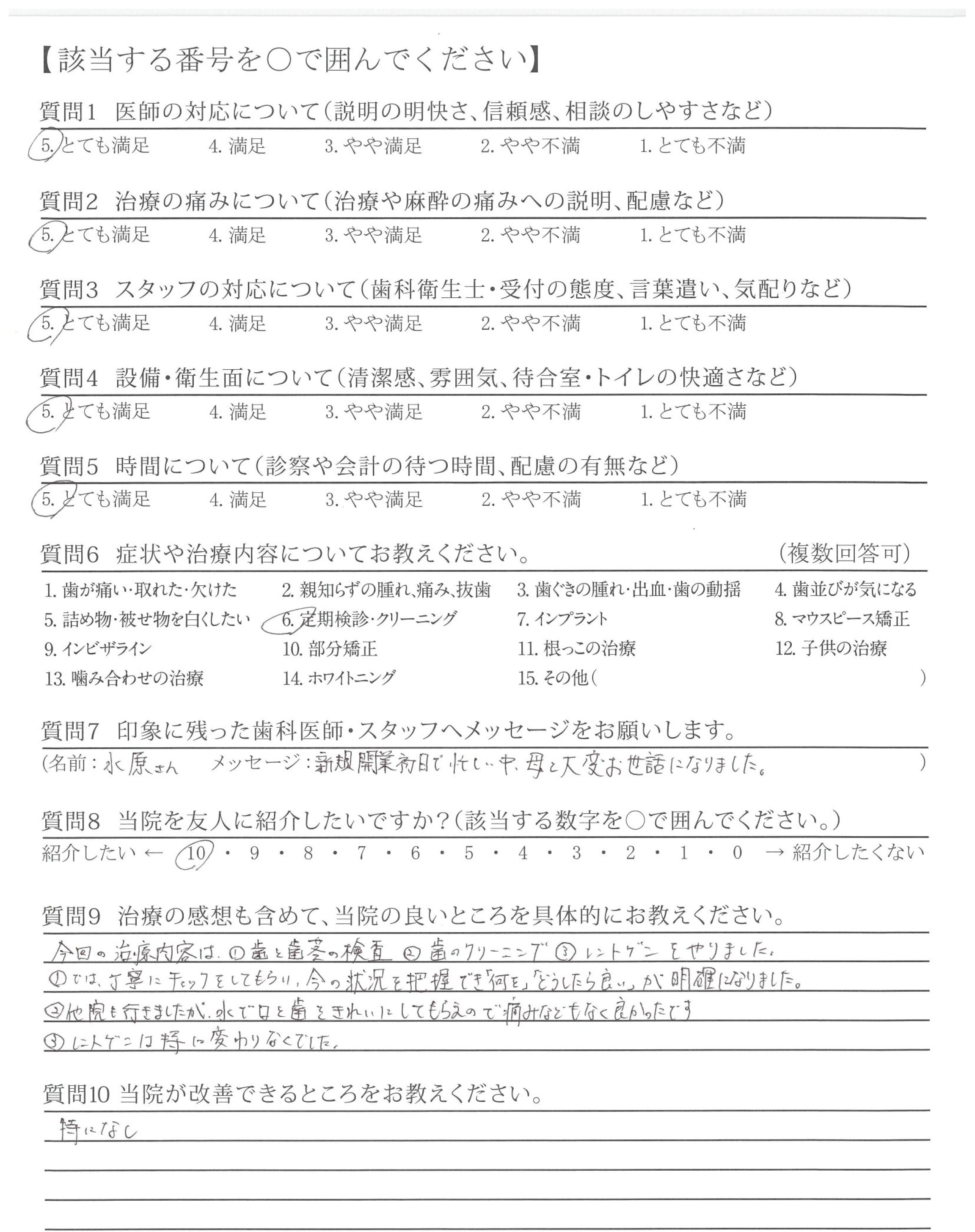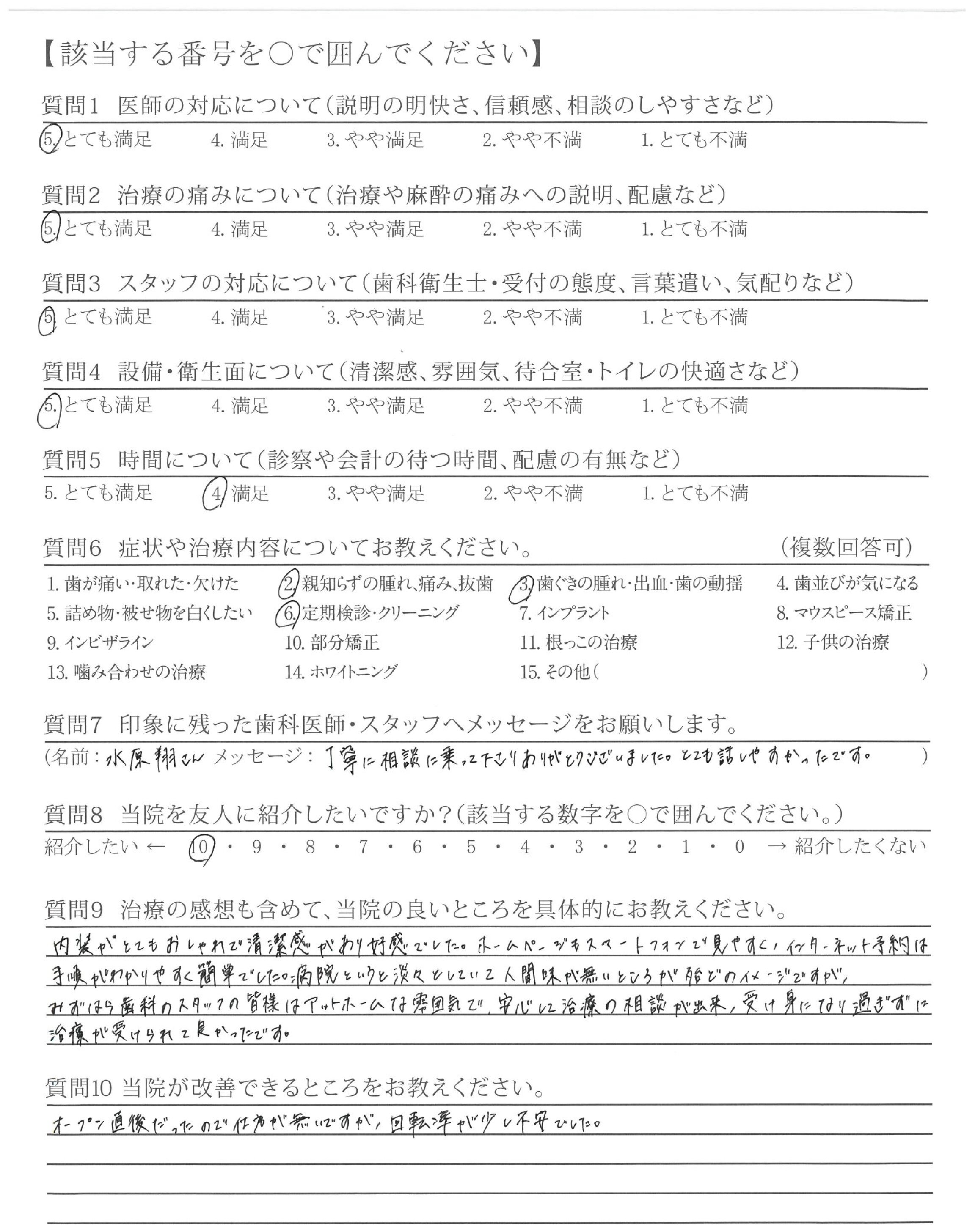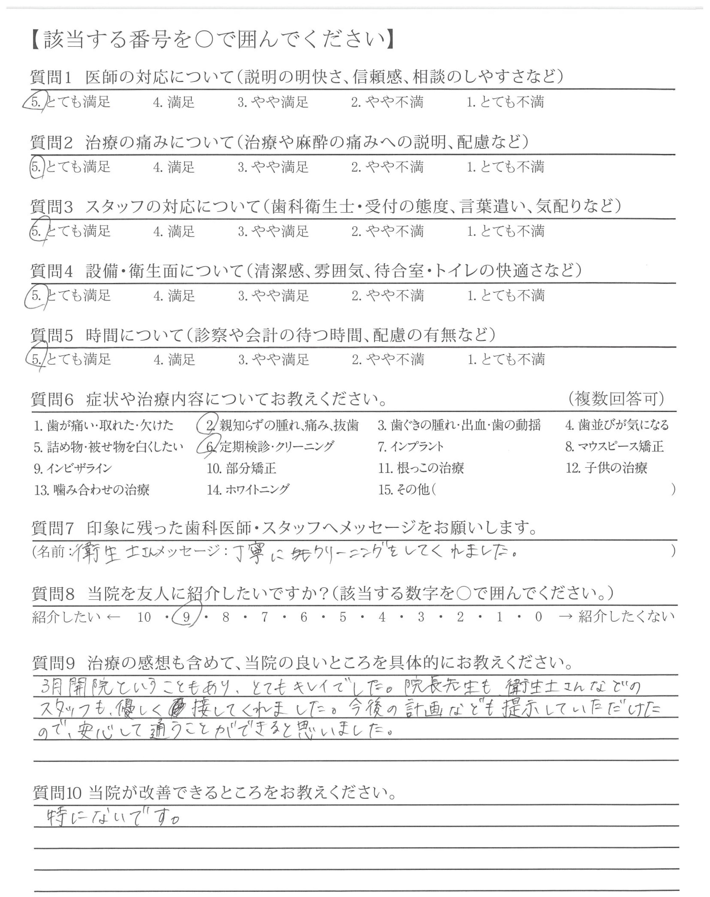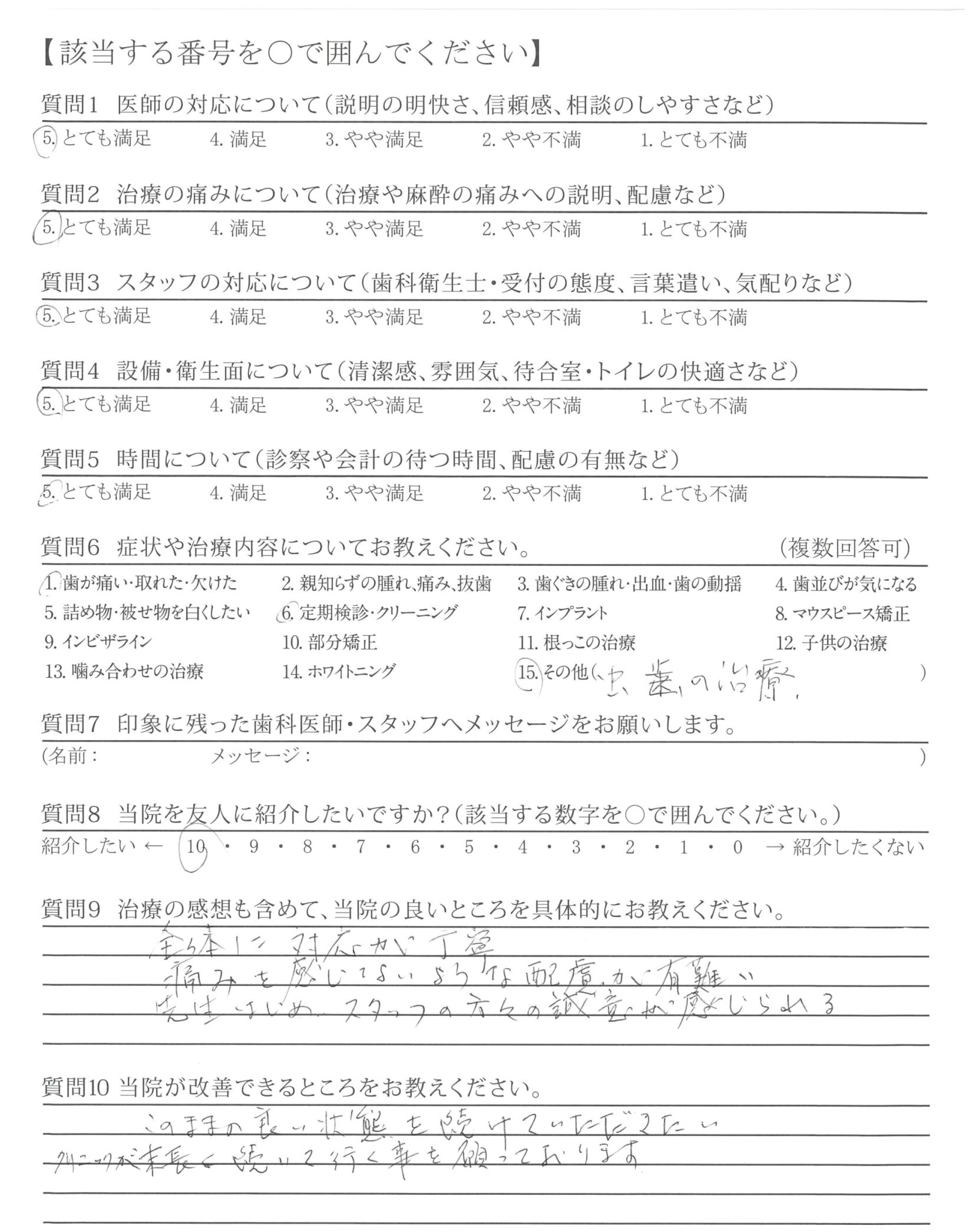 | 歯科医師の対応 | ![]() ![]() ![]() ![]() 4.97 |
