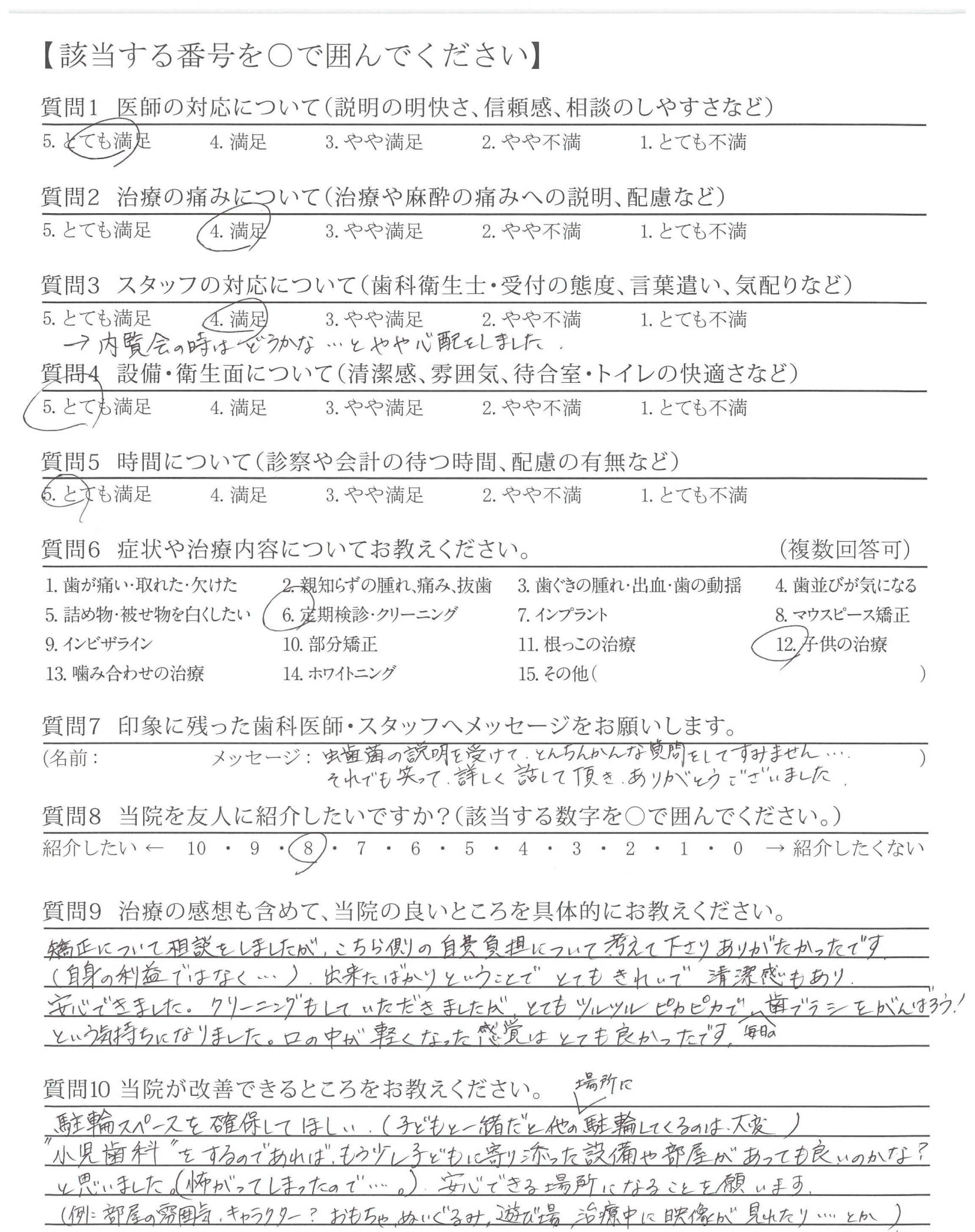 矯正について相談をしましたが、こちら側の自費負担について考えて下さりありがたかったです。(自身の利益ではなく・・・)
