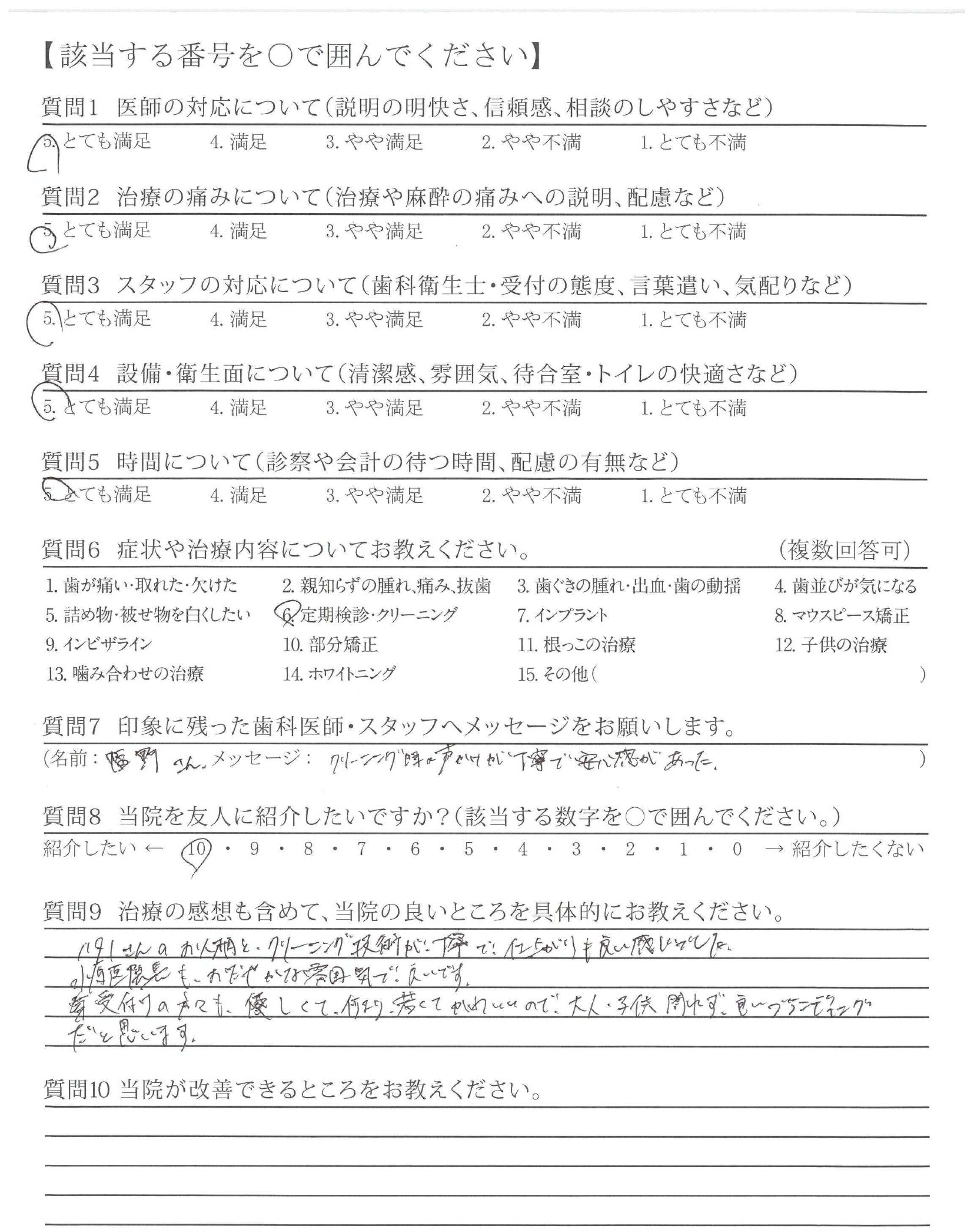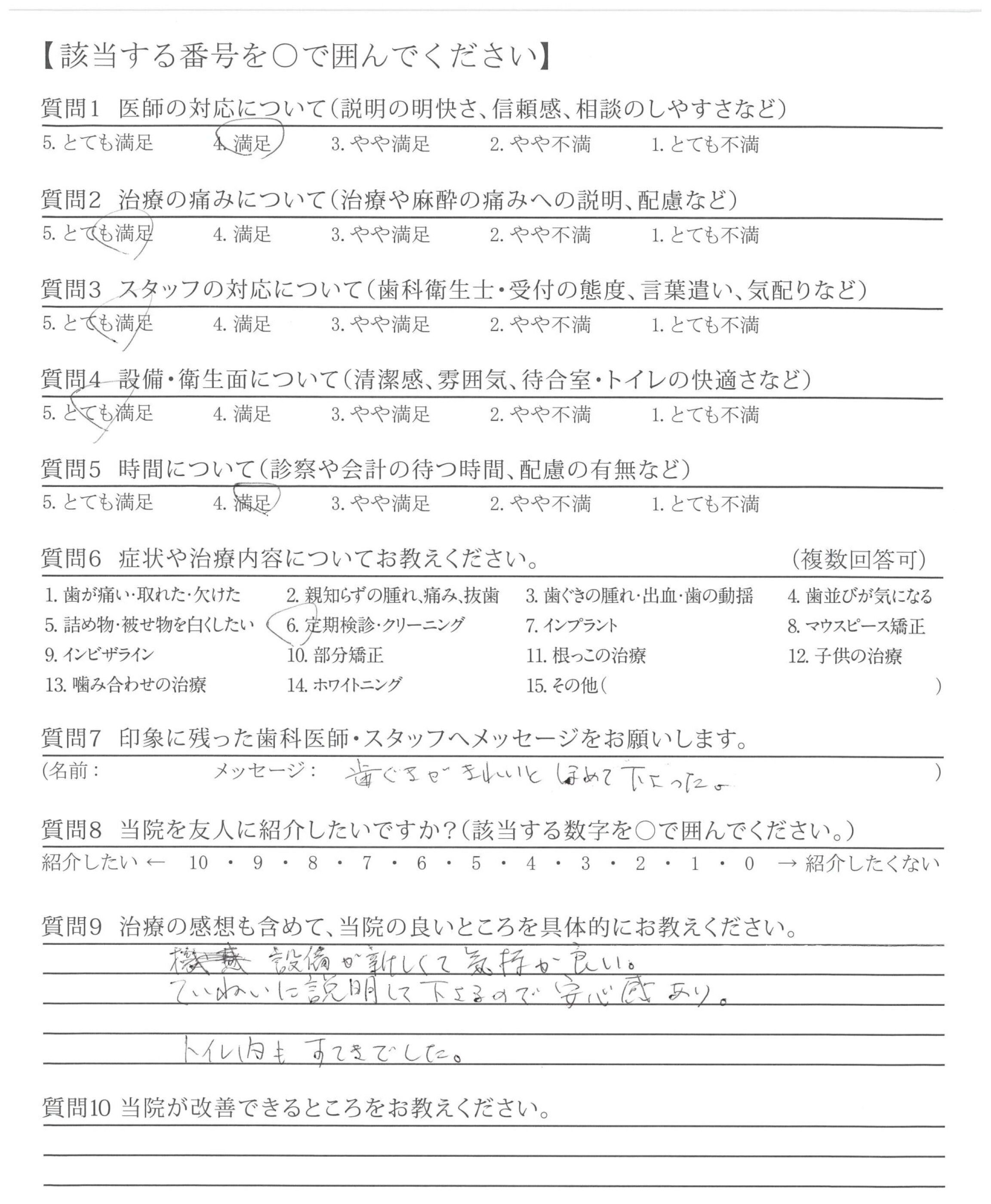 クリーニング時の声かけが丁寧で安心感があった。