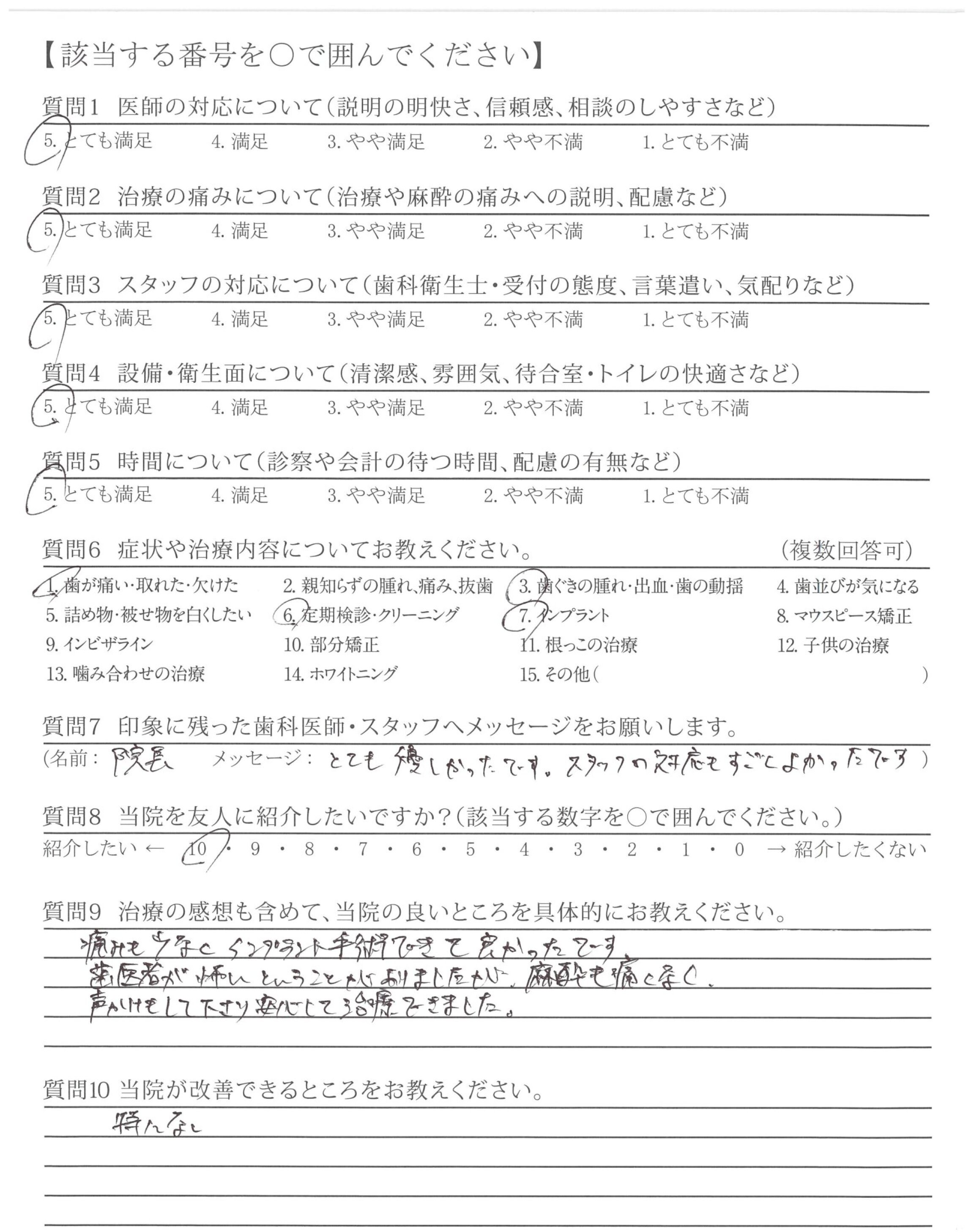 痛みも少なくインプラント手術できて良かったです。