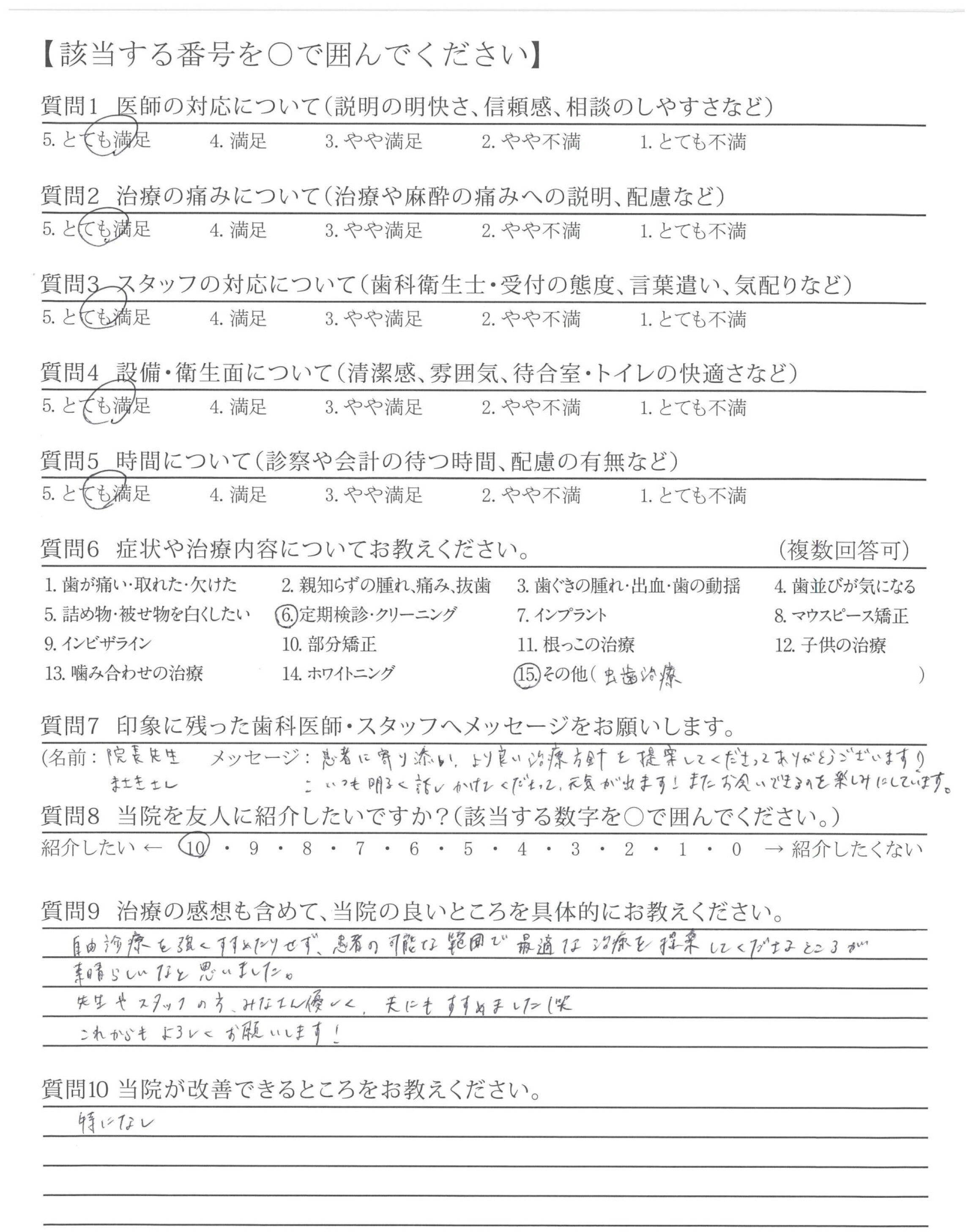 ・現在歯の状態が良好なこともあり、特にありません