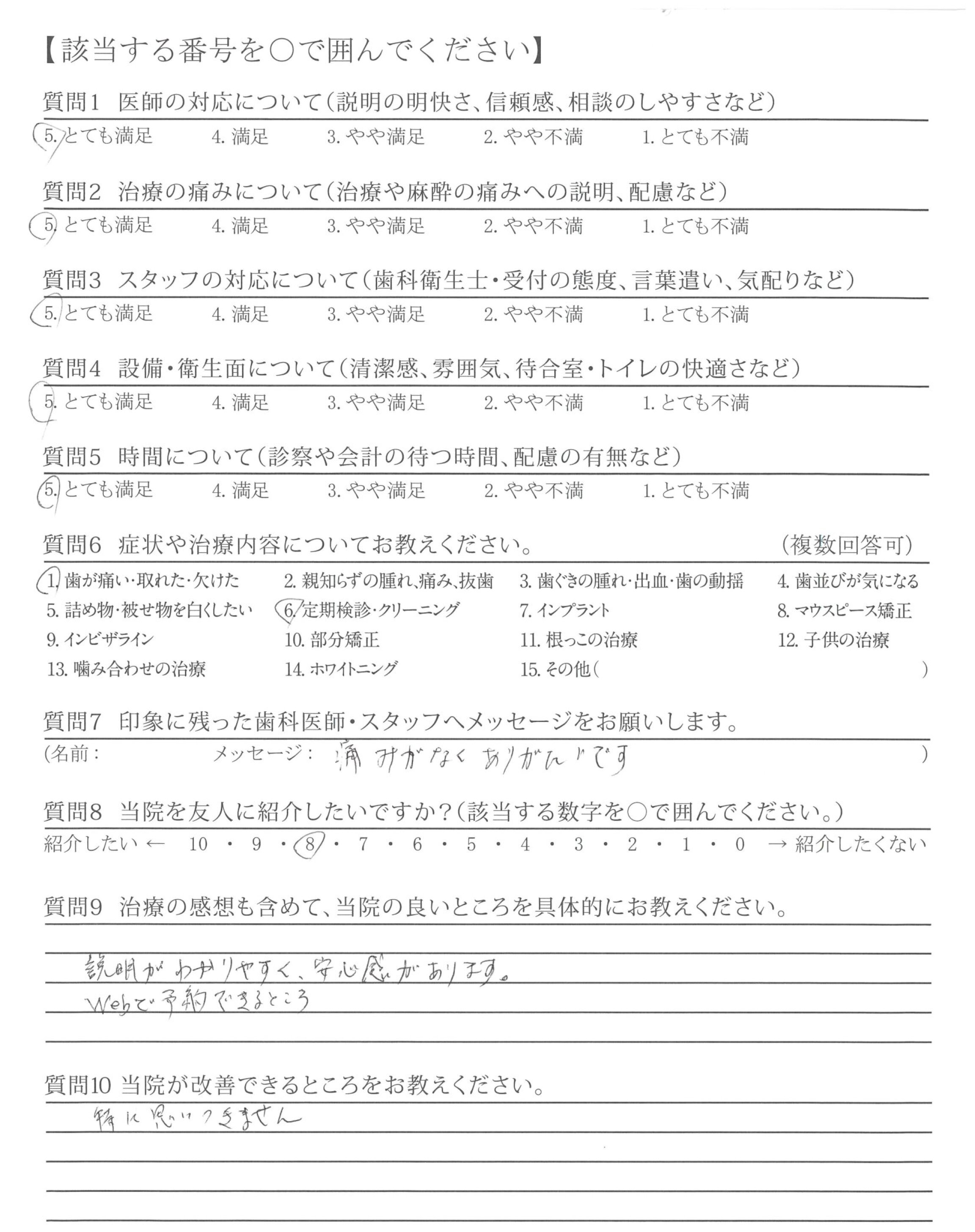 | 治療の痛みへの配慮 | ![]() ![]() ![]() ![]() 4.94 |