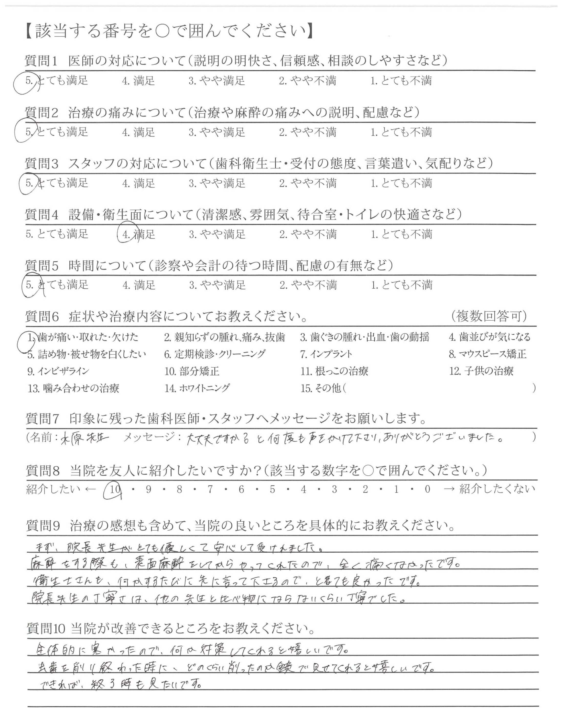 みずはら先生に治療が不安な事を伝えたら、細かく説明してくれたので、安心しました。