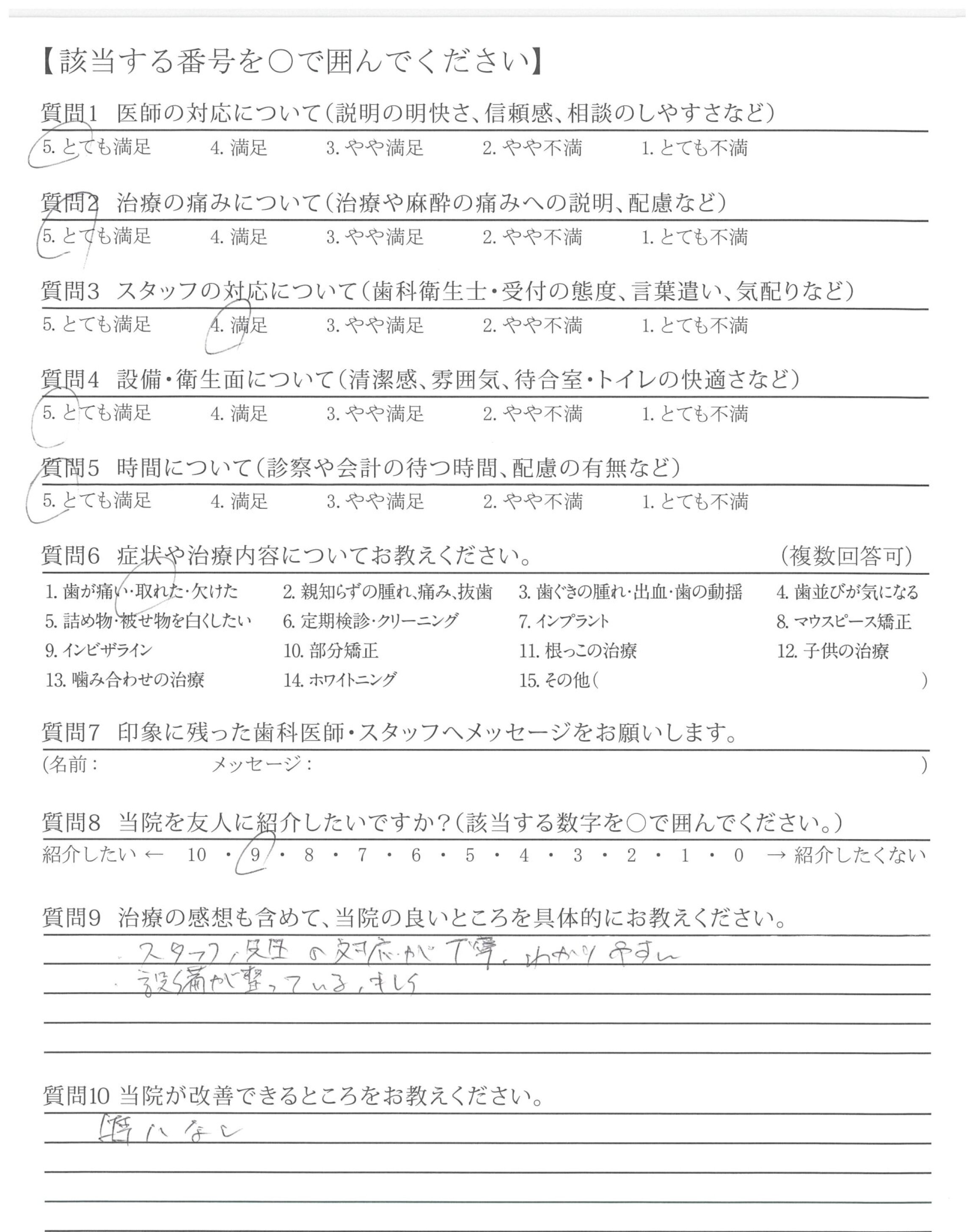 | 歯科医師の対応 | ![]() ![]() ![]() ![]() 4.97 |