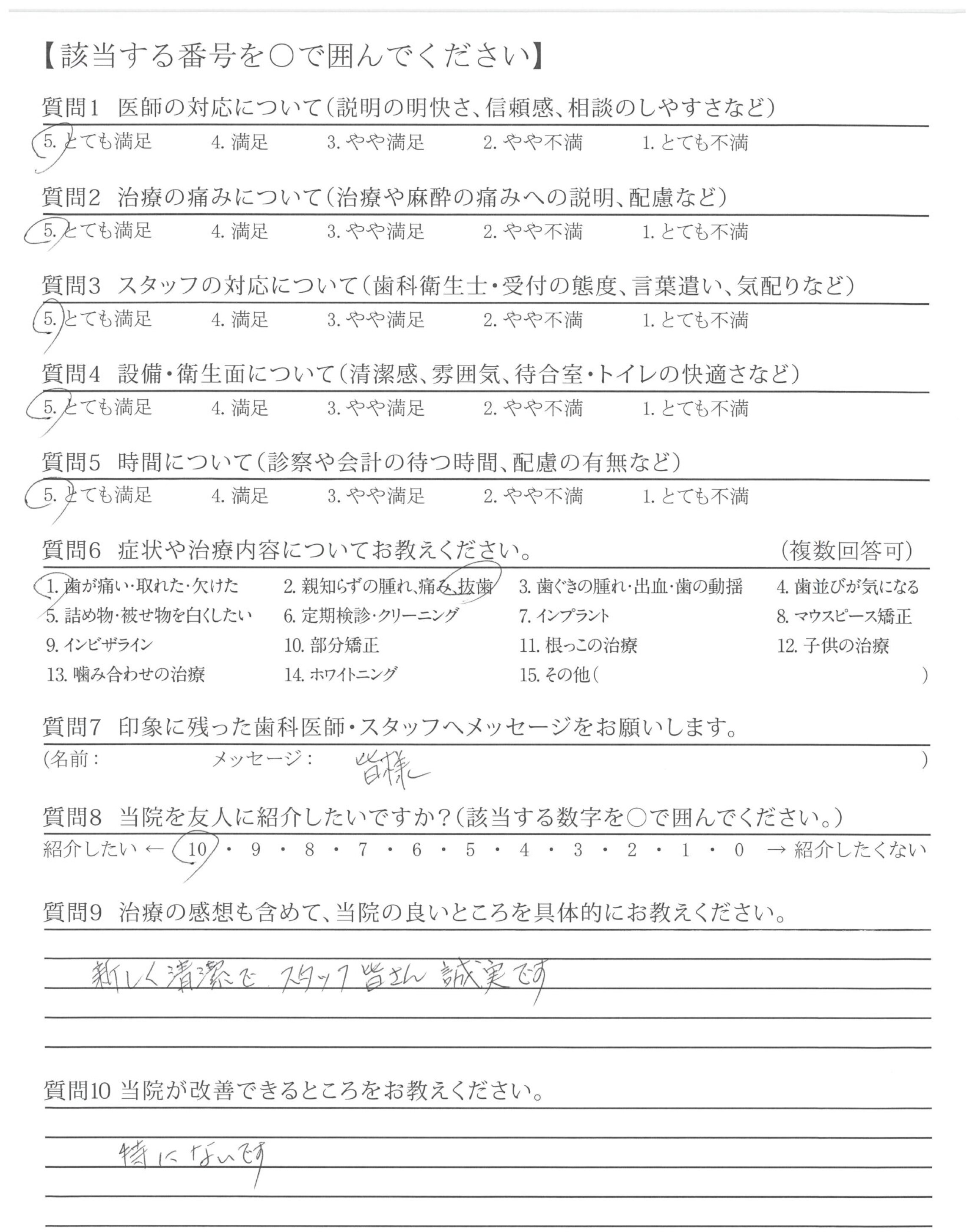 虫歯の治療と初めて親知らずの抜歯をしましたが、痛みもなく腫れもせず、安心して治療をすすめられました。ありがとうございました!
