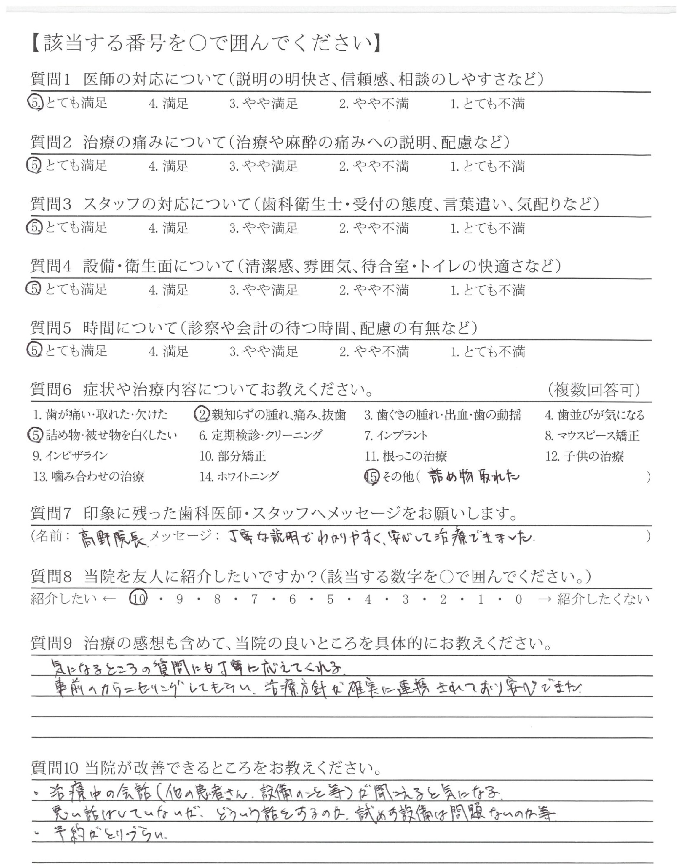 毎回、治療が丁寧で、説明も詳細で、かつ予防治療を徹底しているところに好感がもてました。