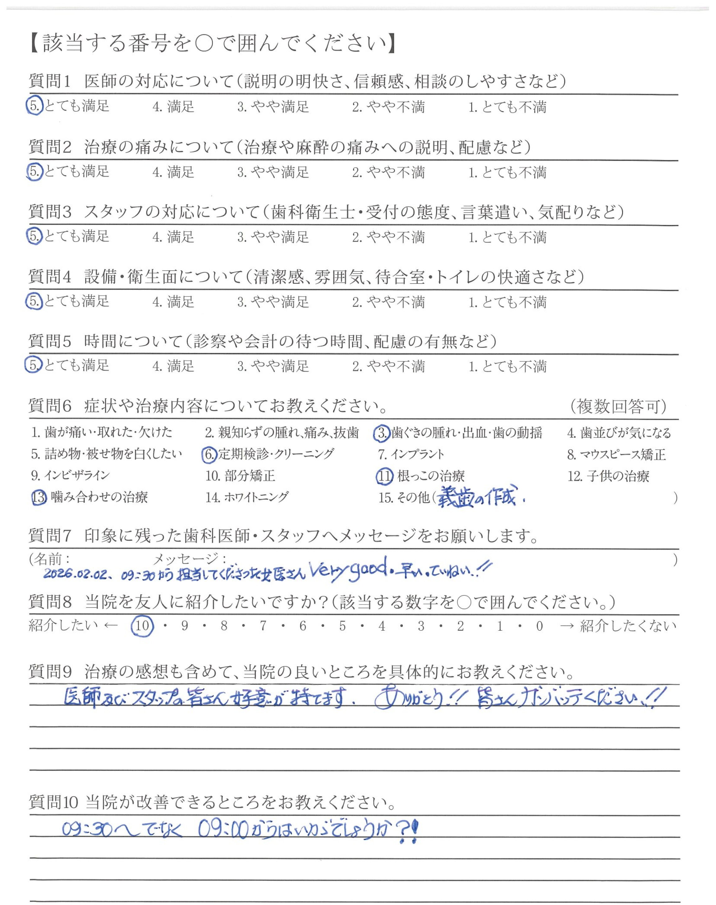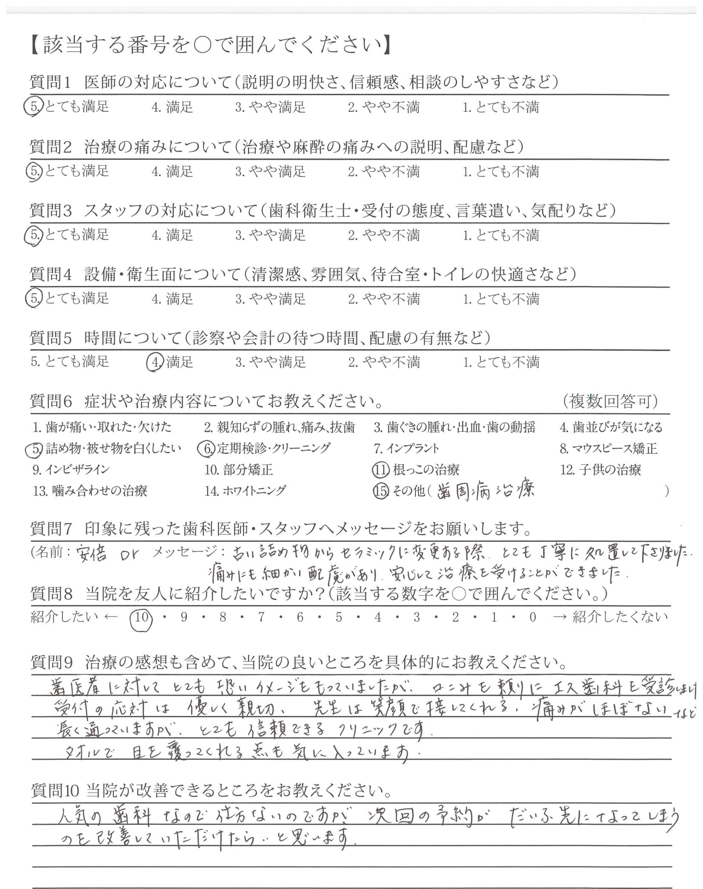 ・被せ物を決める時、とても丁寧に説明をして下さり、納得して施術を受けられました。