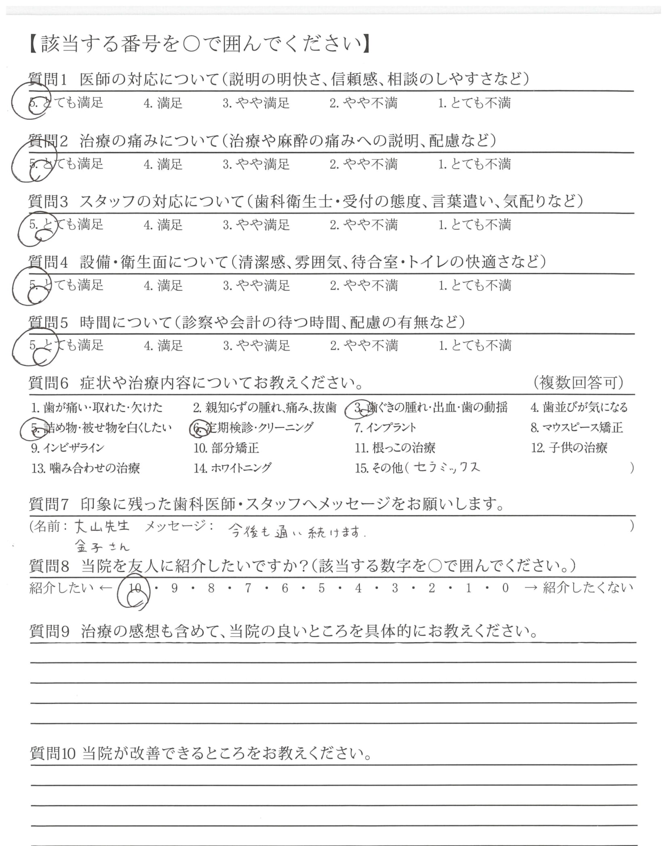 | 歯科医師の対応 | ![]() ![]() ![]() ![]() 4.89 |