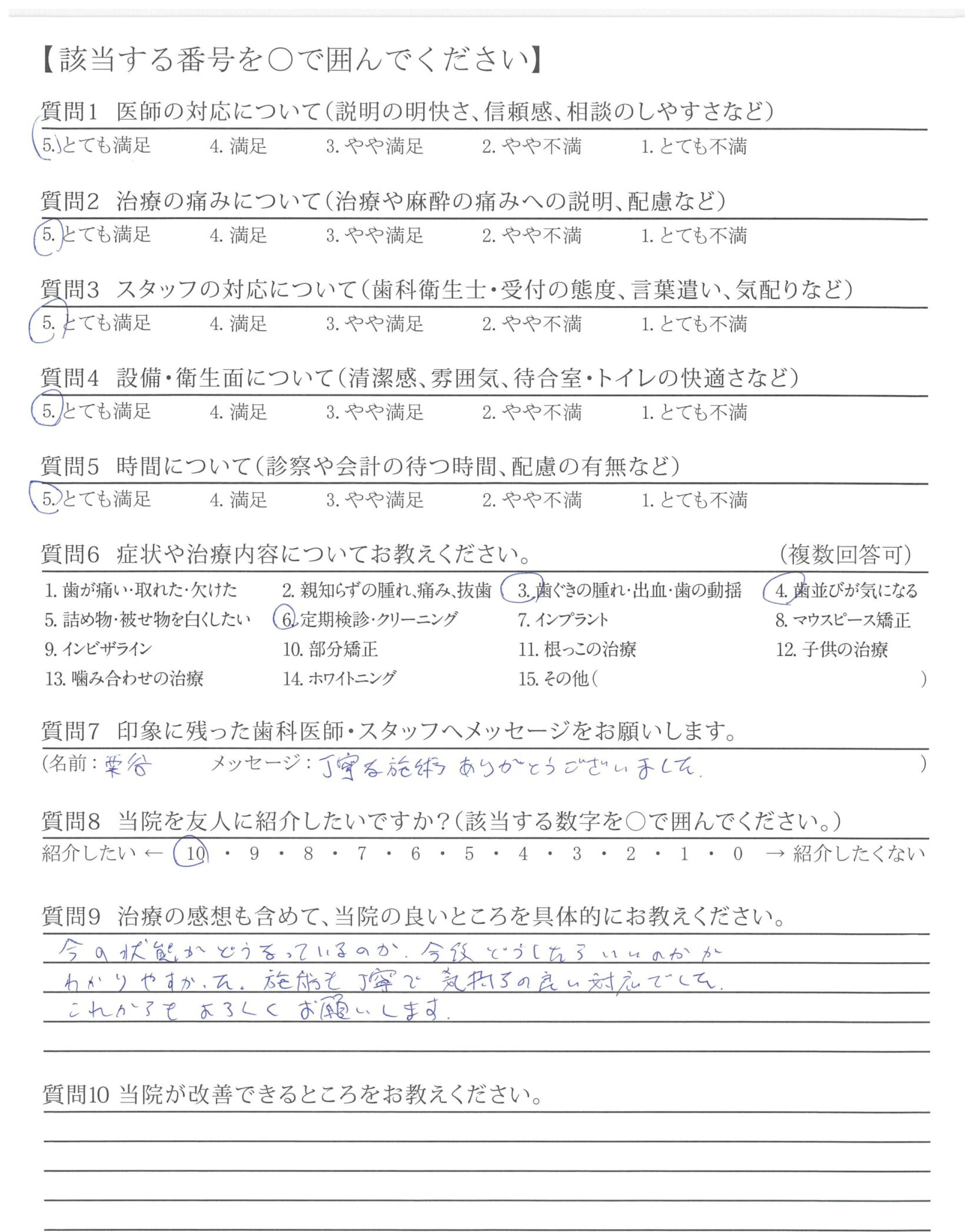 今の状態がどうなっているのか、今後どうしたらいいのかがわかりやすかった。施術も丁寧で気持ちの良い対応でした。これからもよろしくお願いします。