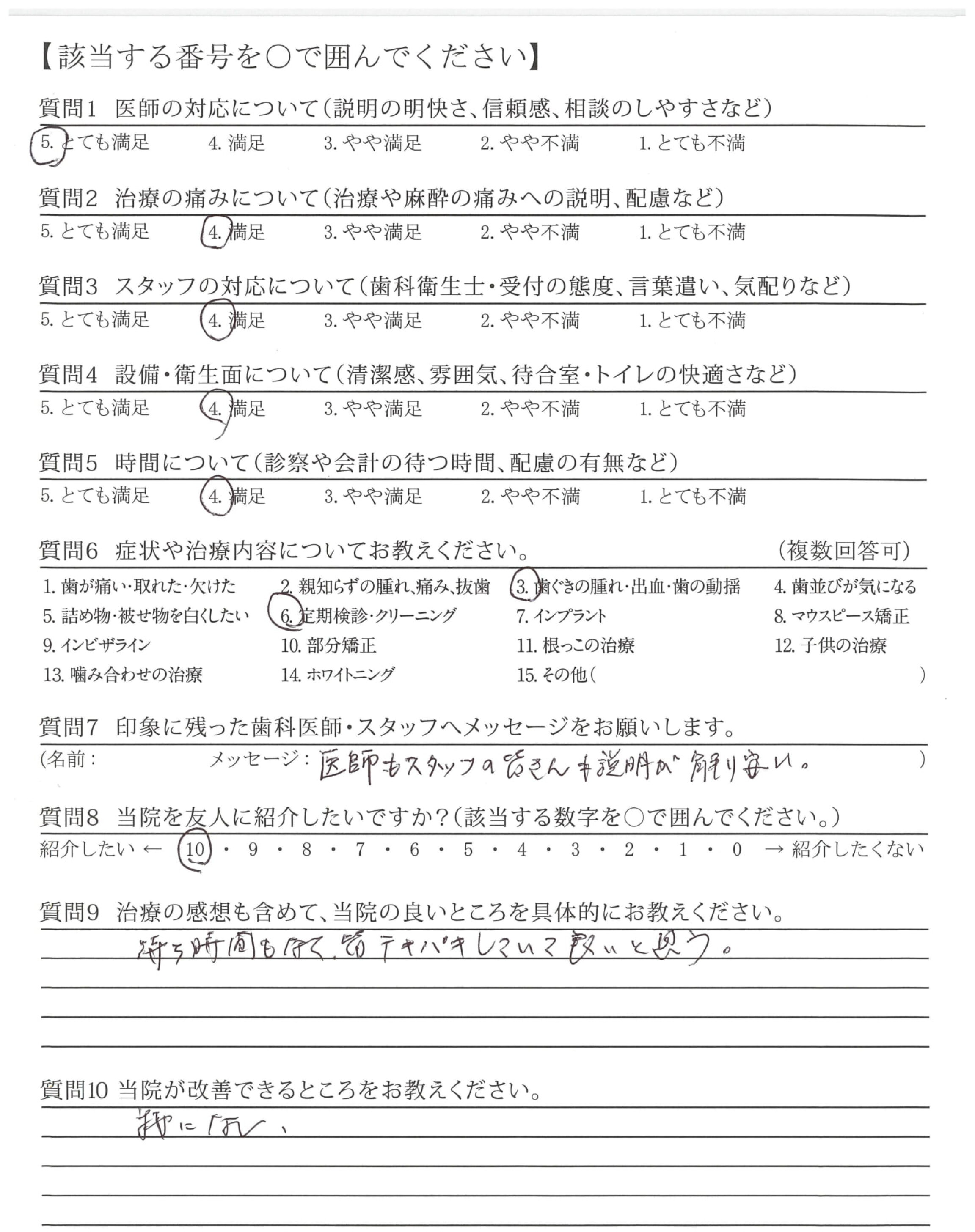治療が丁寧で、わかりやすく説明してくださるので納得できます。信頼しております。