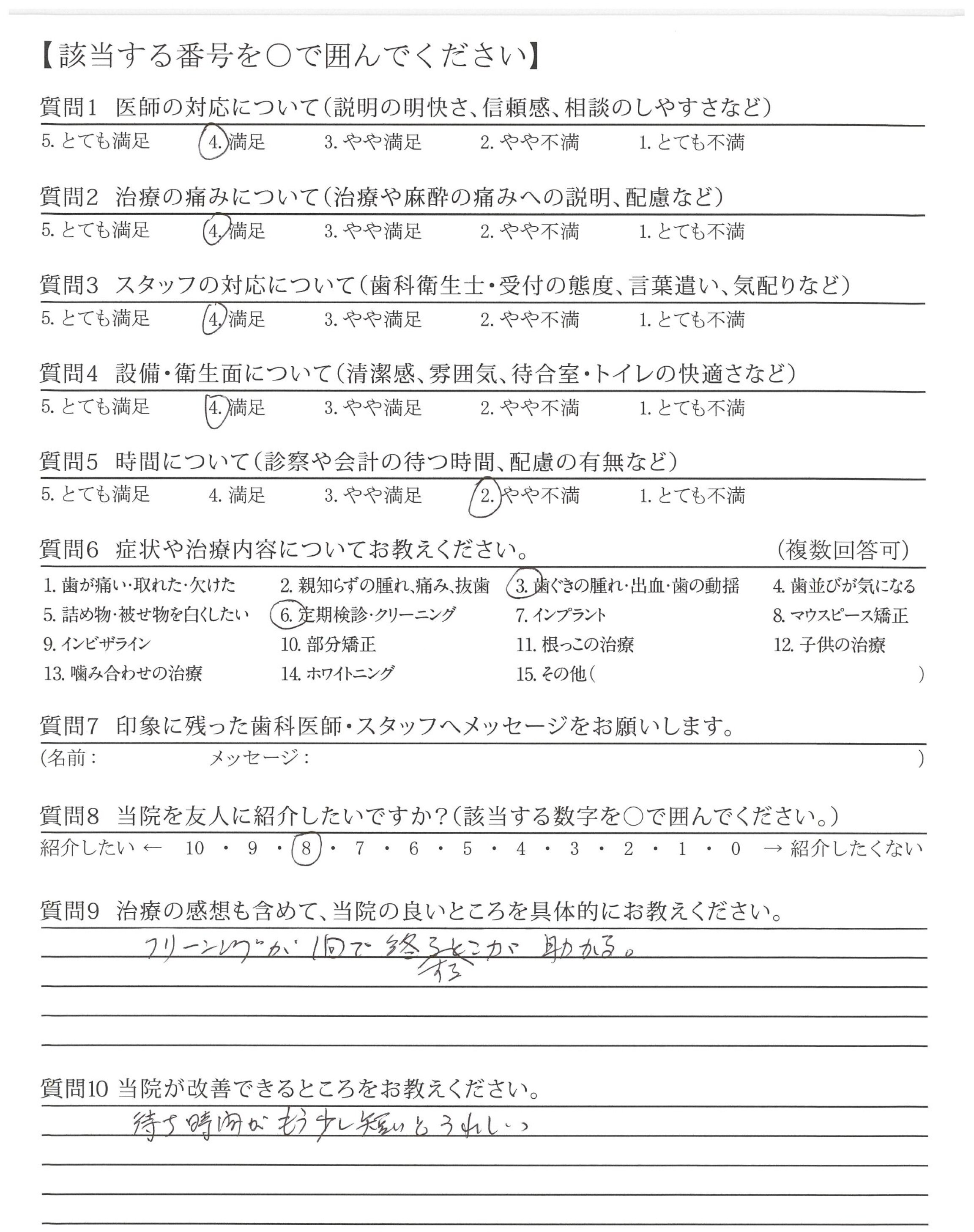 治療の途中でものすごく待ったことがあり、ちょっと辛かったです。(歯科衛生士さんが終わって先生がいらっしゃるまで)