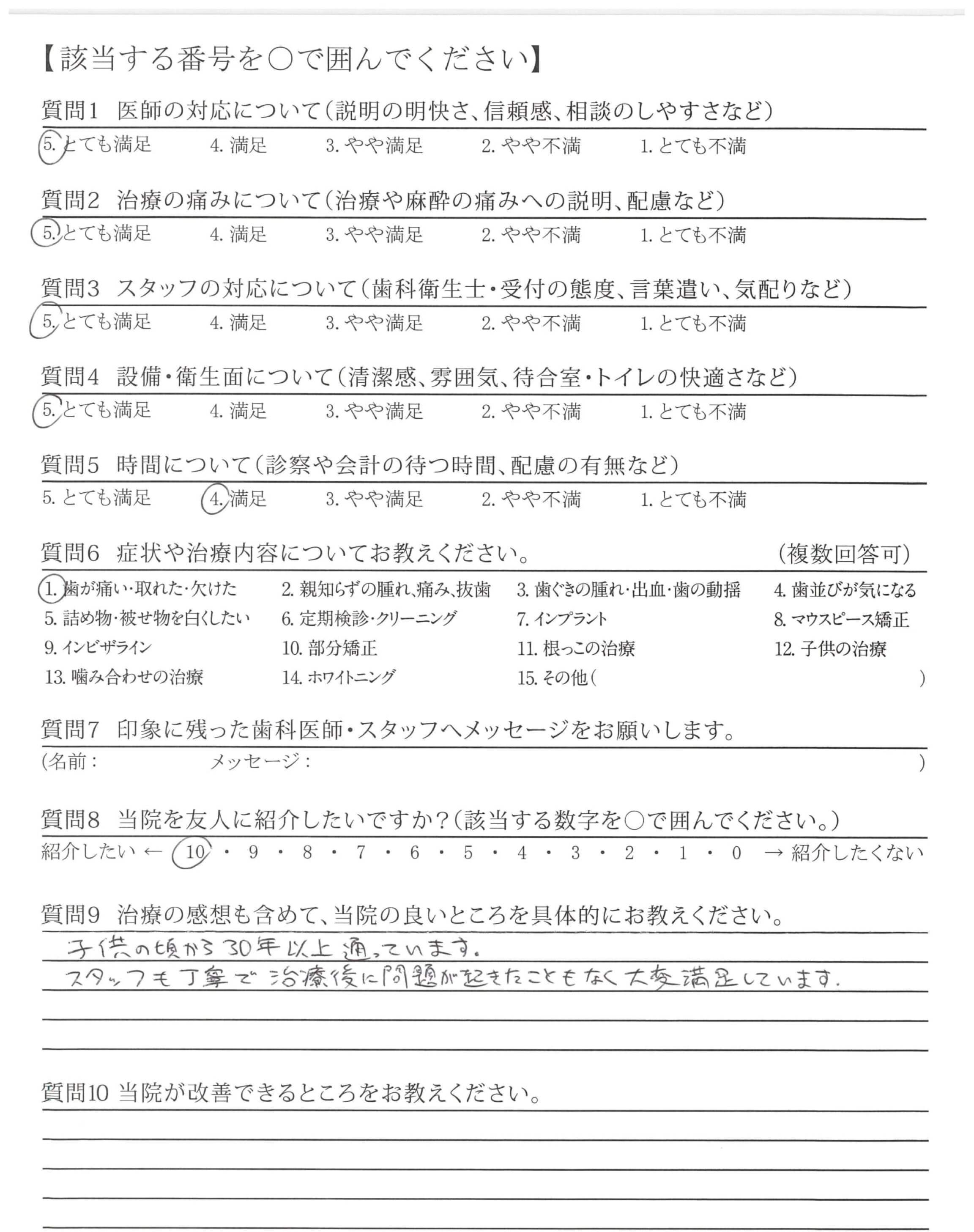 以前かかったどこの歯科でもここまで時間をかけて対応してくれるところはありませんでした。