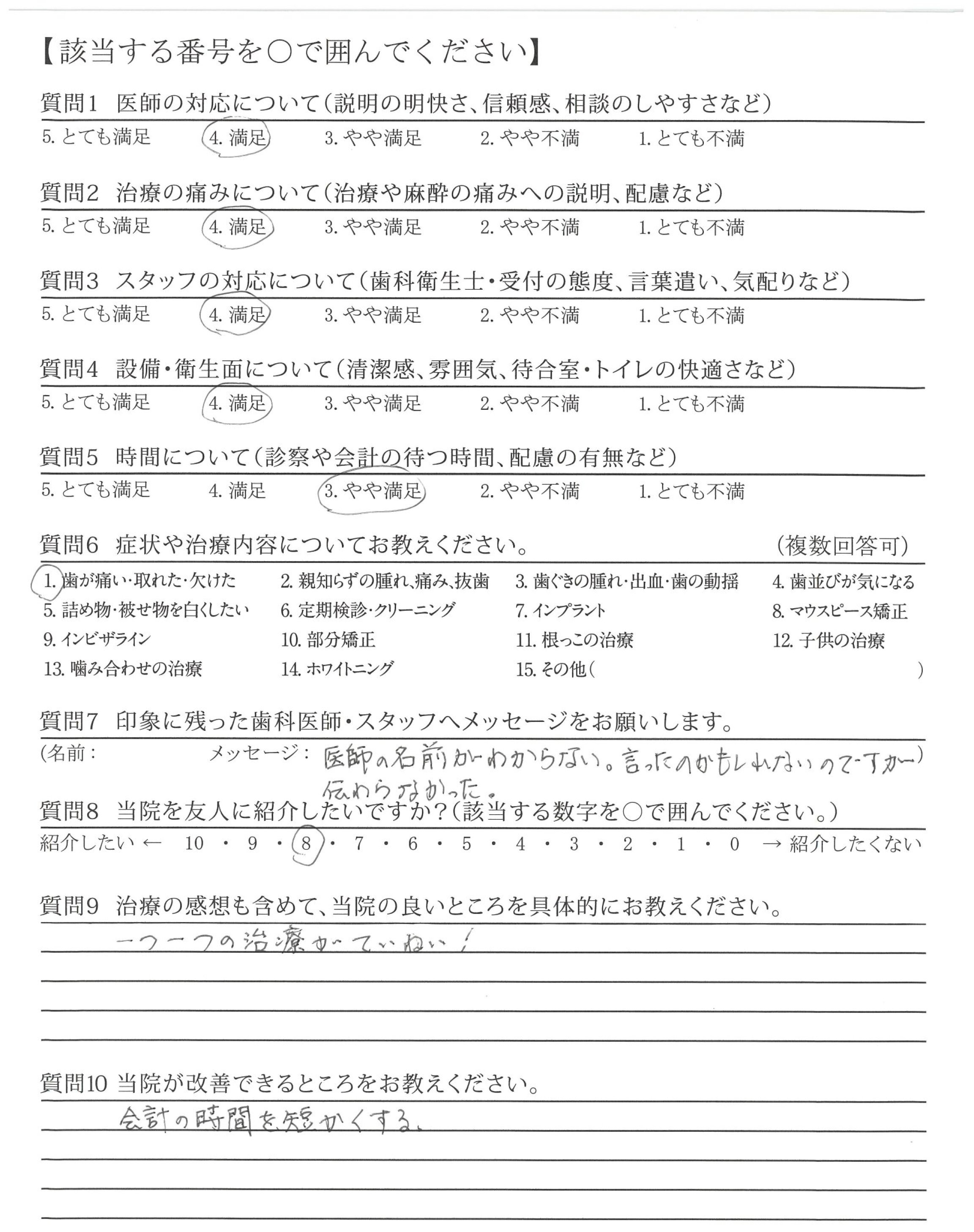スタッフも丁寧で治療後に問題が起きたこともなく大変満足しています。
