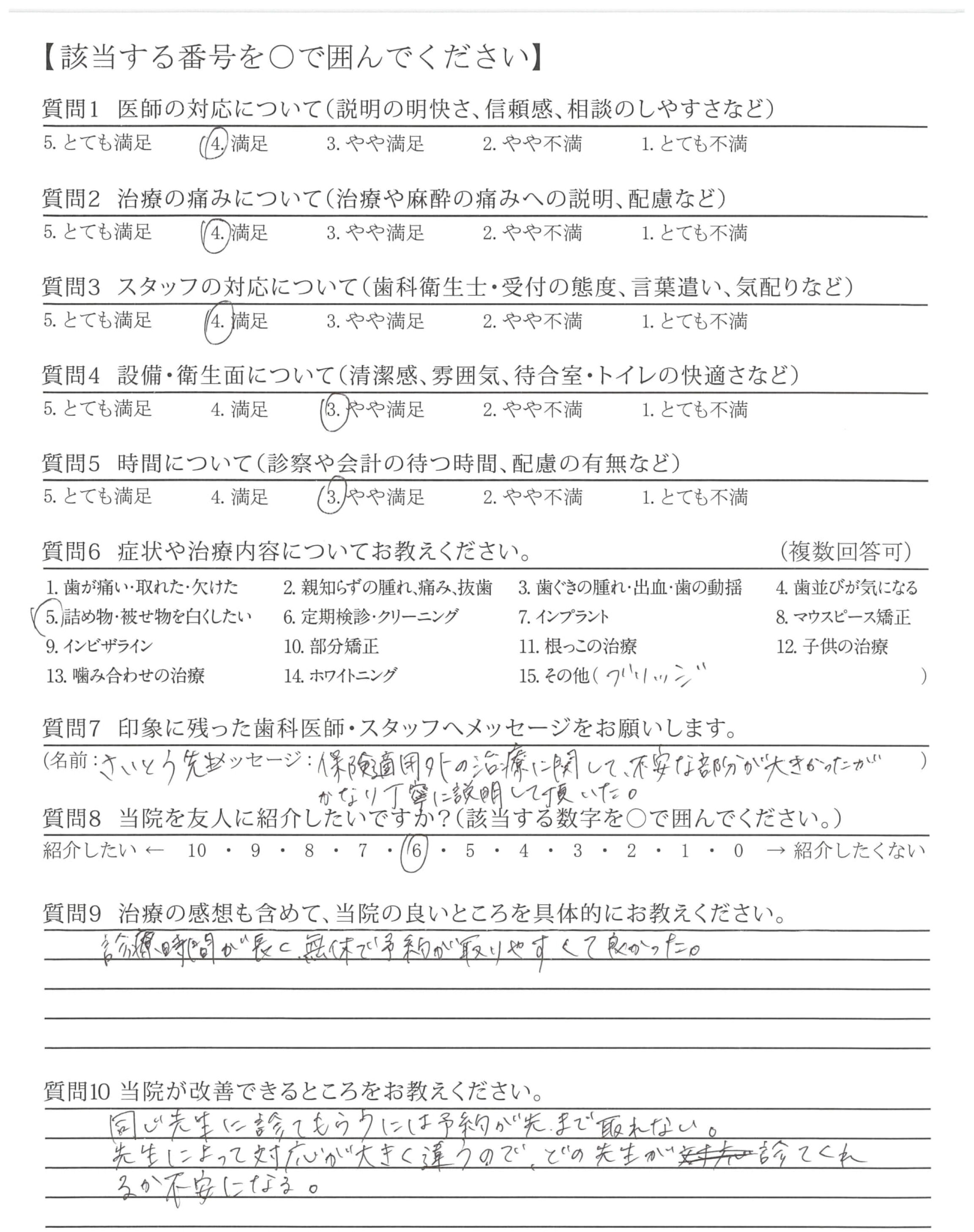 | 歯科医師の対応 | ![]() ![]() ![]() ![]() 4.68 |