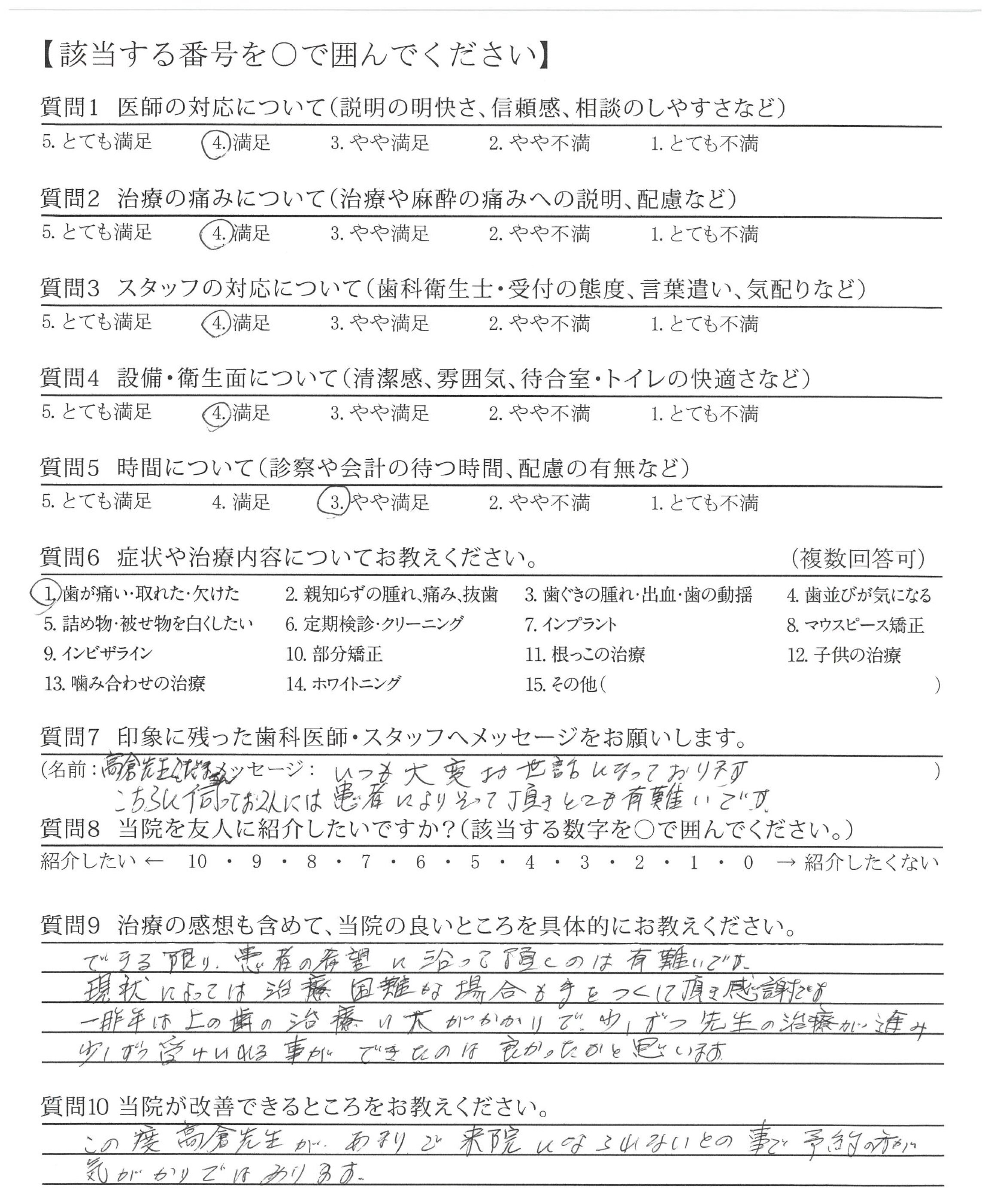 | 歯科医師の対応 | ![]() ![]() ![]() ![]() 4.37 |