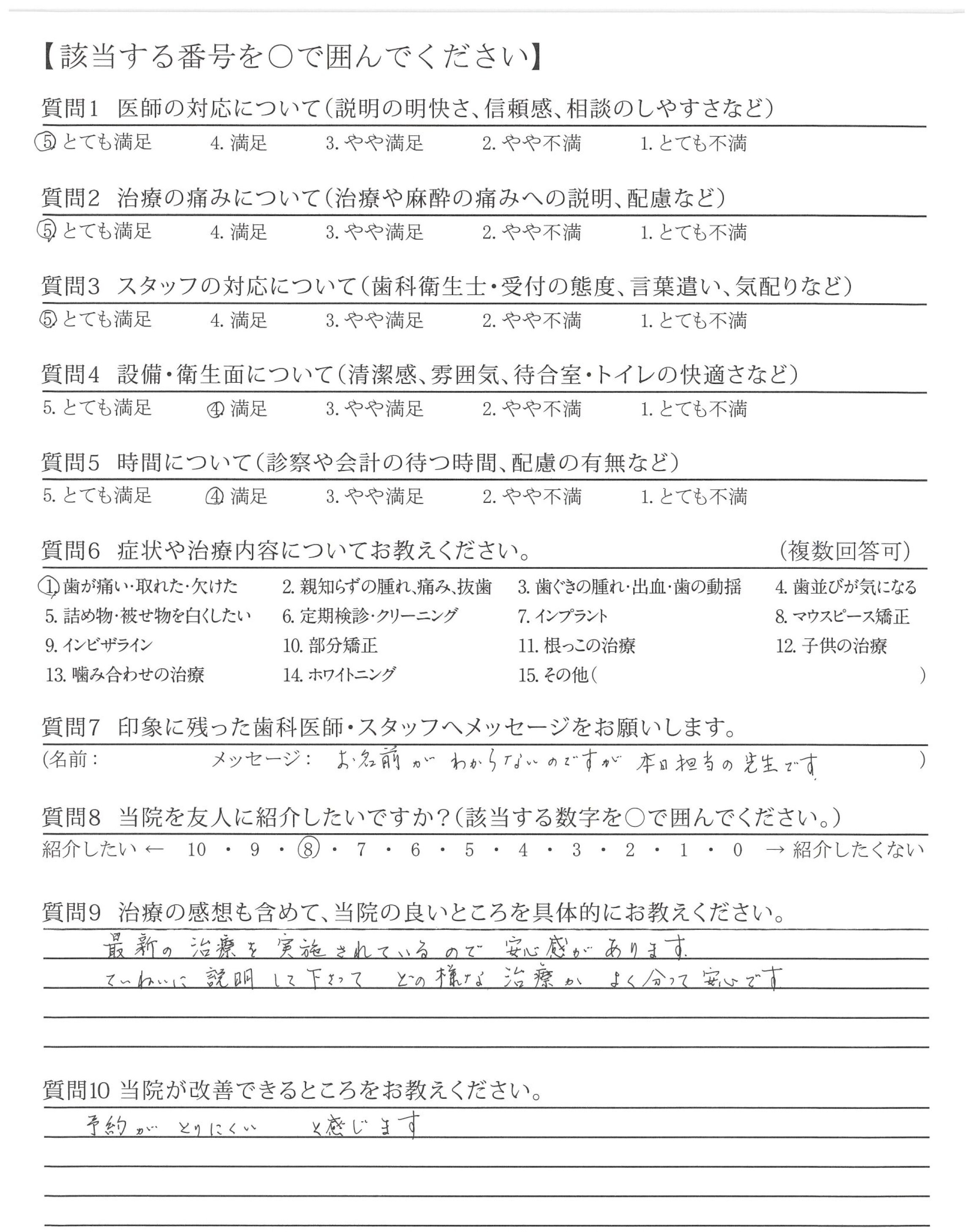 治療方法を明確に説明していただき、安心してまかせられた。