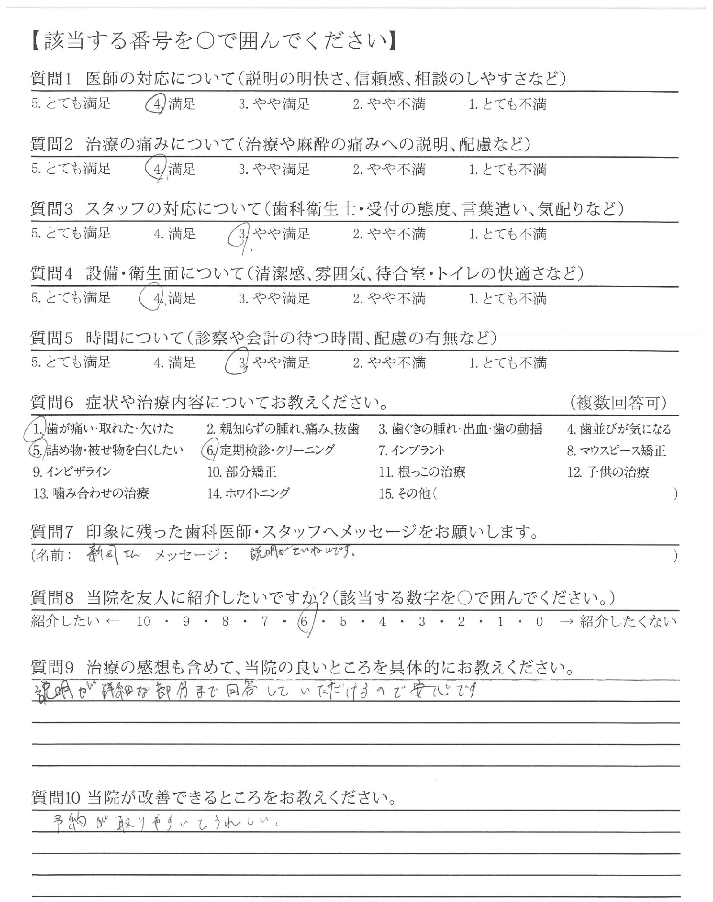 治療前に歯の箇所ごとに、どのような治療を行うか具体的な説明をして下さった上で治療を始めていたところが非常に丁寧な対応でした。