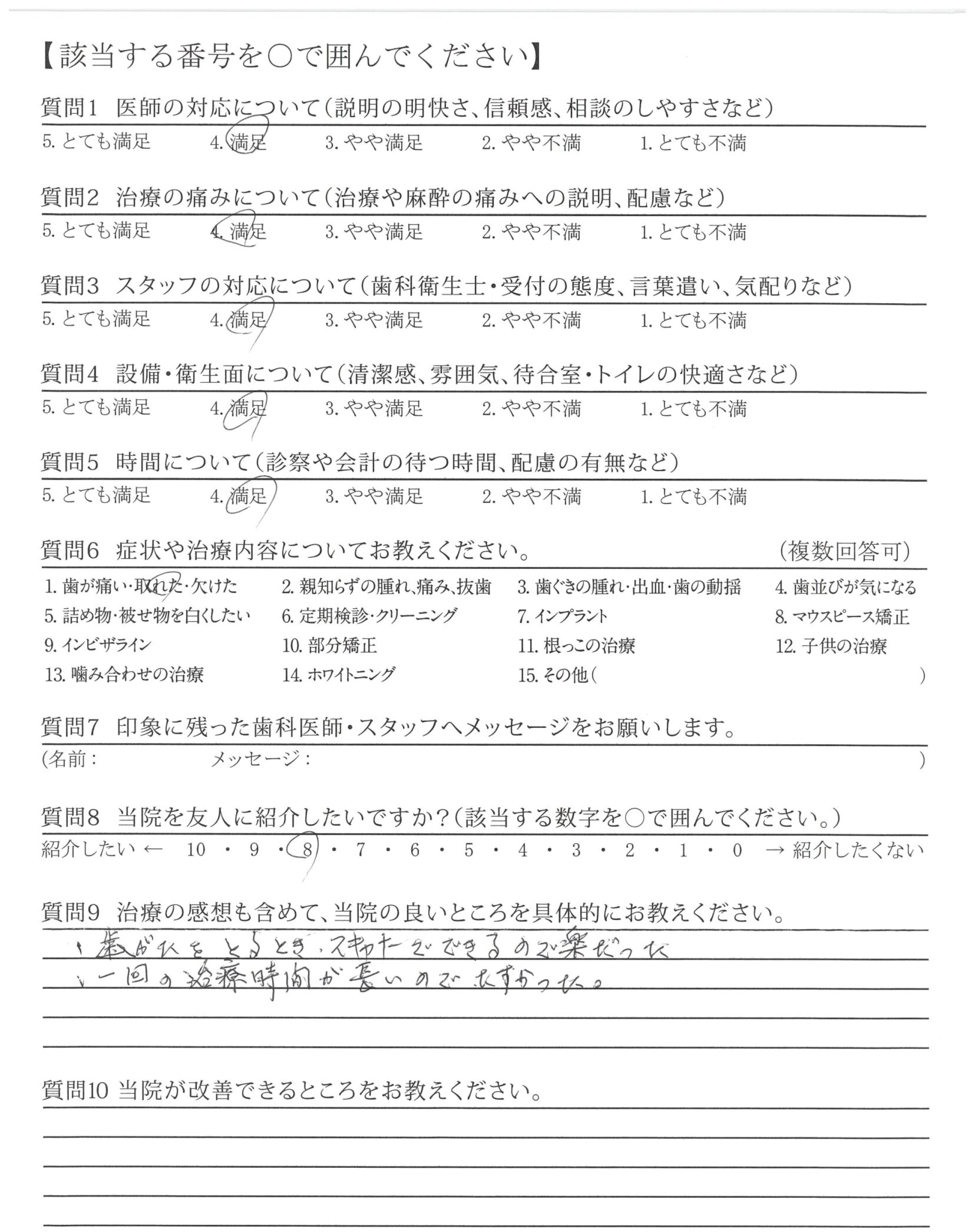 ・痛みにびんかんなことお伝えしていたので、ますいをしっかりしていただいたり気にして下さってありがたかったです。