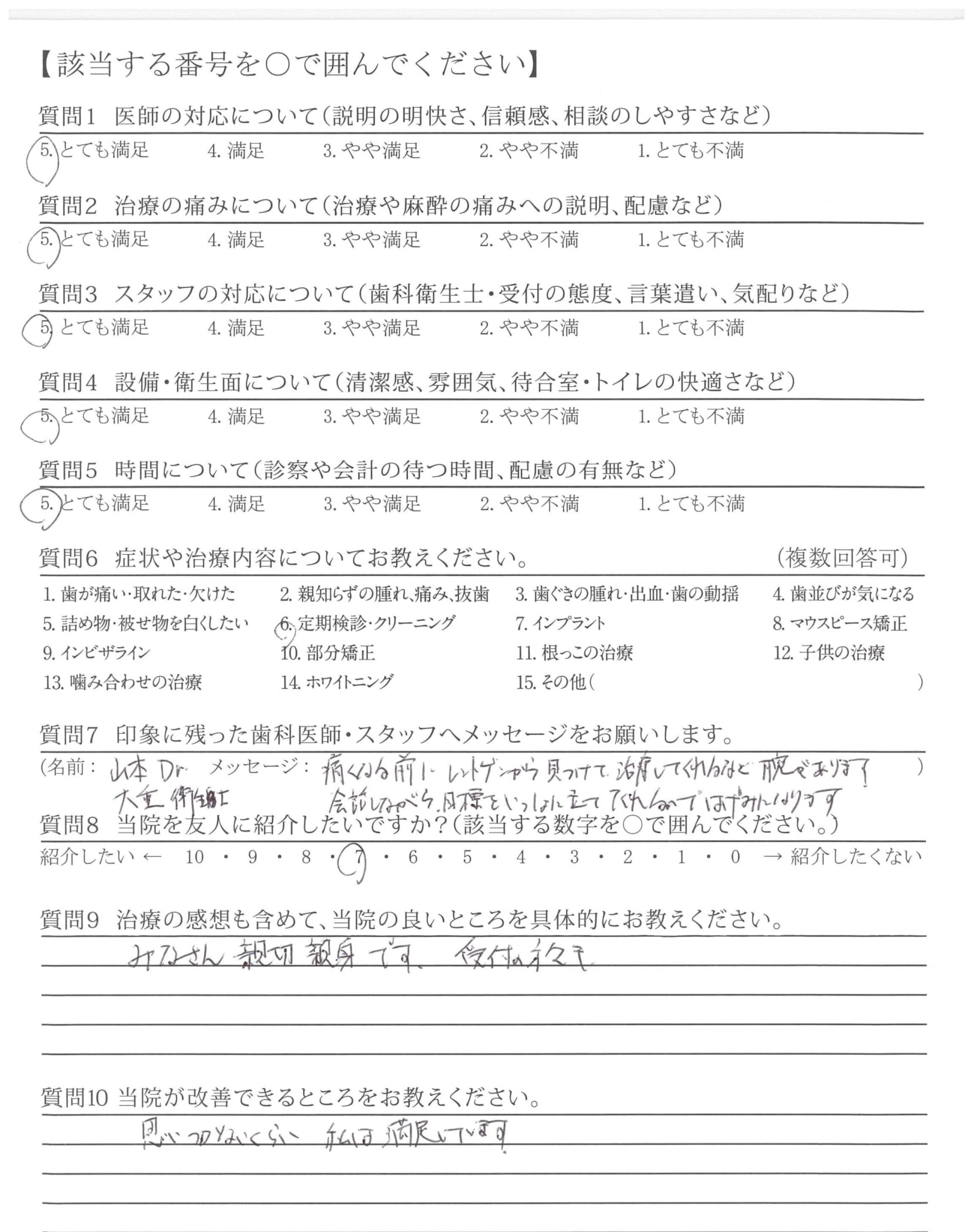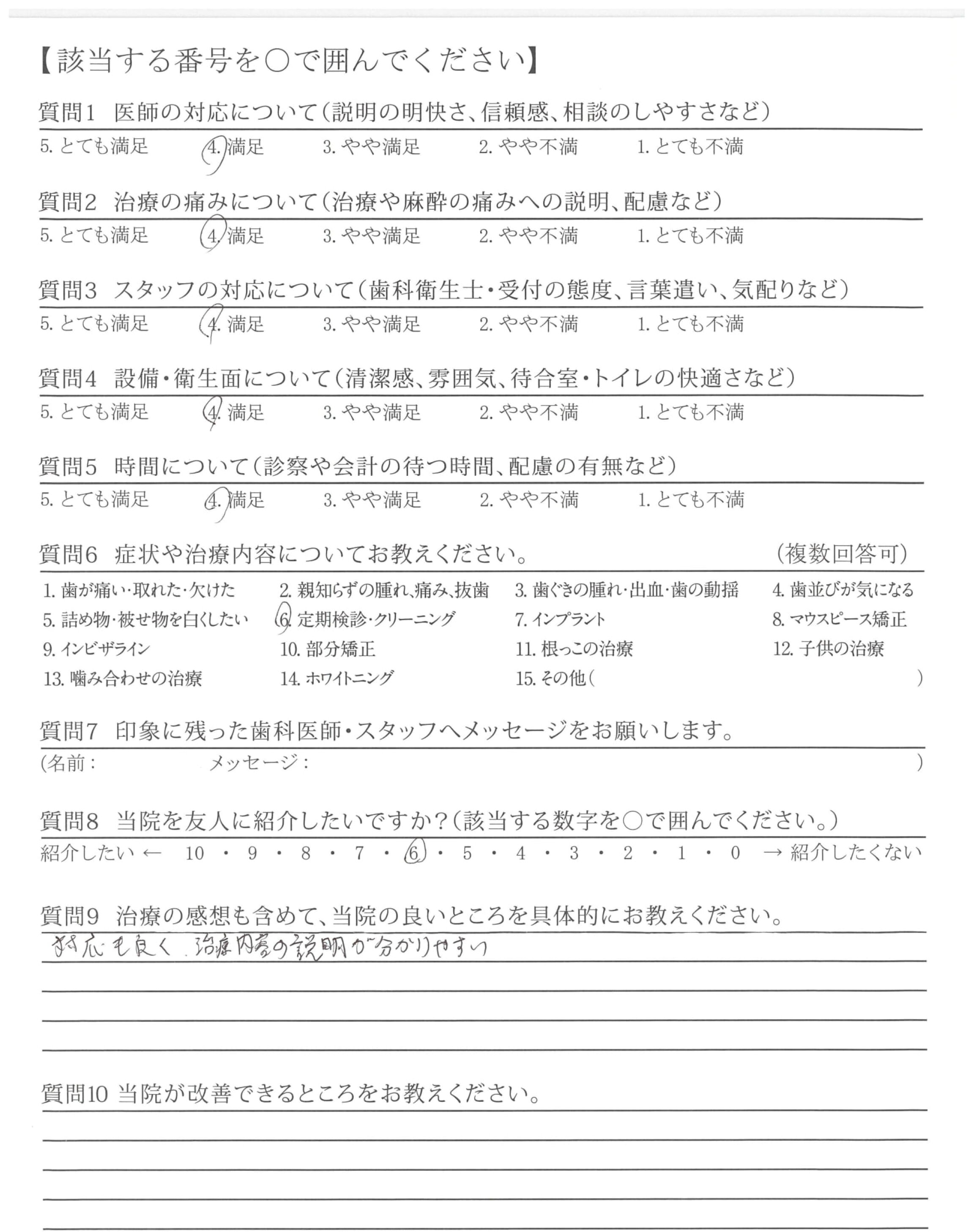 治療中のどうしたら良いかを、やさしい声で指示して下さり、治療をとても受けやすかった。
