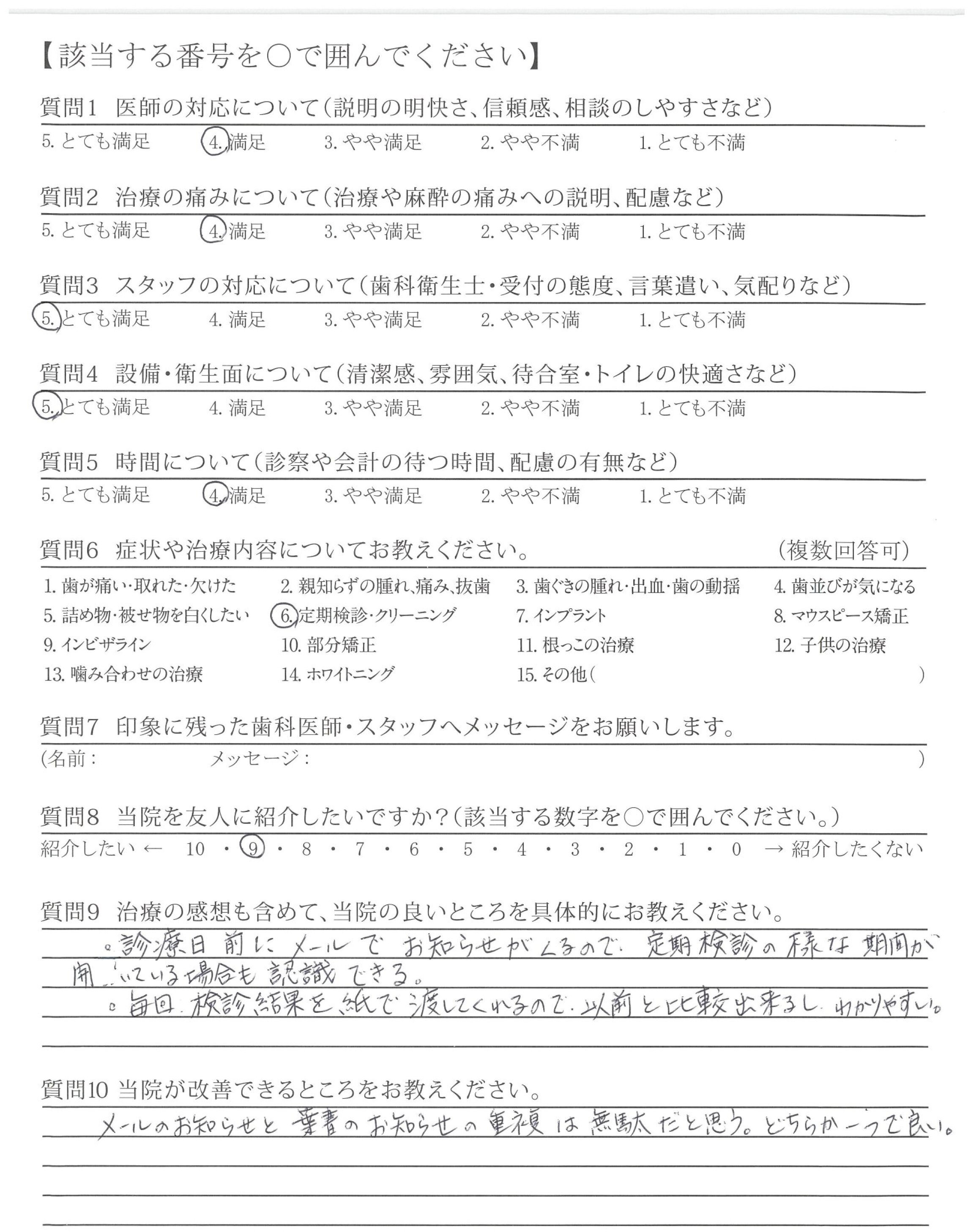 ・毎回、検診結果を紙で渡してくれるので、以前と比較出来るし、わかりやすい。