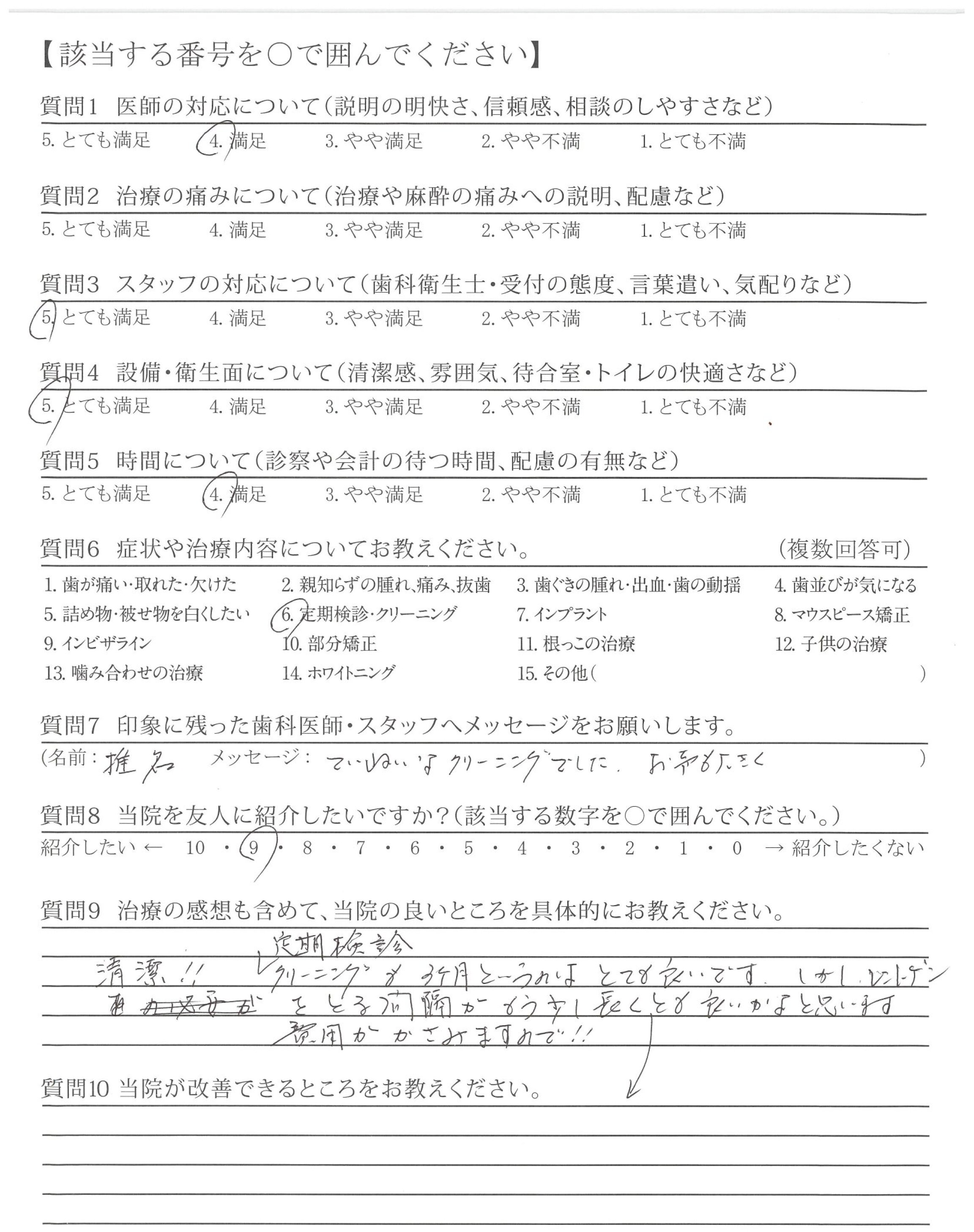 ていねいなクリーニングでした。お声も大きく